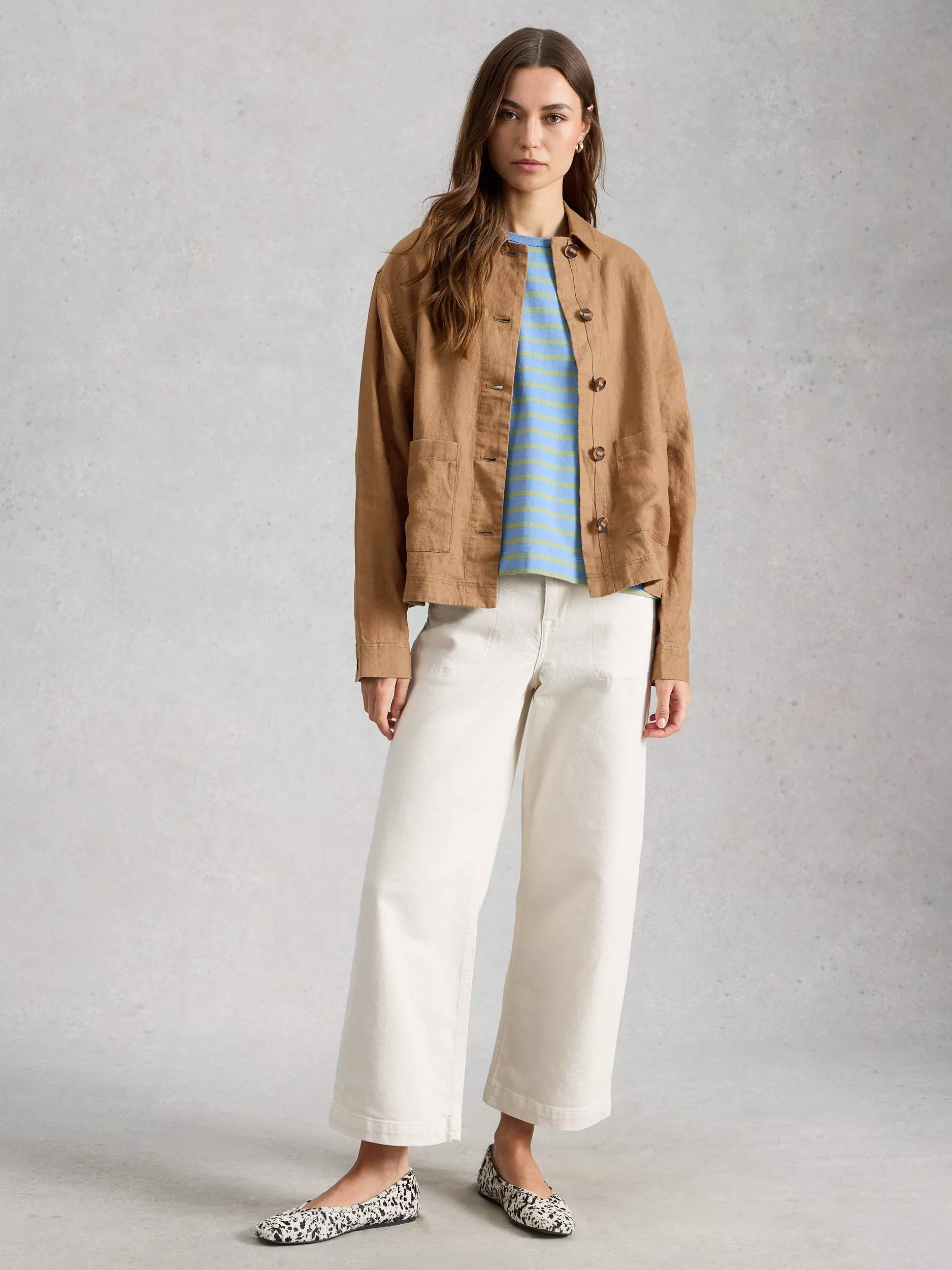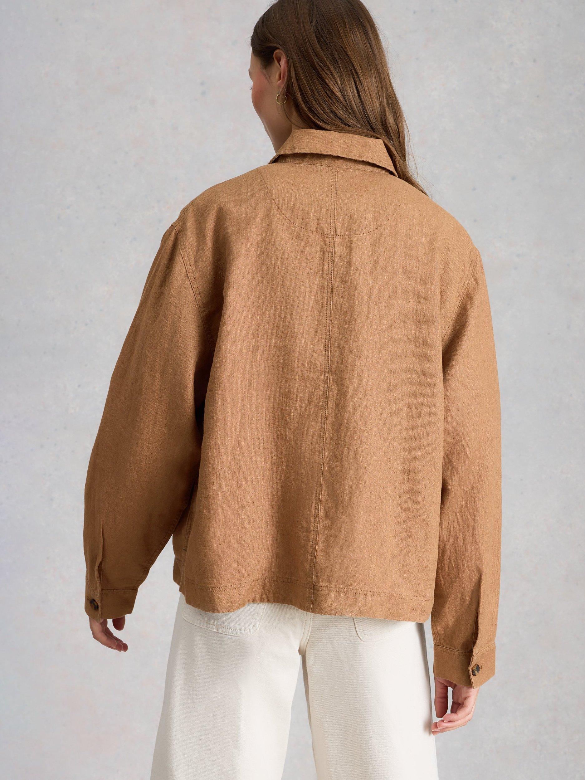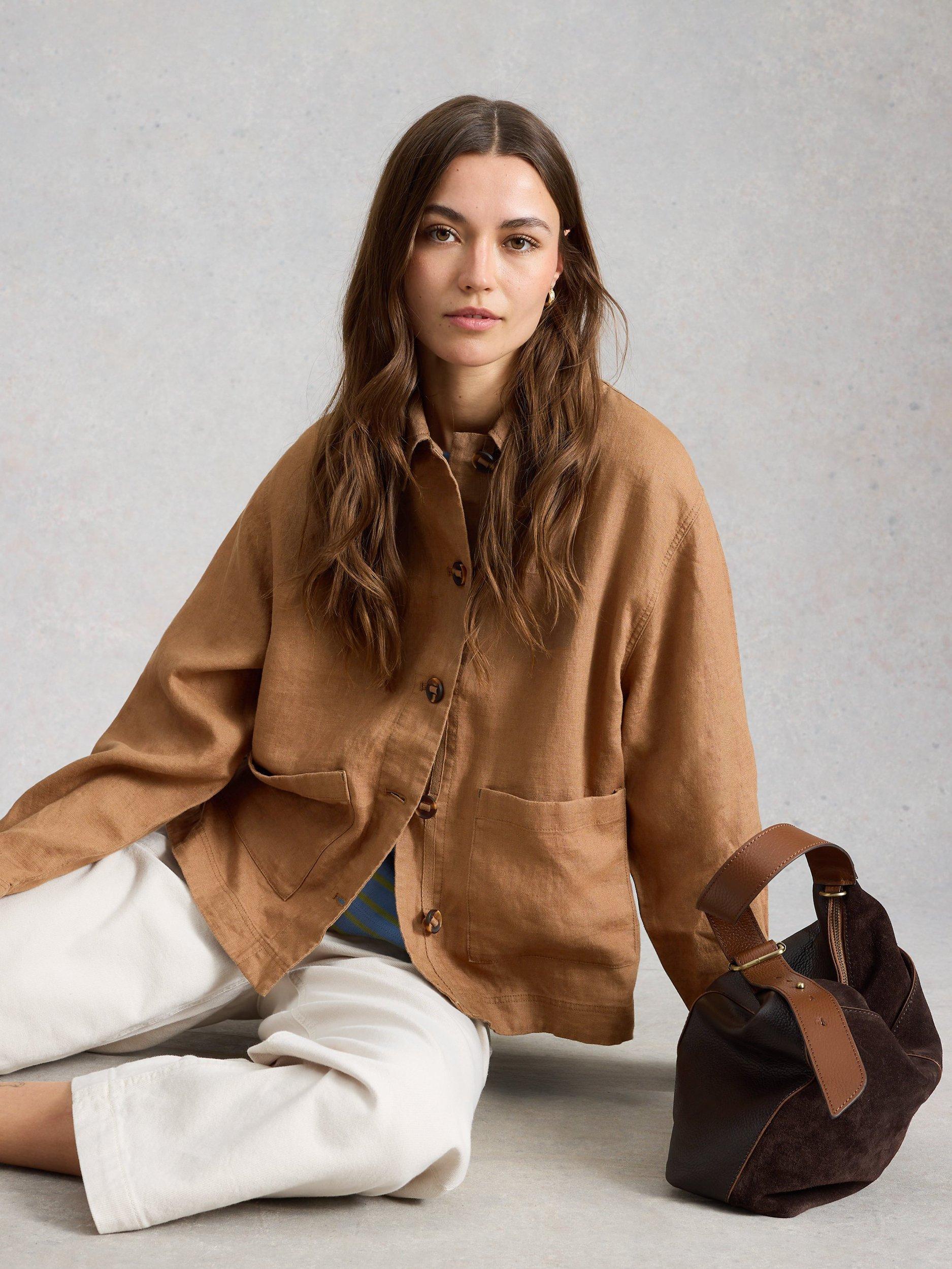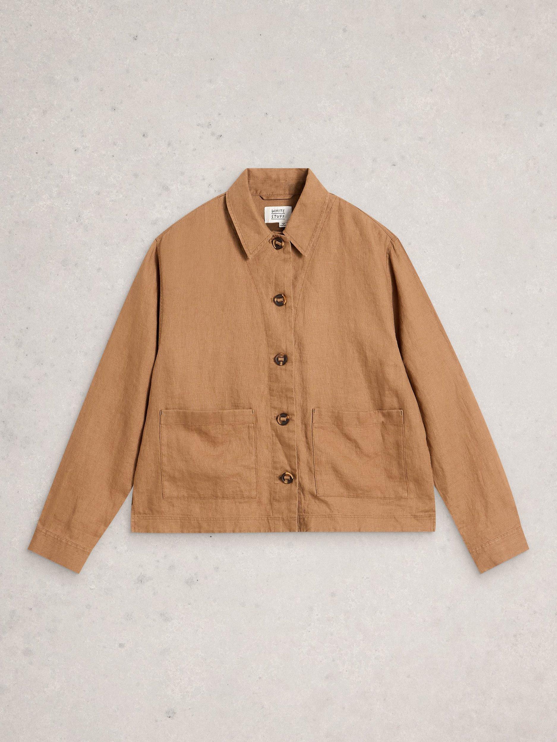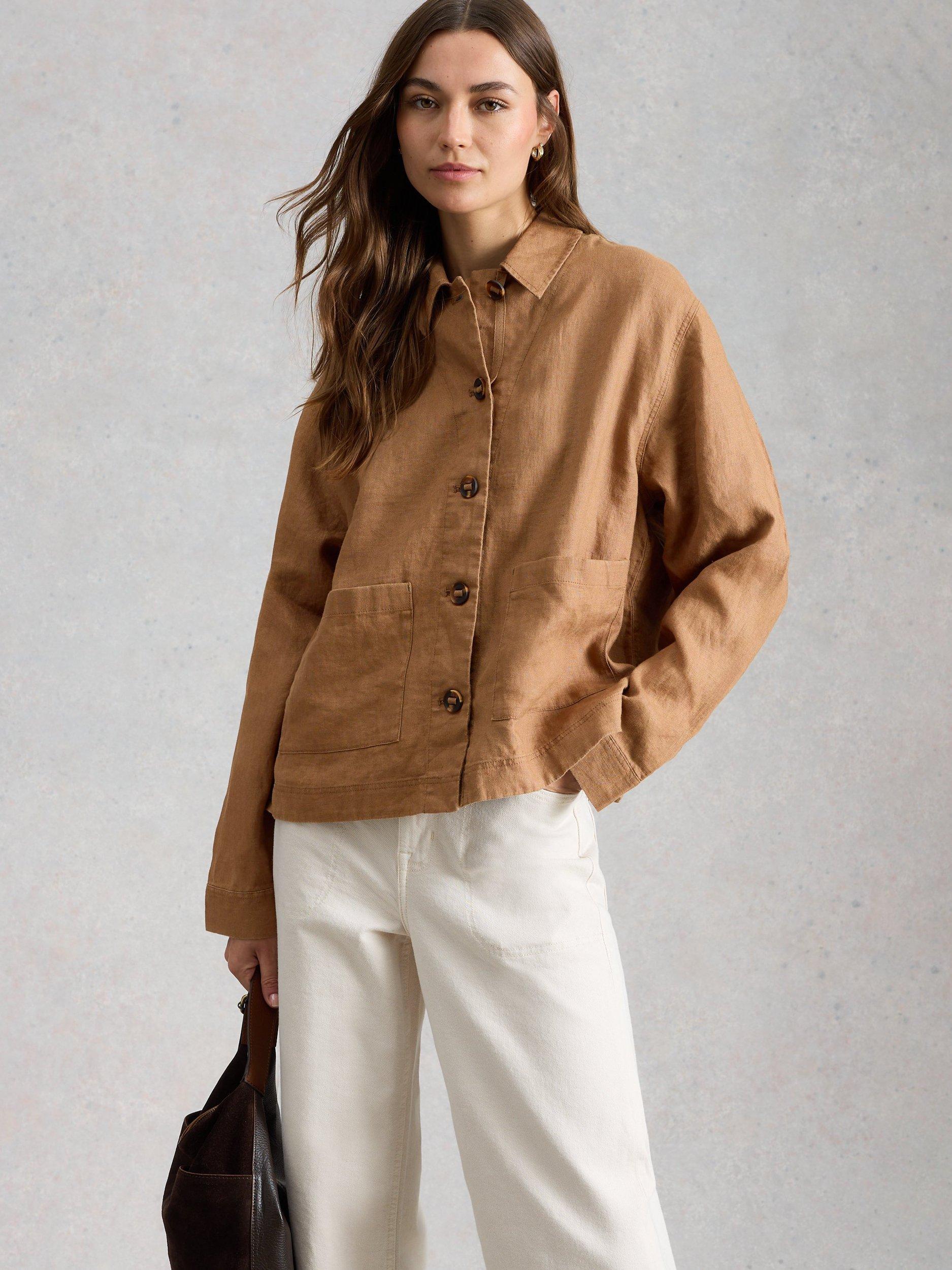 This jacket by White Stuff is detailed with a collar and front patch pockets and is made from pure linen for a light and natural texture.