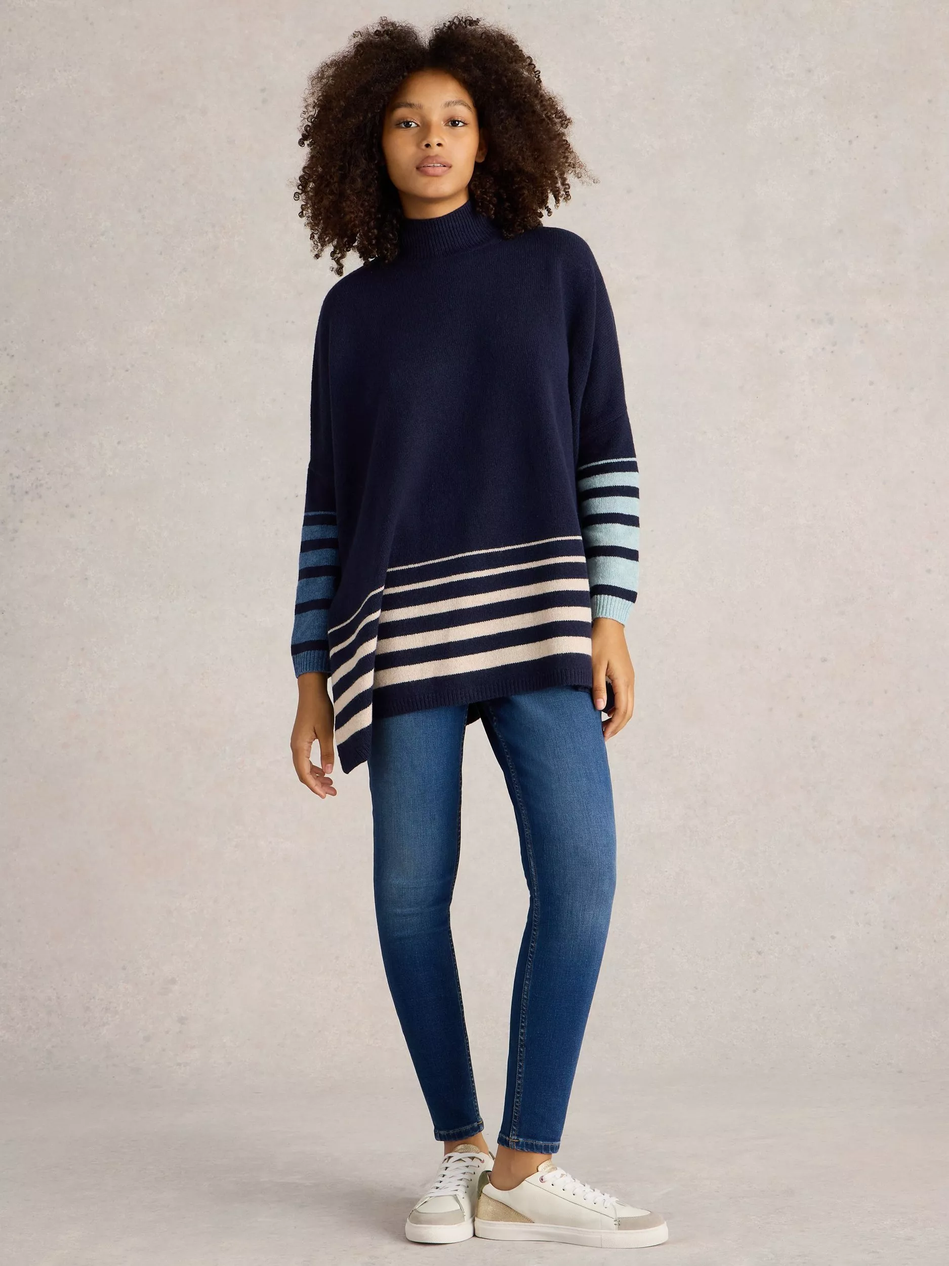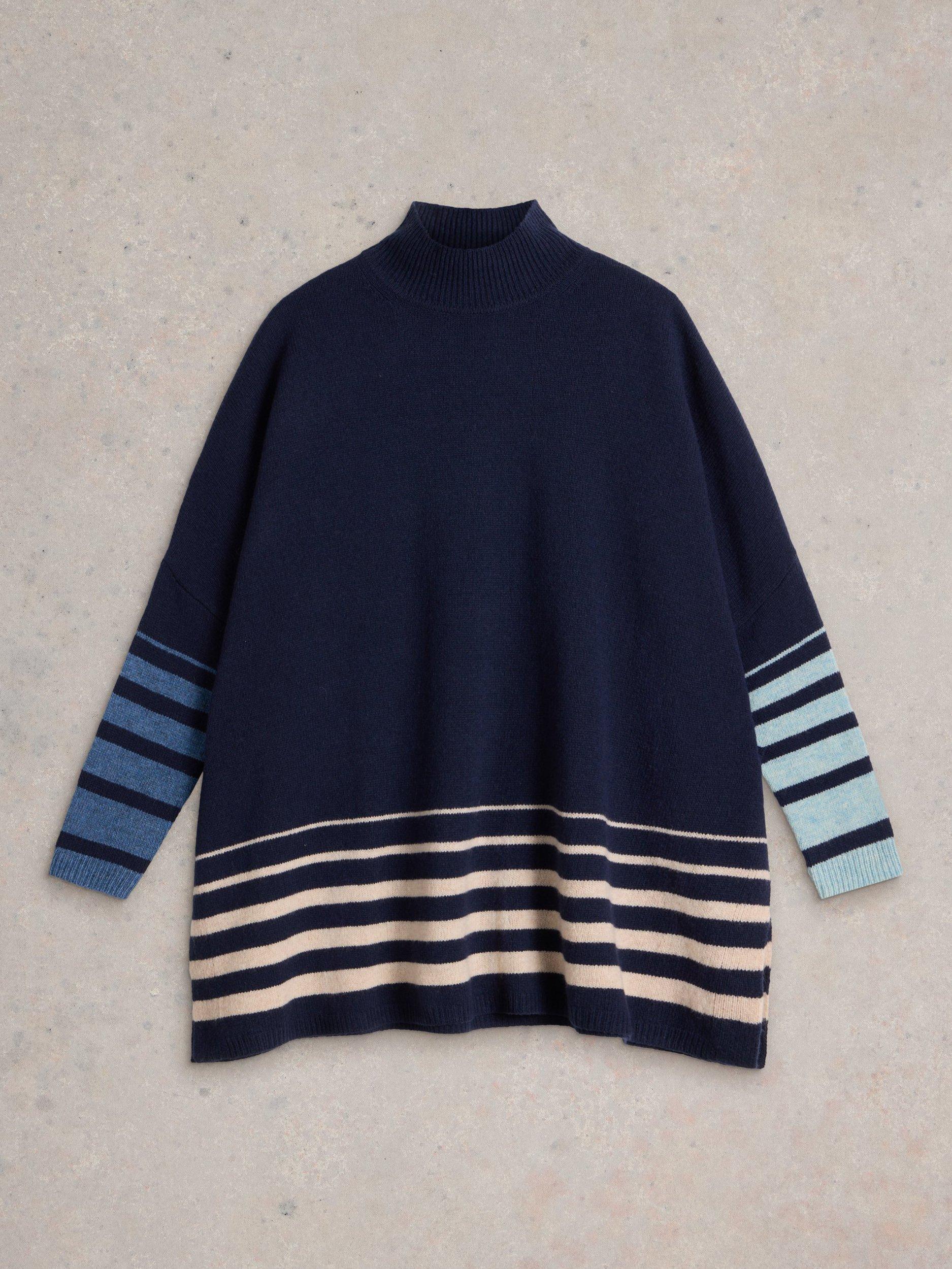 Throw on this poncho and you'll feel chic in any outfit. It's made from a soft wool blend and has side slits for a comfortable fit.
