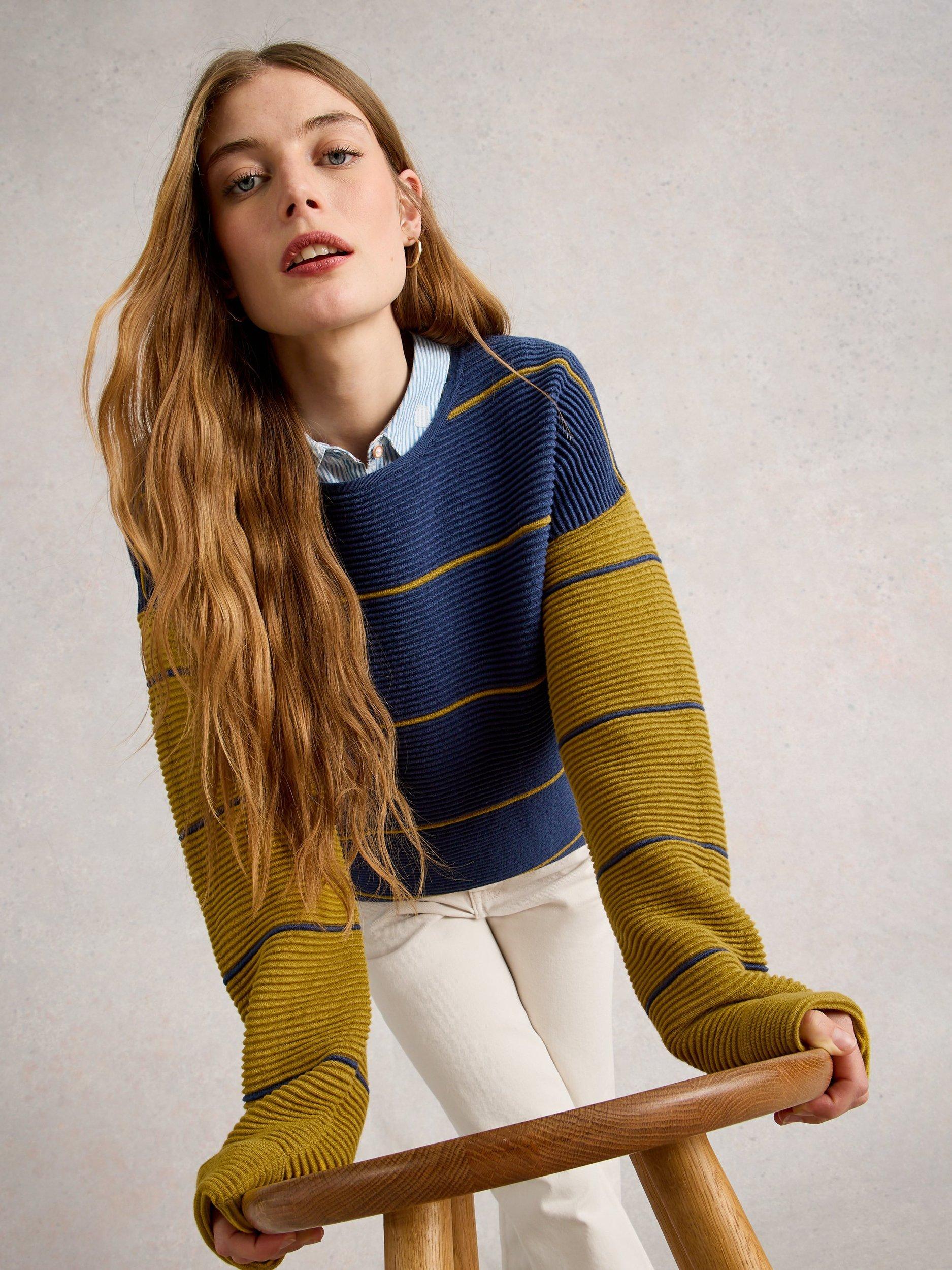 White StuffJana Colour Block Stripe Jumper, Navy/Multi
