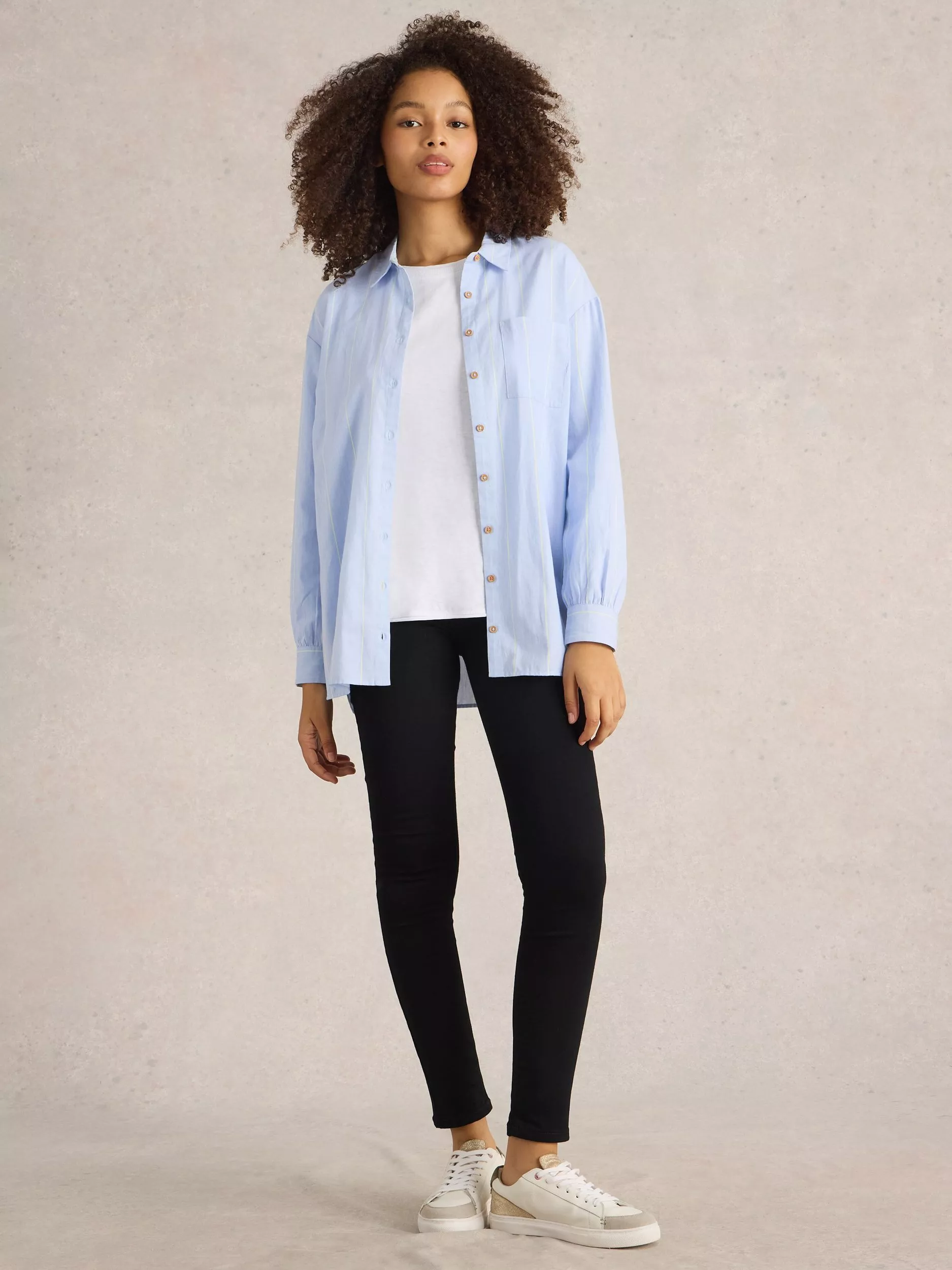 Slim through the leg, these high-waisted jeans from White Stuff are made from a comfy cotton blend and have regular grazing hems.