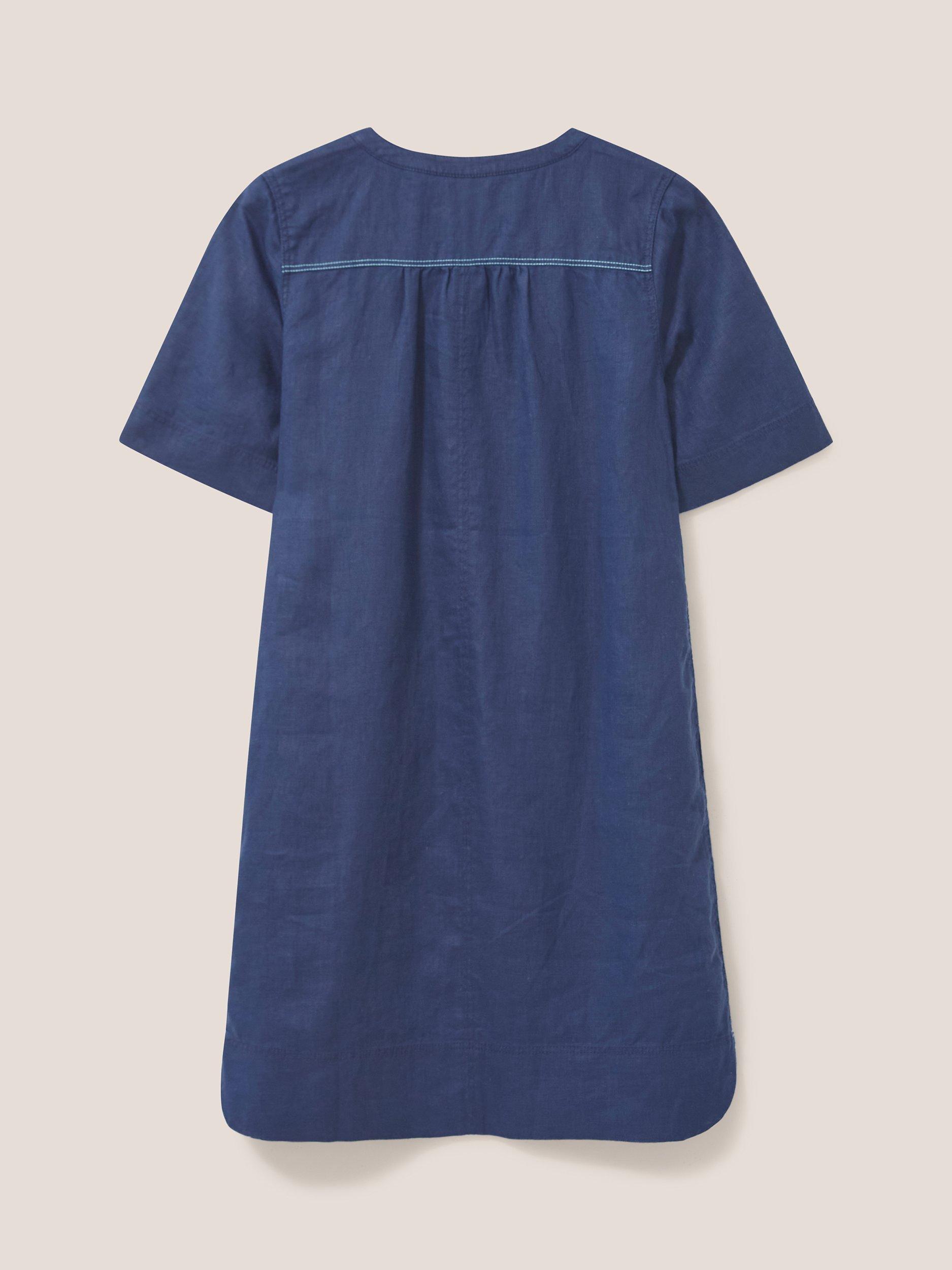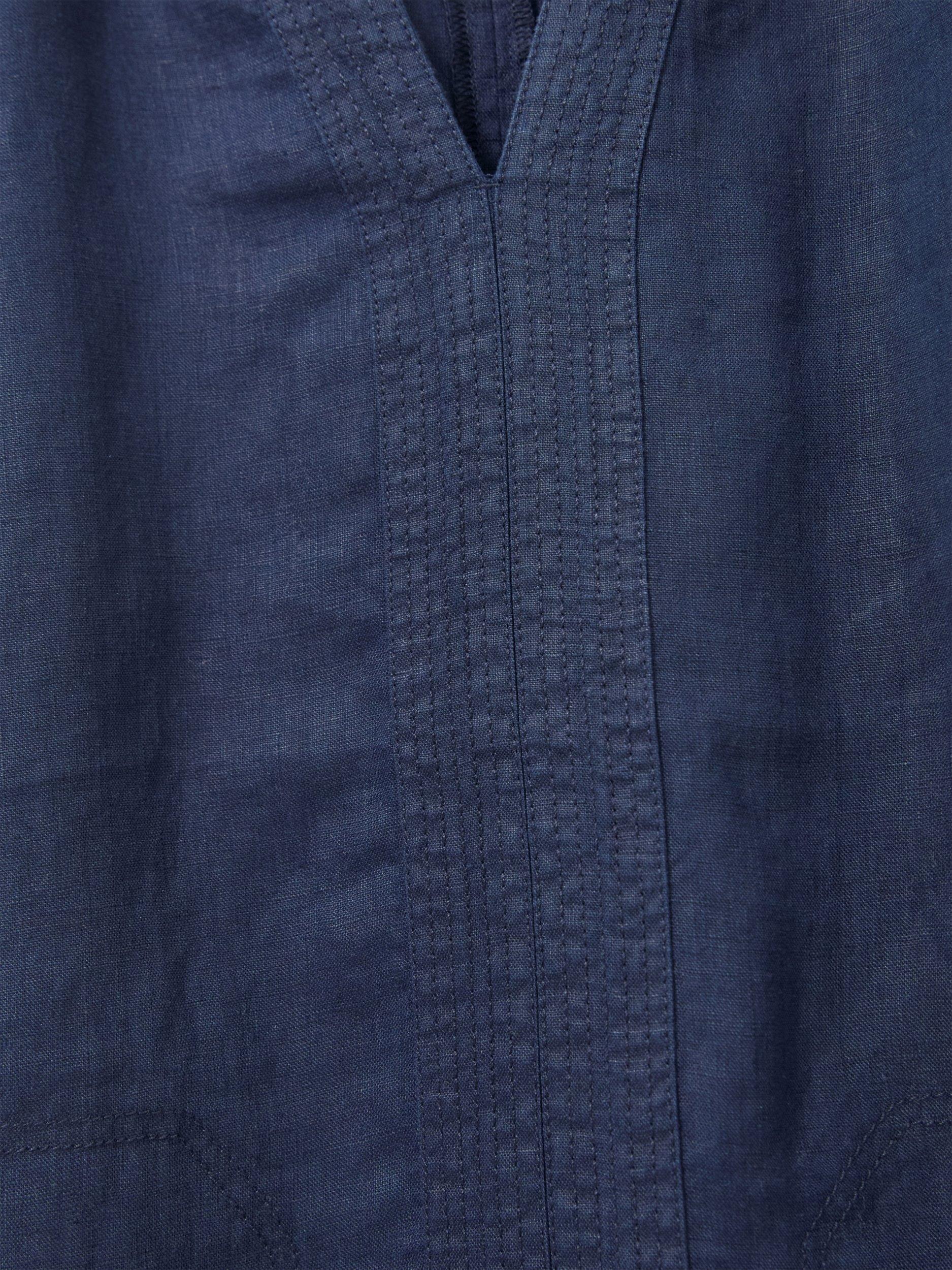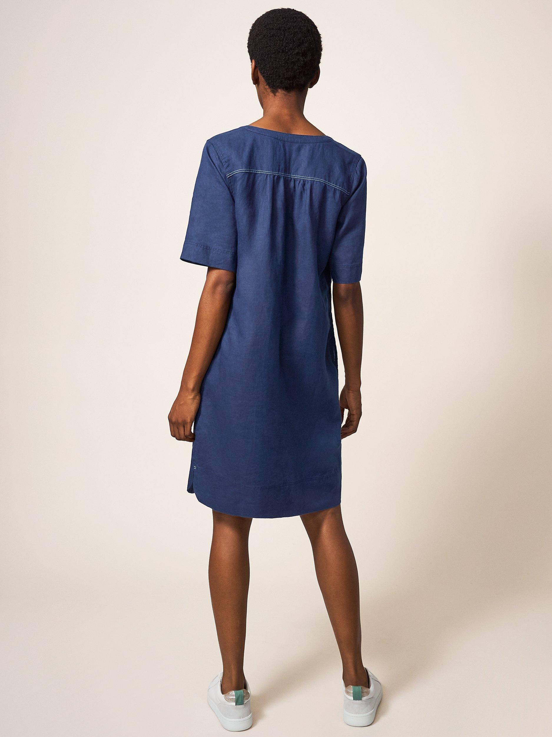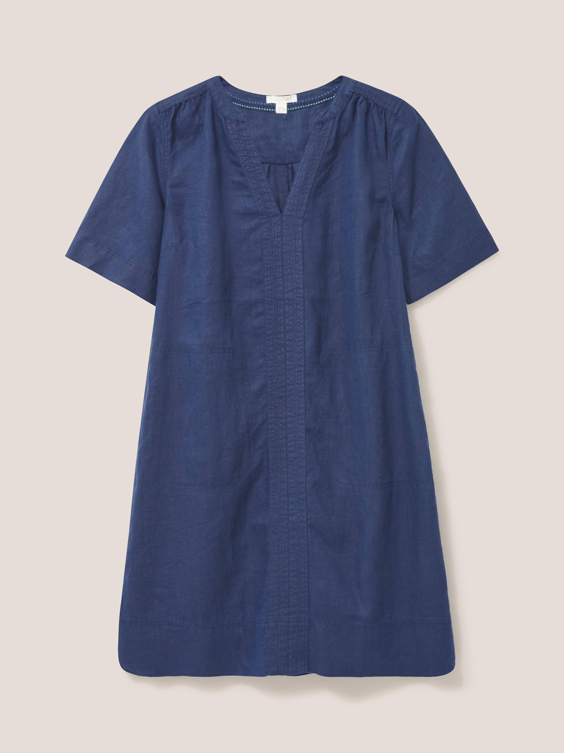With a flattering v-neckline and elbow length sleeves, it has a lovely natural feel in pure linen and is a care-free option for daytime dressing.