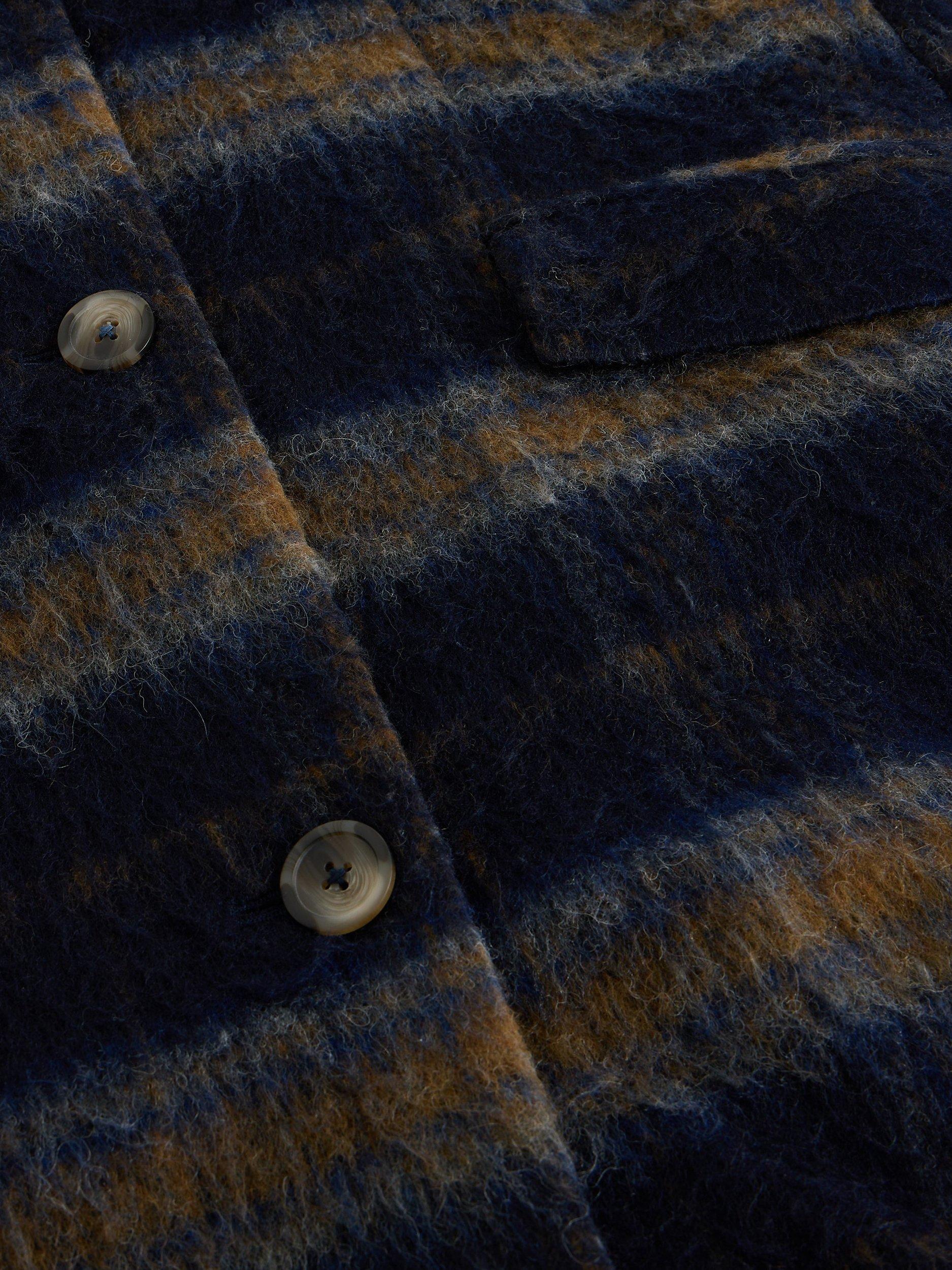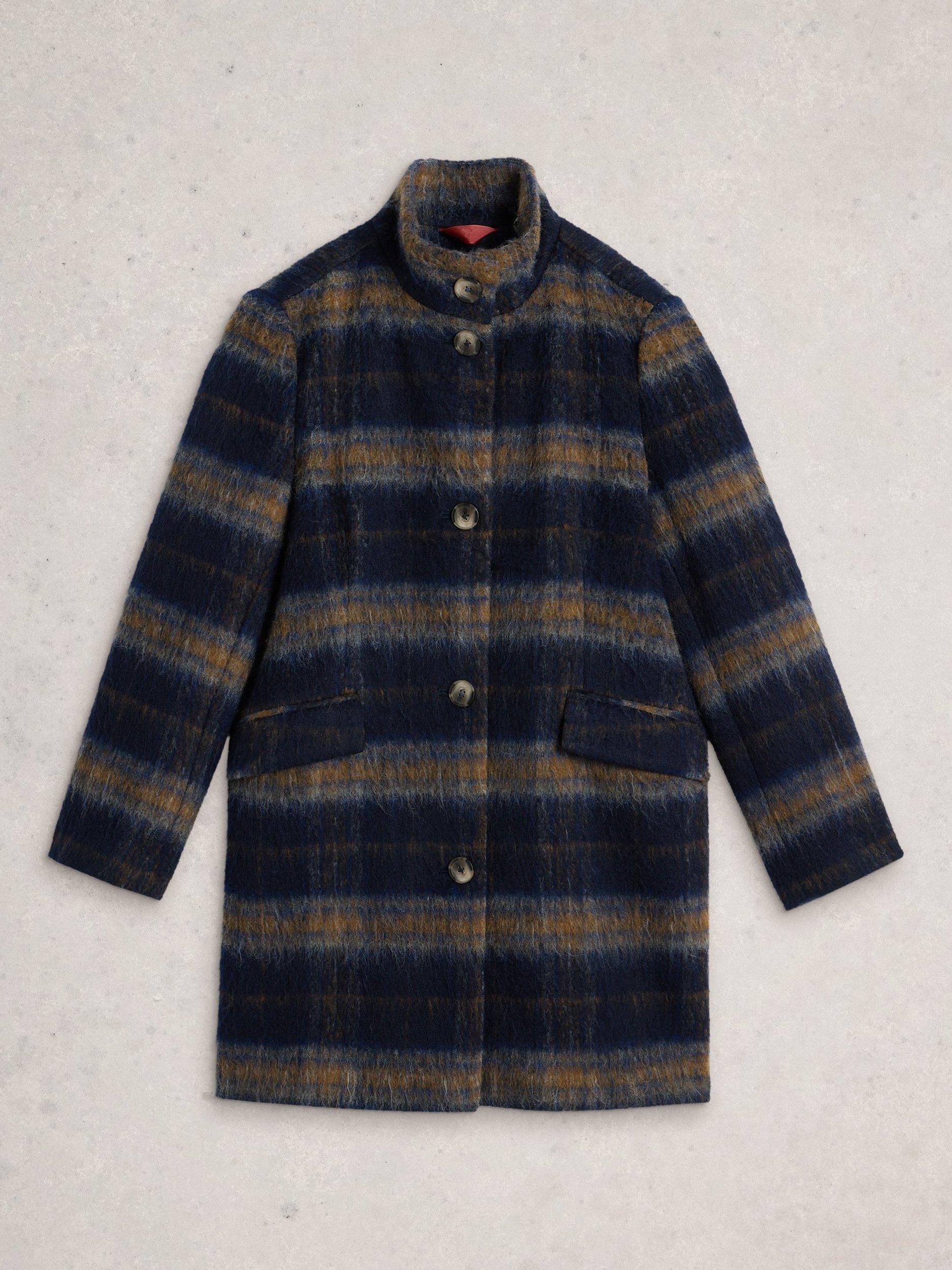 This overcoat keeps you cosy and sharp, with a smart funnel neck and bold stripe design. The wool blend feels warm on winter days, while the regular cut layers easily over jumpers for all your plans.