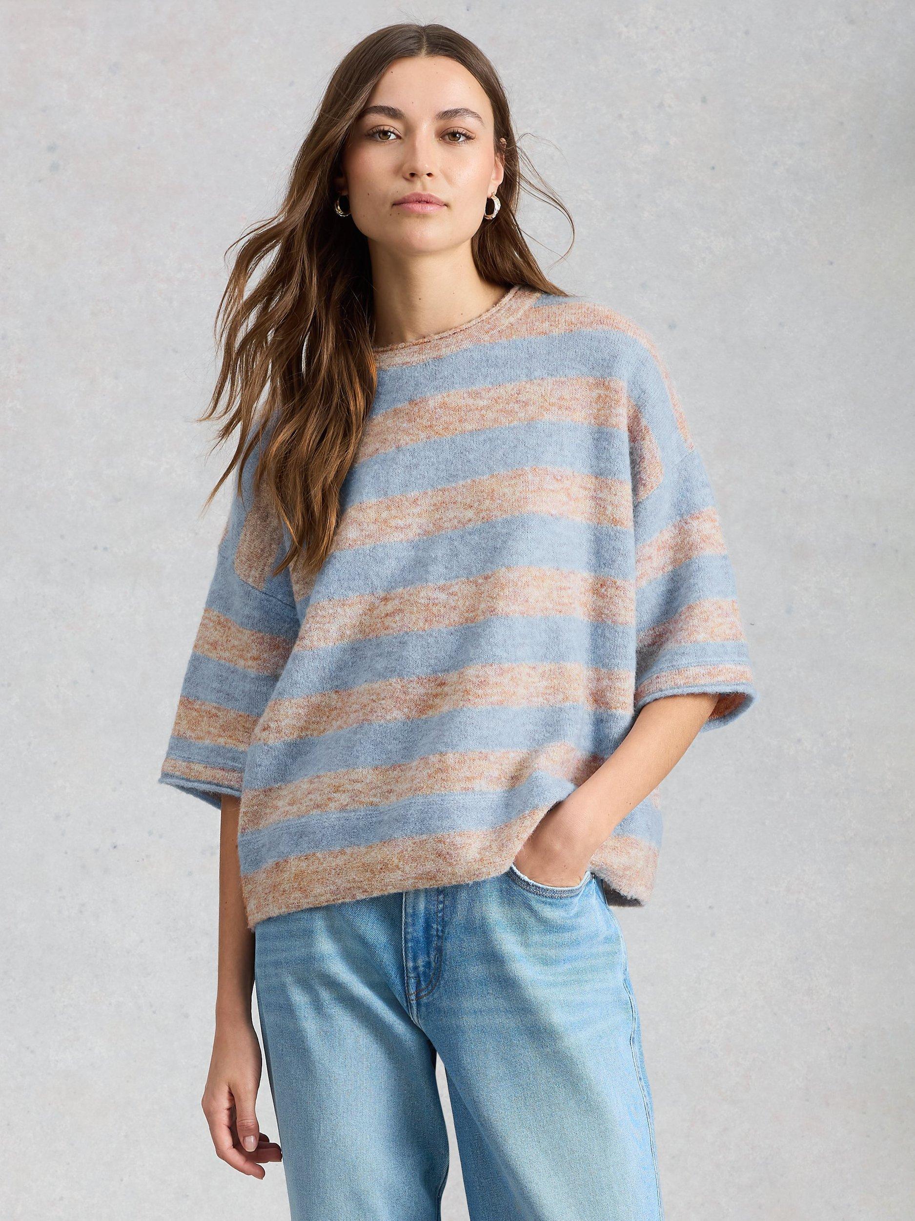 A jersey knit top from White Stuff, woven from a wool blend. Featuring a boat neck and long sleeves, it's a wardrobe classic with neat striping. One for your everyday lineup.