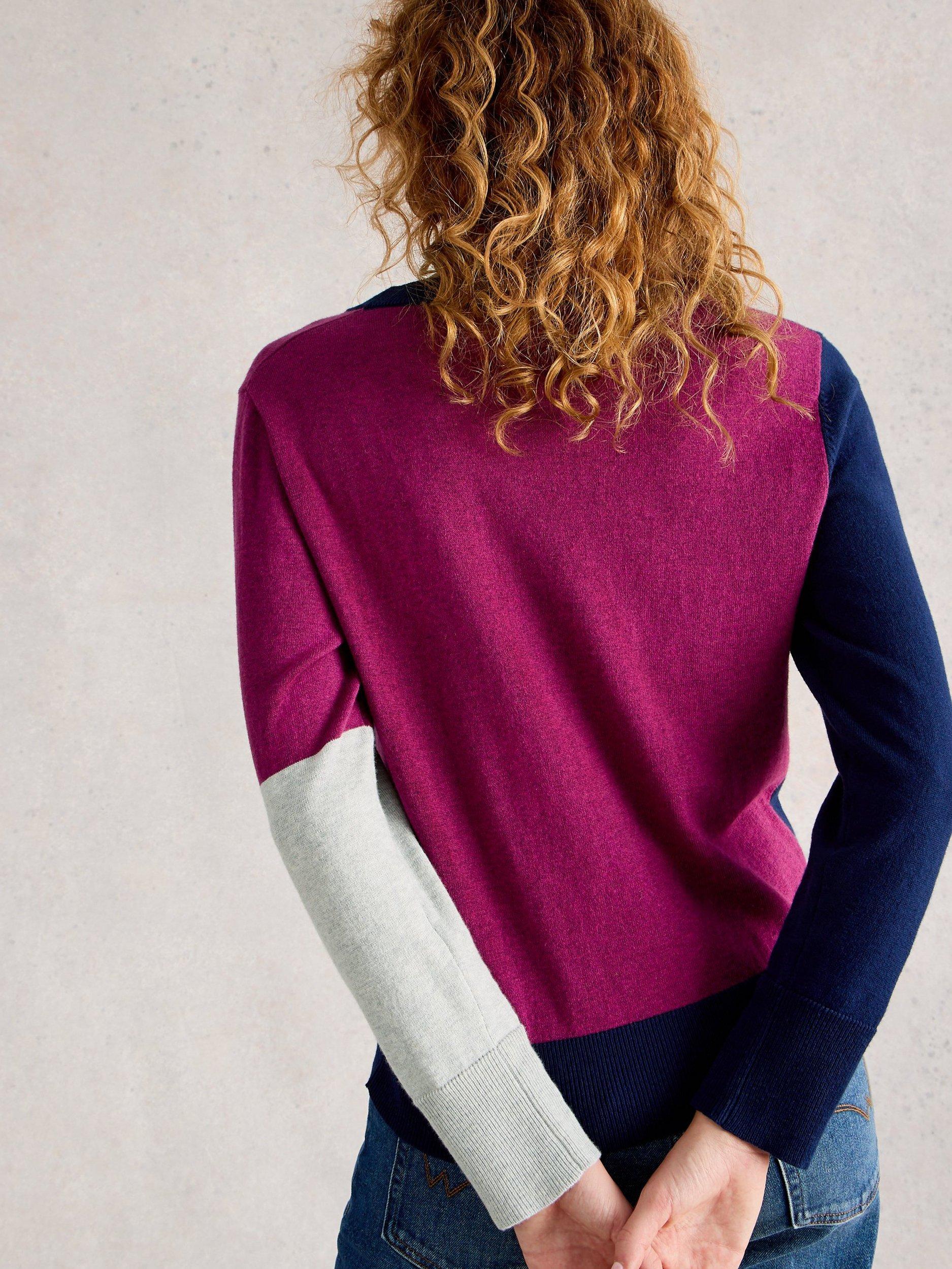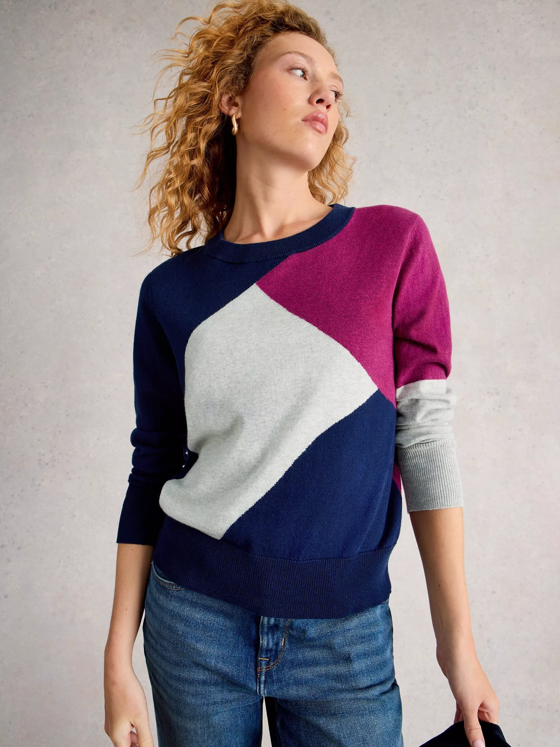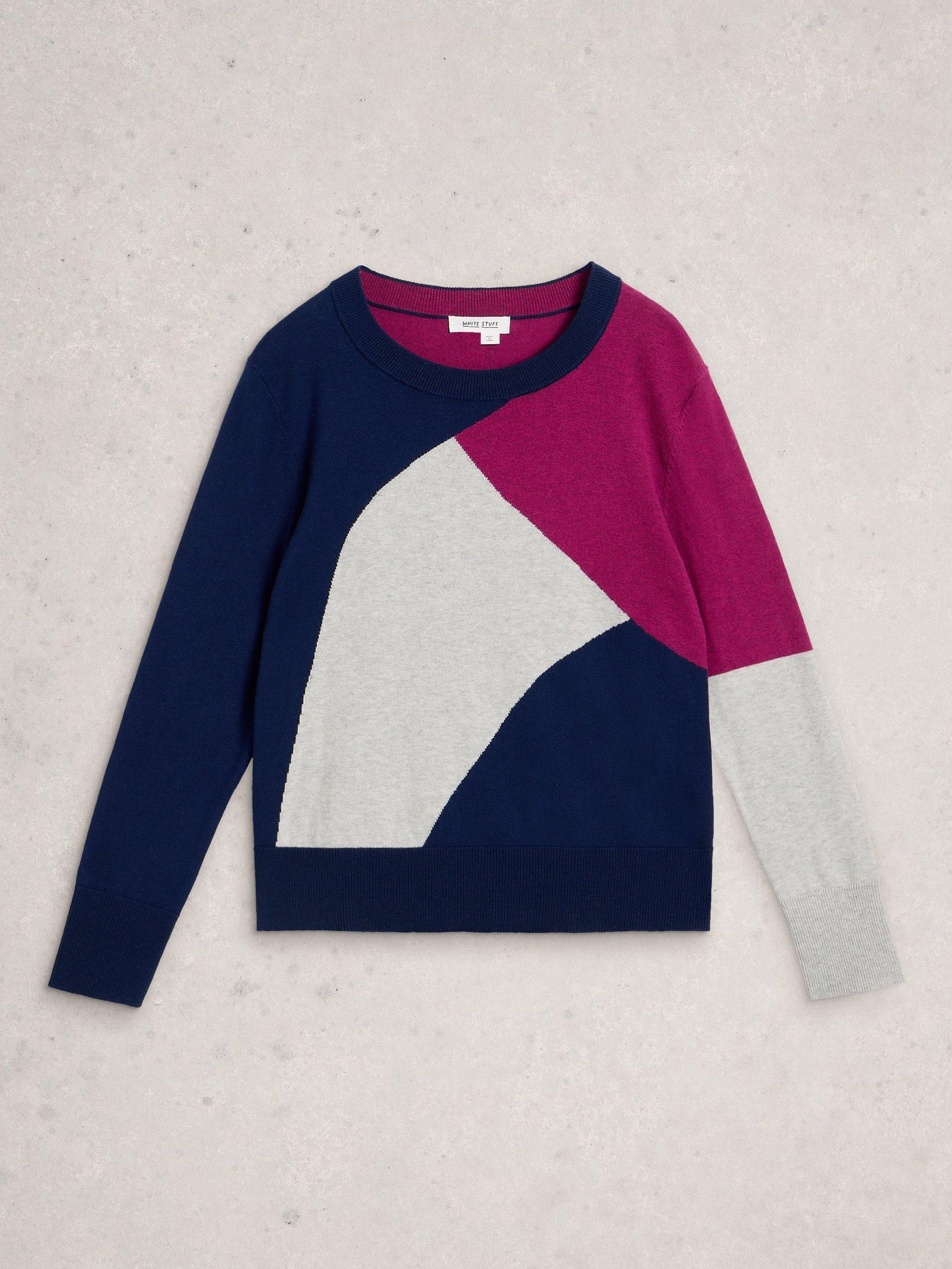 This fine knit jumper wraps you in comfort and features an interesting abstract pattern. Light enough for layering, it feels soft all day.