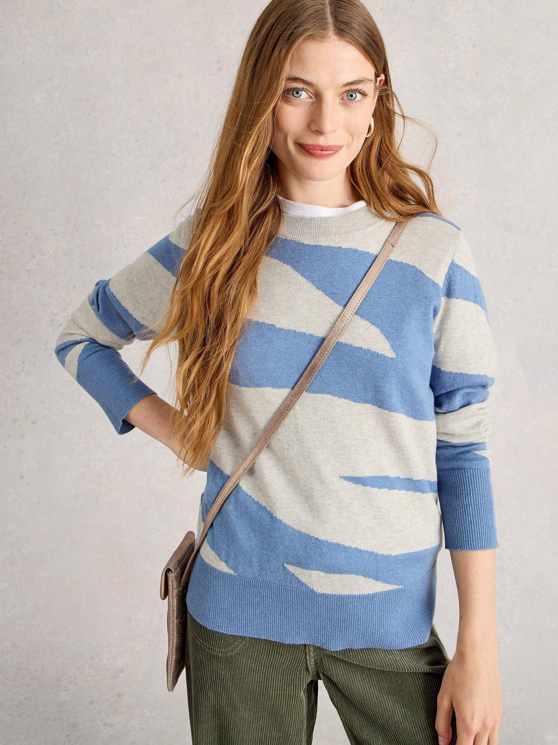 Fabricated using a wool blend, this round neck jumper from White Stuff features an eye-catching, abstract design.