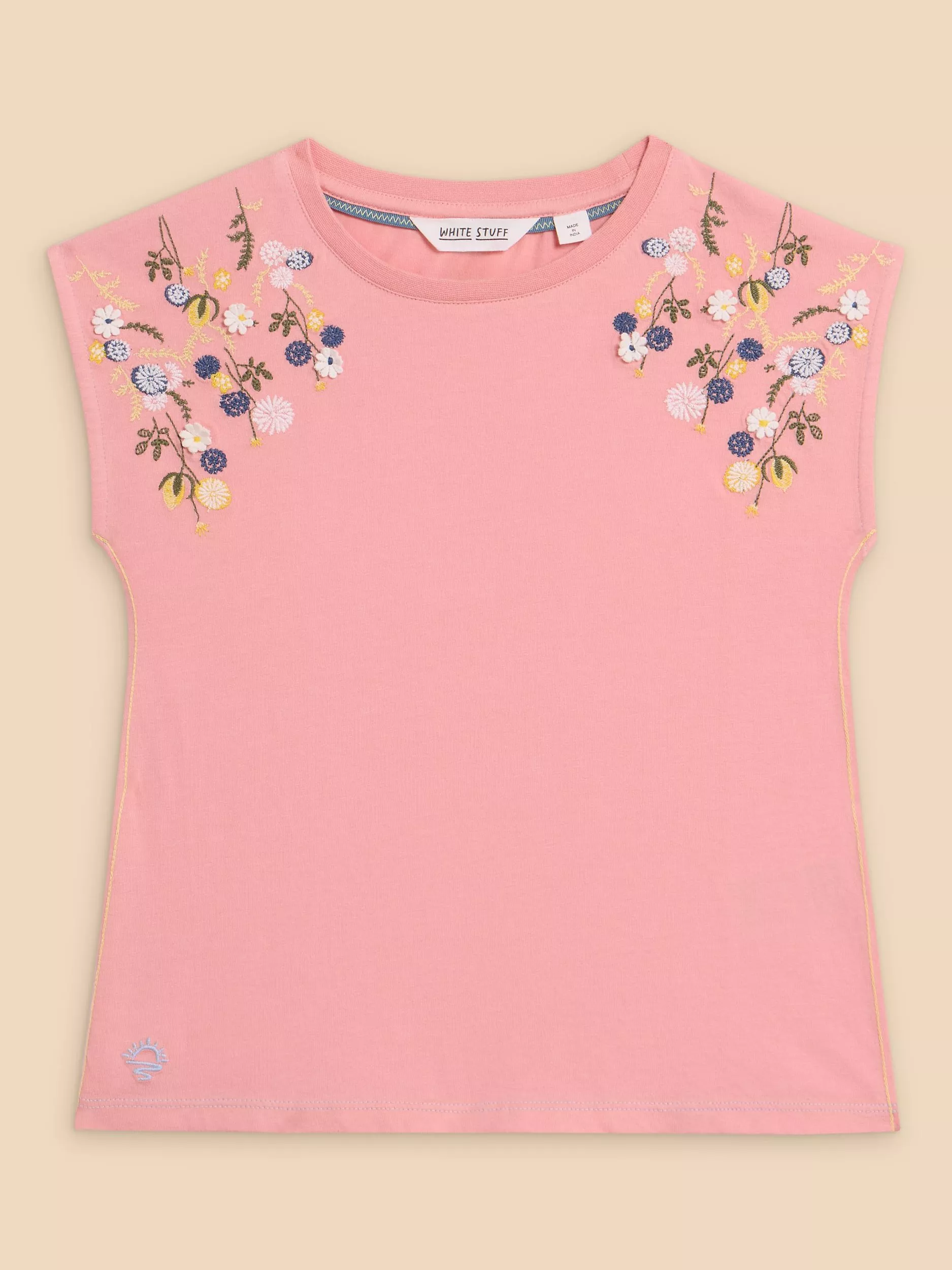 Detailed with delicate embroidery, this sleeveless jersey top by White Stuff is cut from soft cotton that's kind to delicate skin (even after a full day of running around).