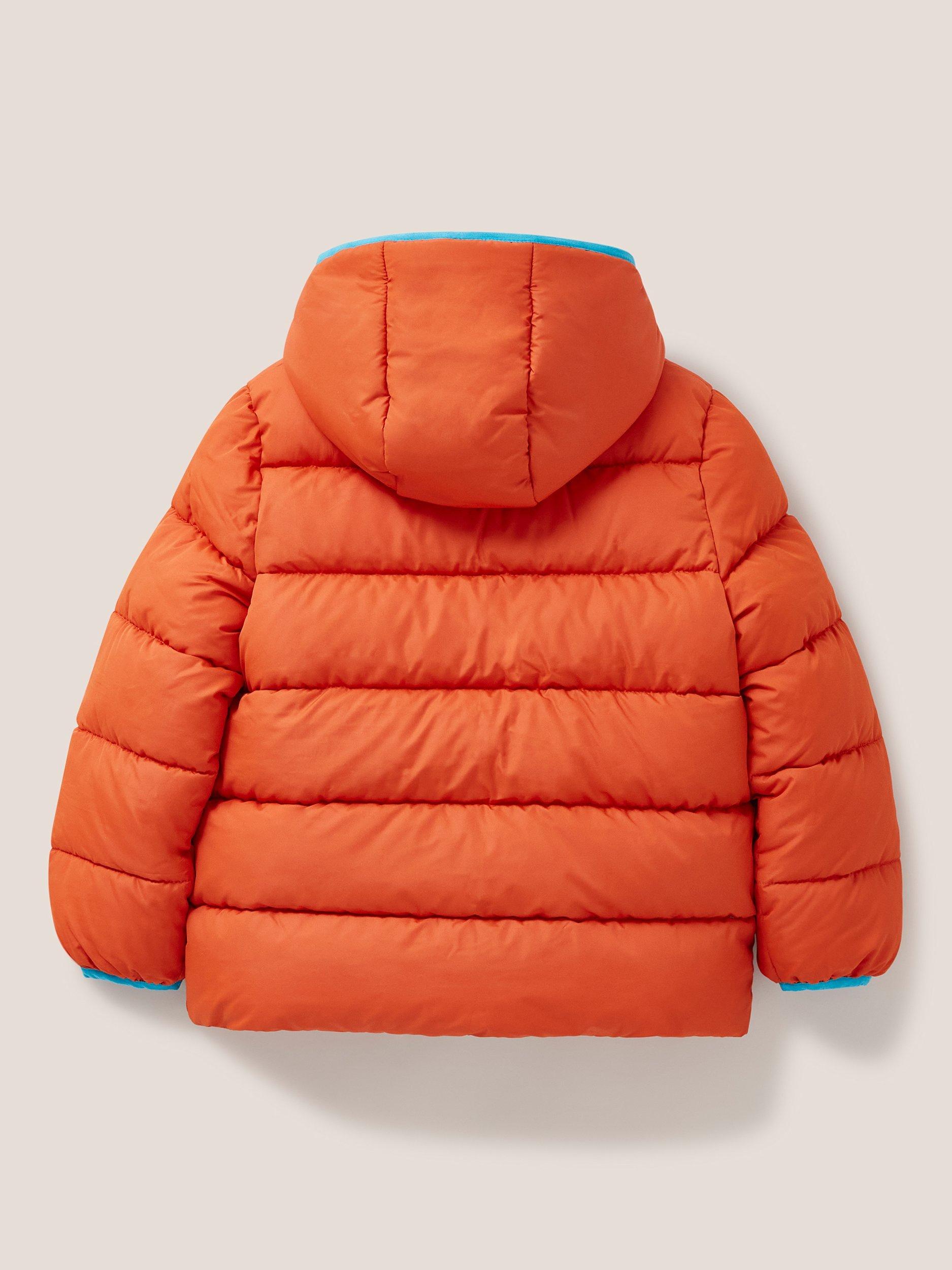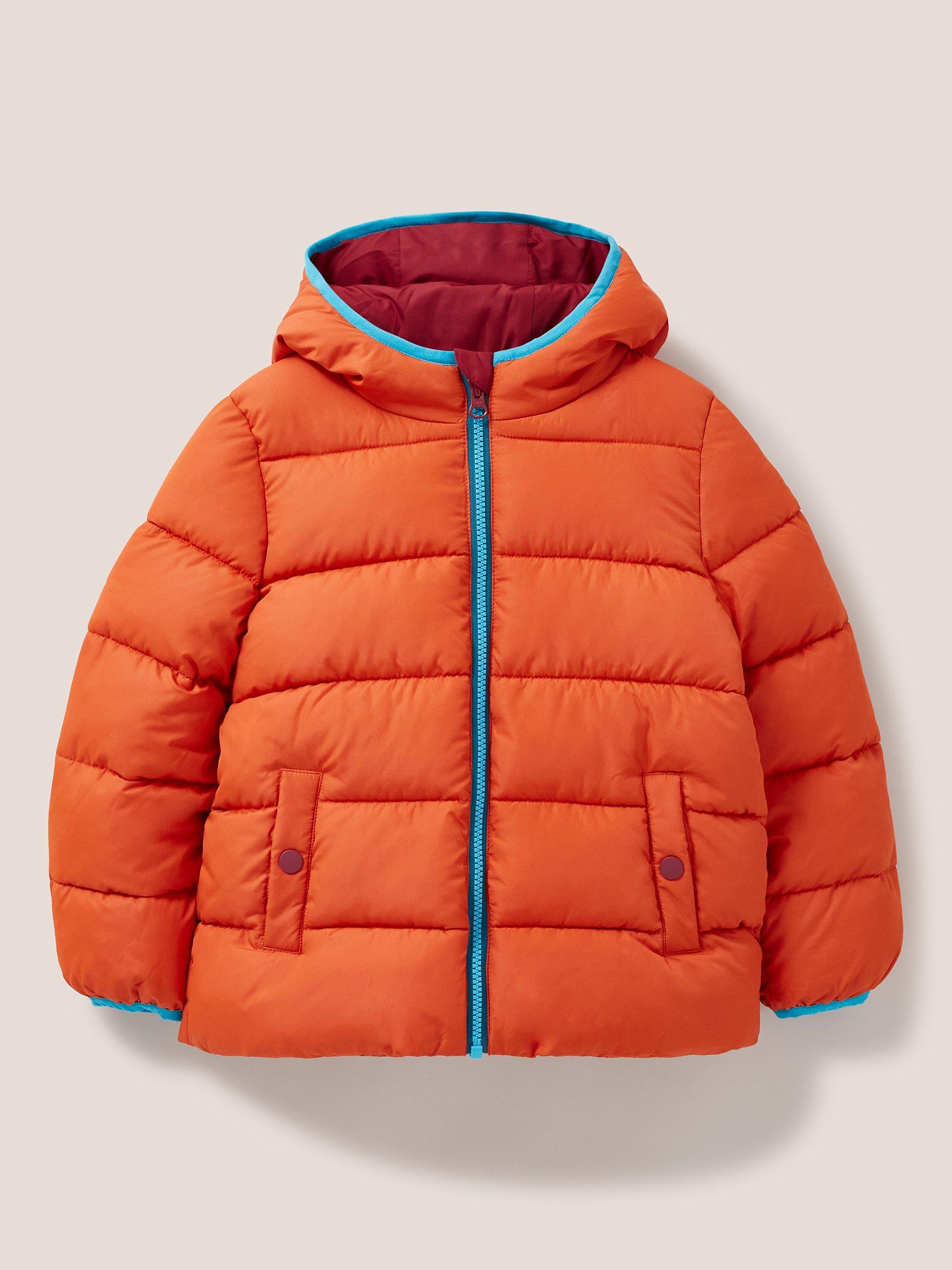 A cosy puffer jacket in a versatile plain design with hood and contrasting colour trims.