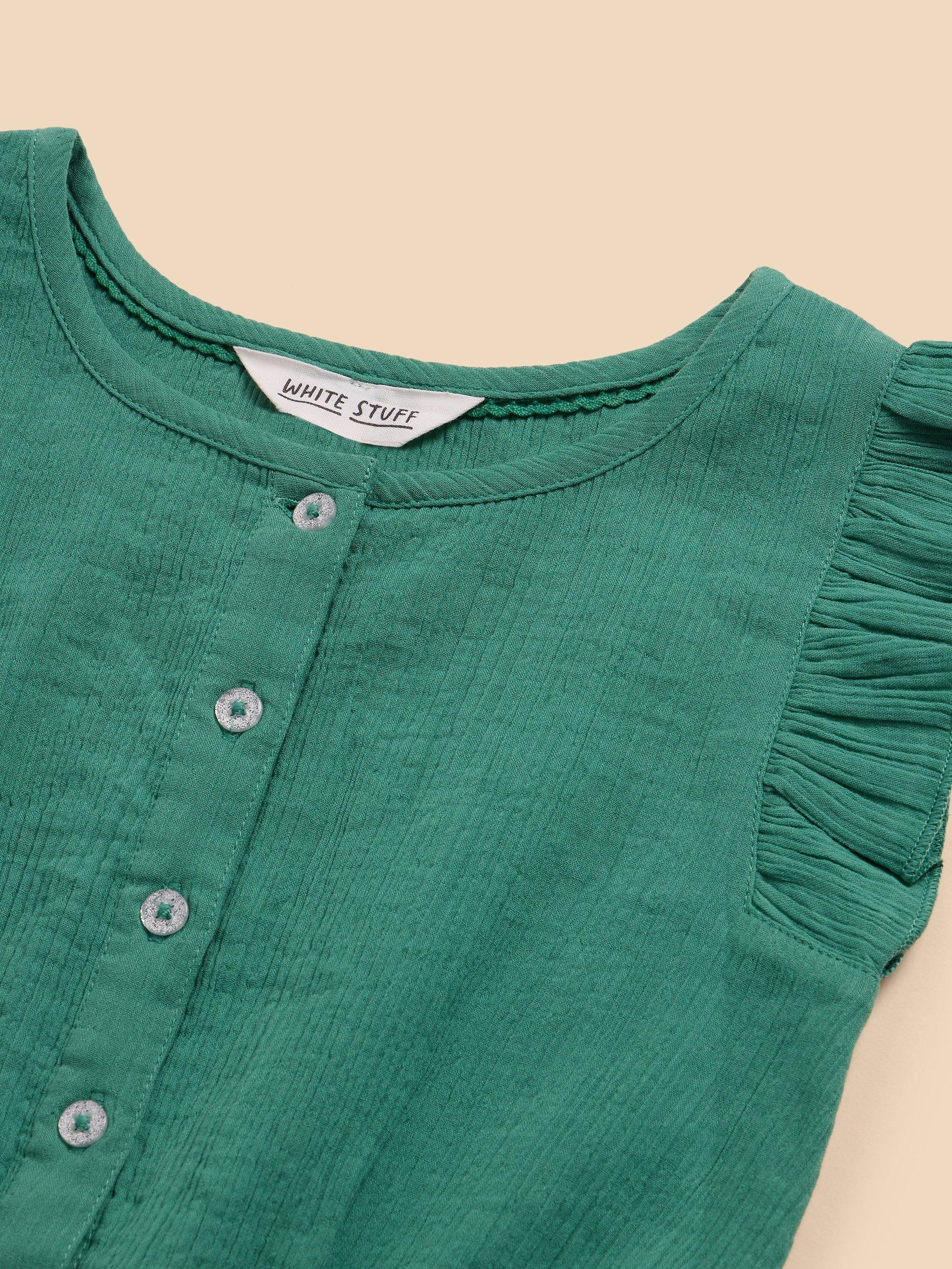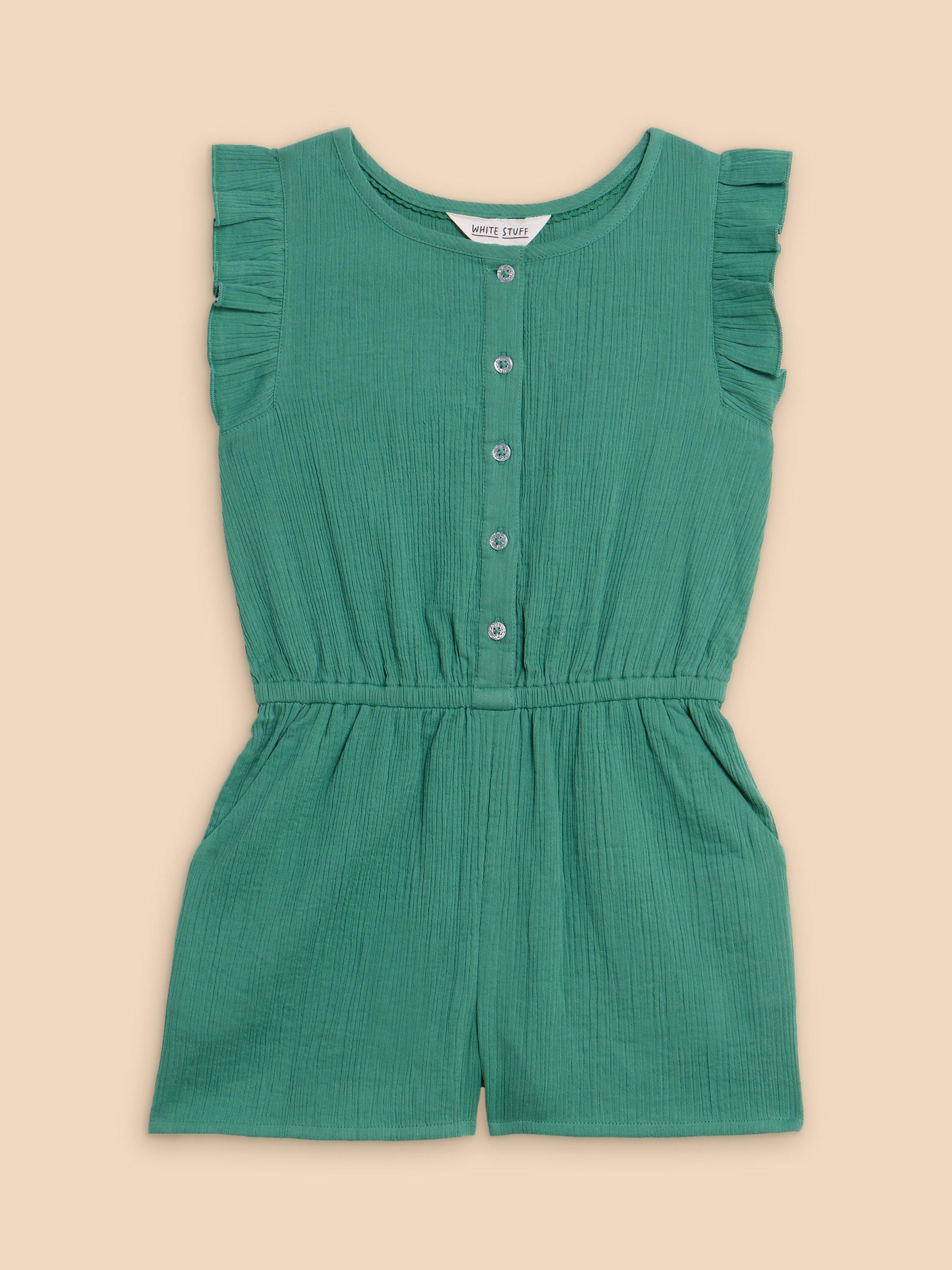 The perfect summer playsuit, crafted from pure cotton for easy, breezy wear. Ruffled sleeves and a button front add the finishing look.