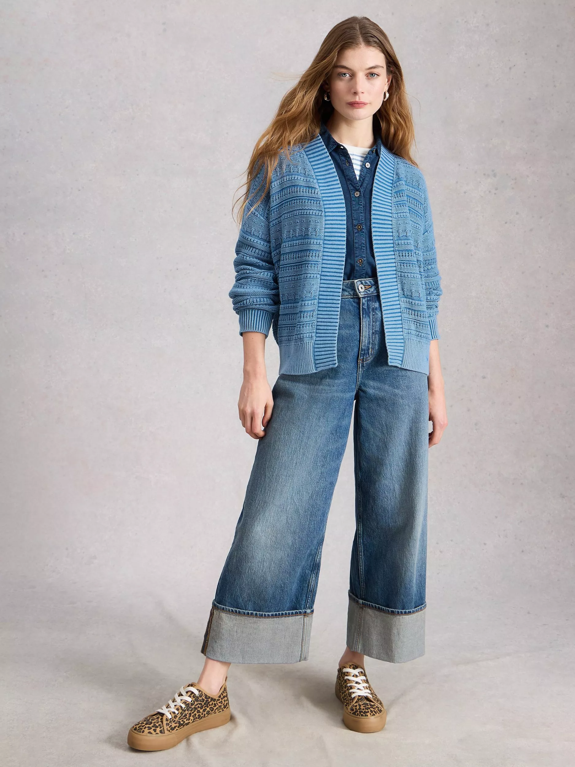 White StuffKimberly Textured Open Neck Cardigan, Blue