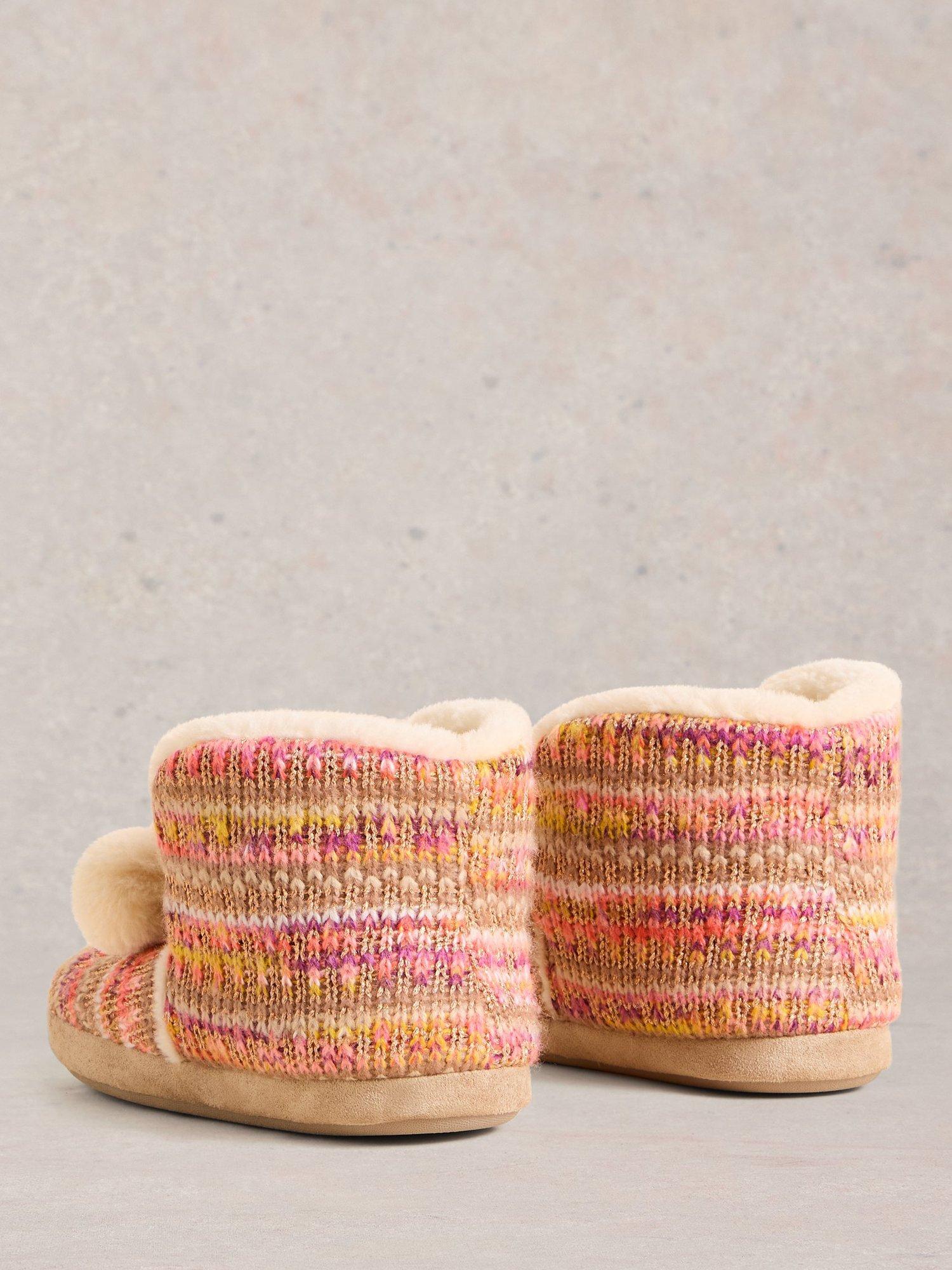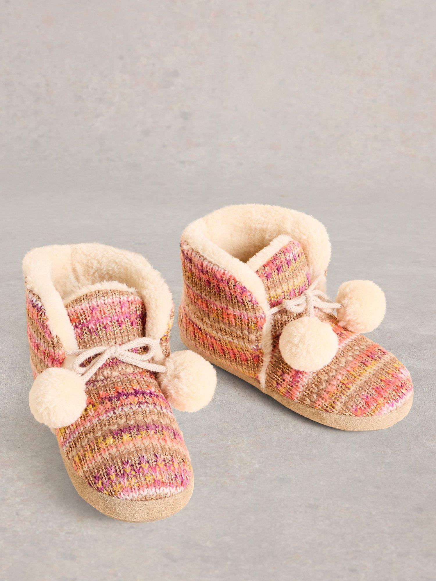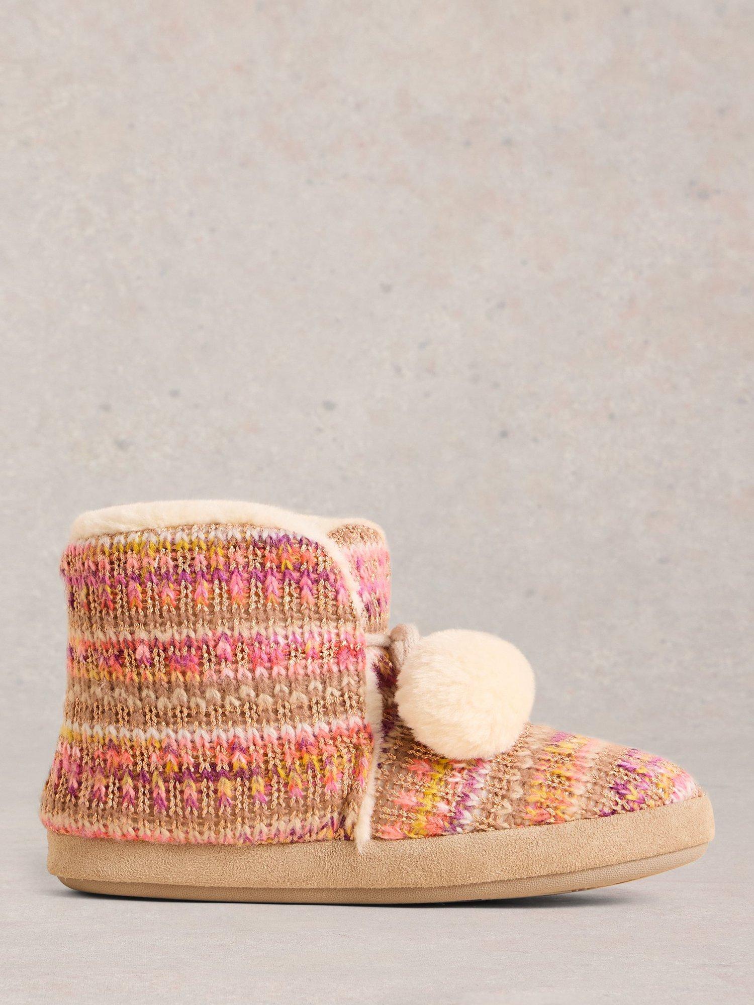 White StuffKnitted Faux Fur Lined Slippers, Camel/Multi