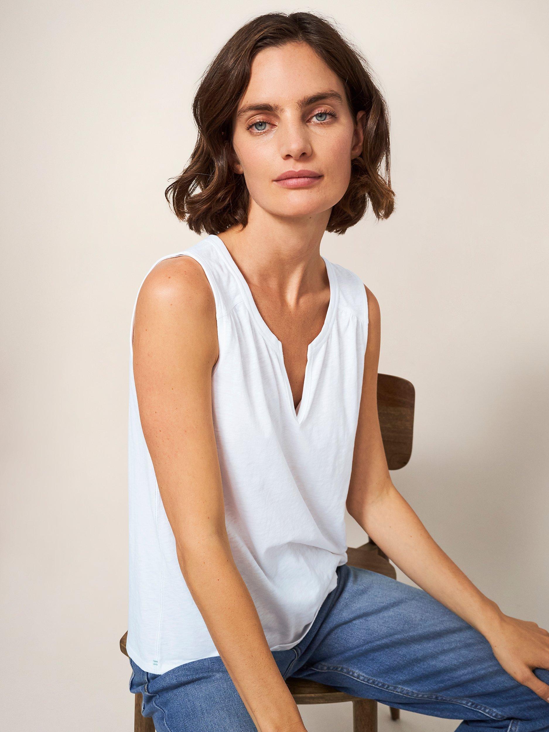 With a flattering v-neckline and a sleeveless design, it's made from soft cotton and will slot seamlessly into your everyday staples.