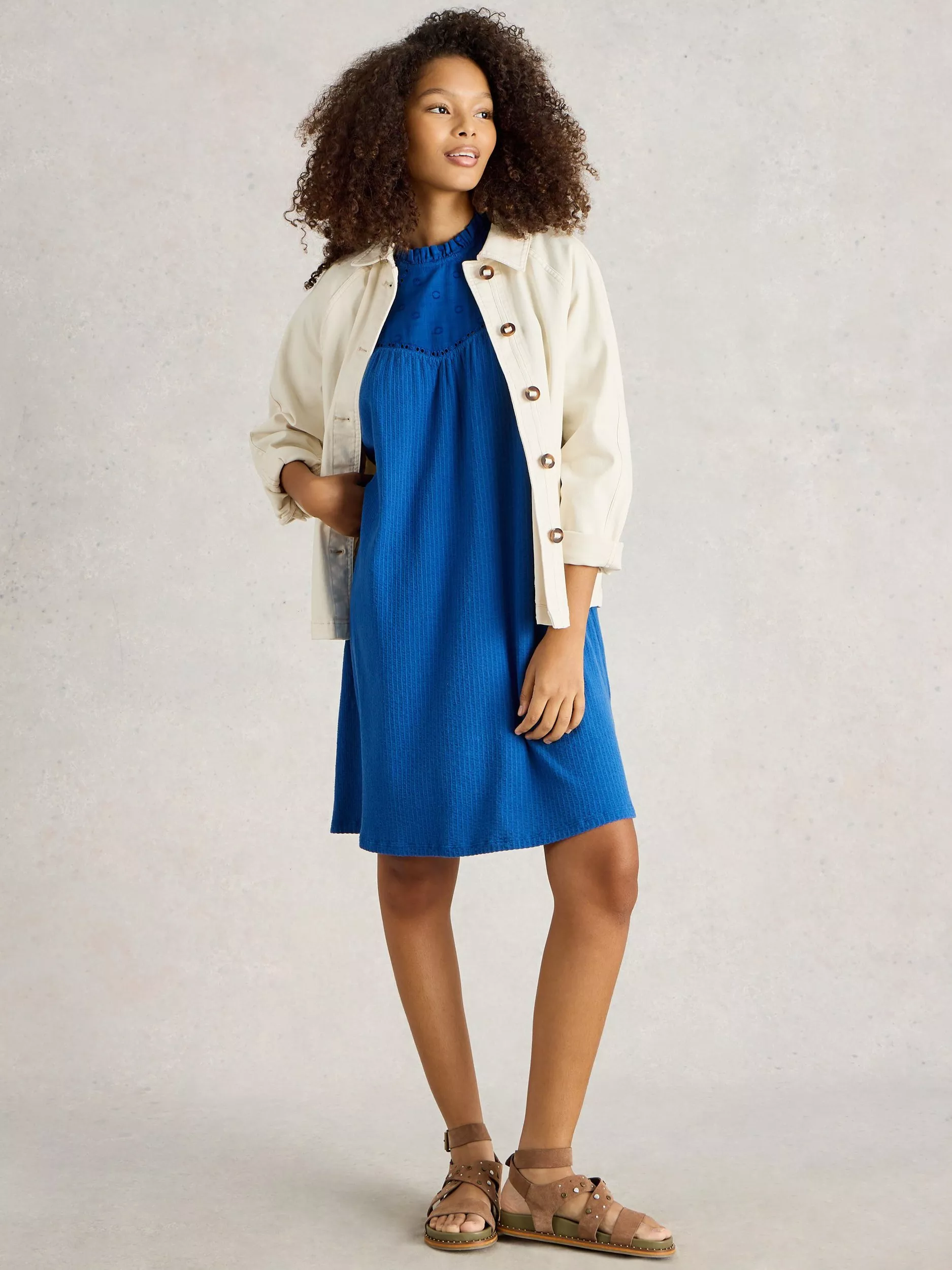A fun knee-length dress from White Stuff made of the airiest organic cotton. It's subtly special too, with its dot-embellished top and lace inserts from the neckline to the side seams.