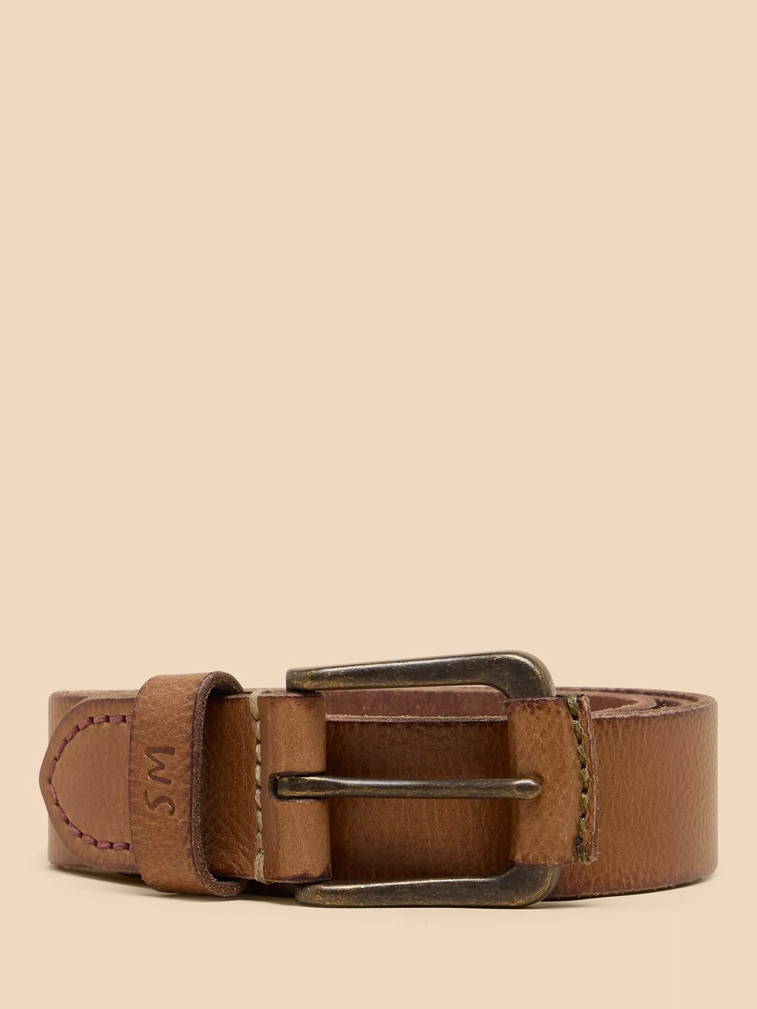 White StuffLeather Belt, Mid Tan