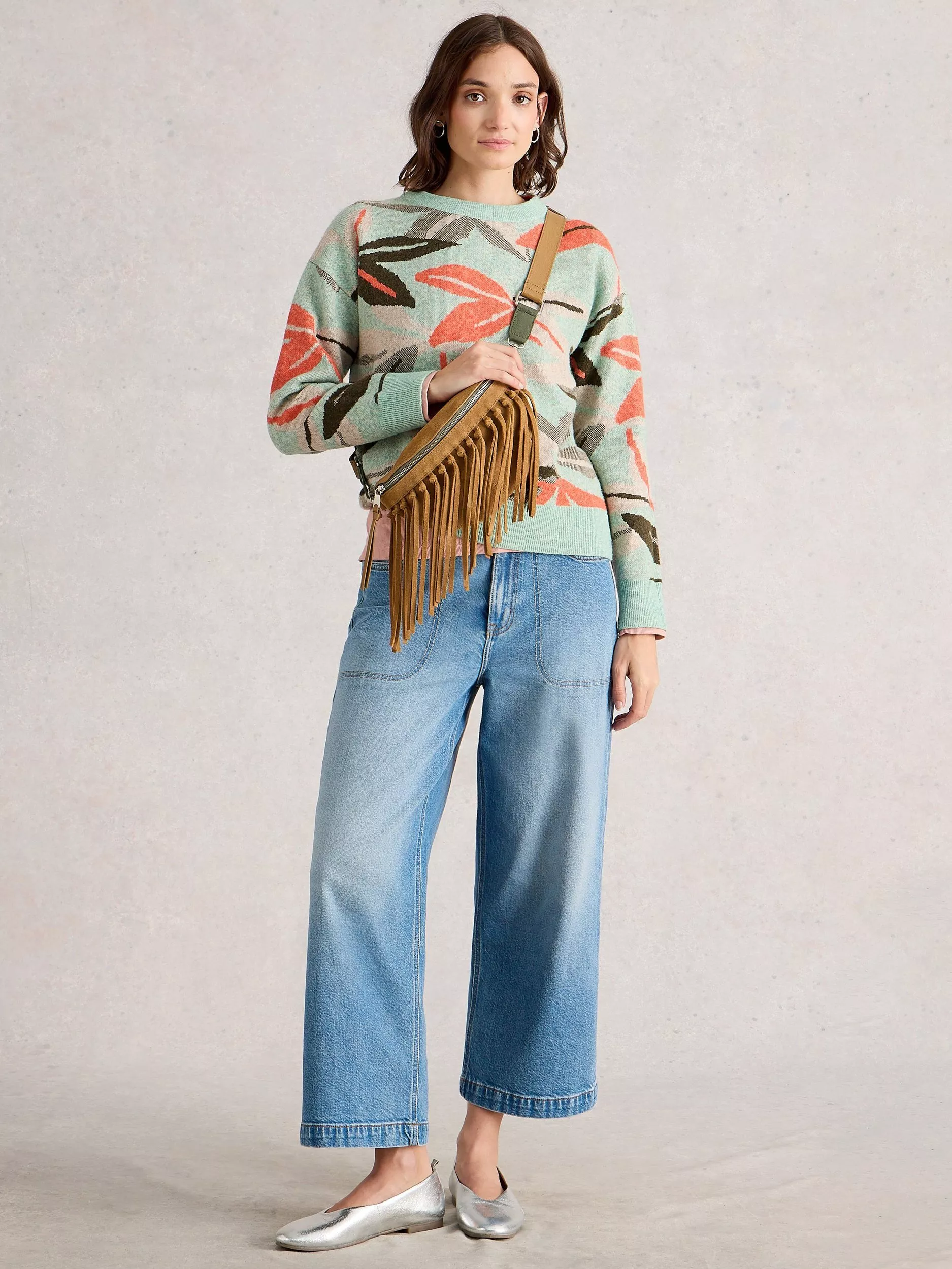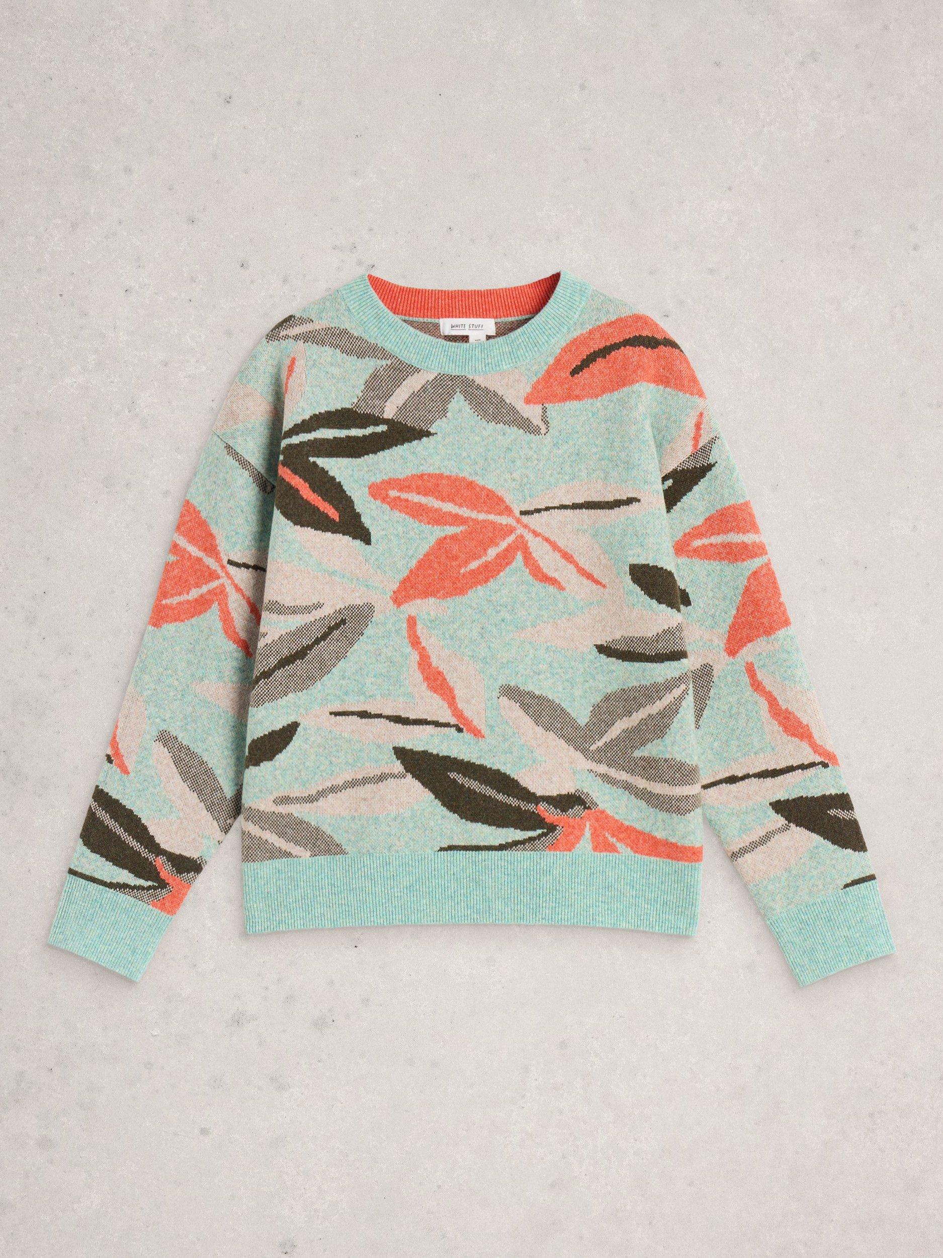 Featuring a lively leaf and tree pattern, this jumper feels light yet cosy - perfect for layering and everyday comfort. A crew neck and long sleeves add easy style to any outing.