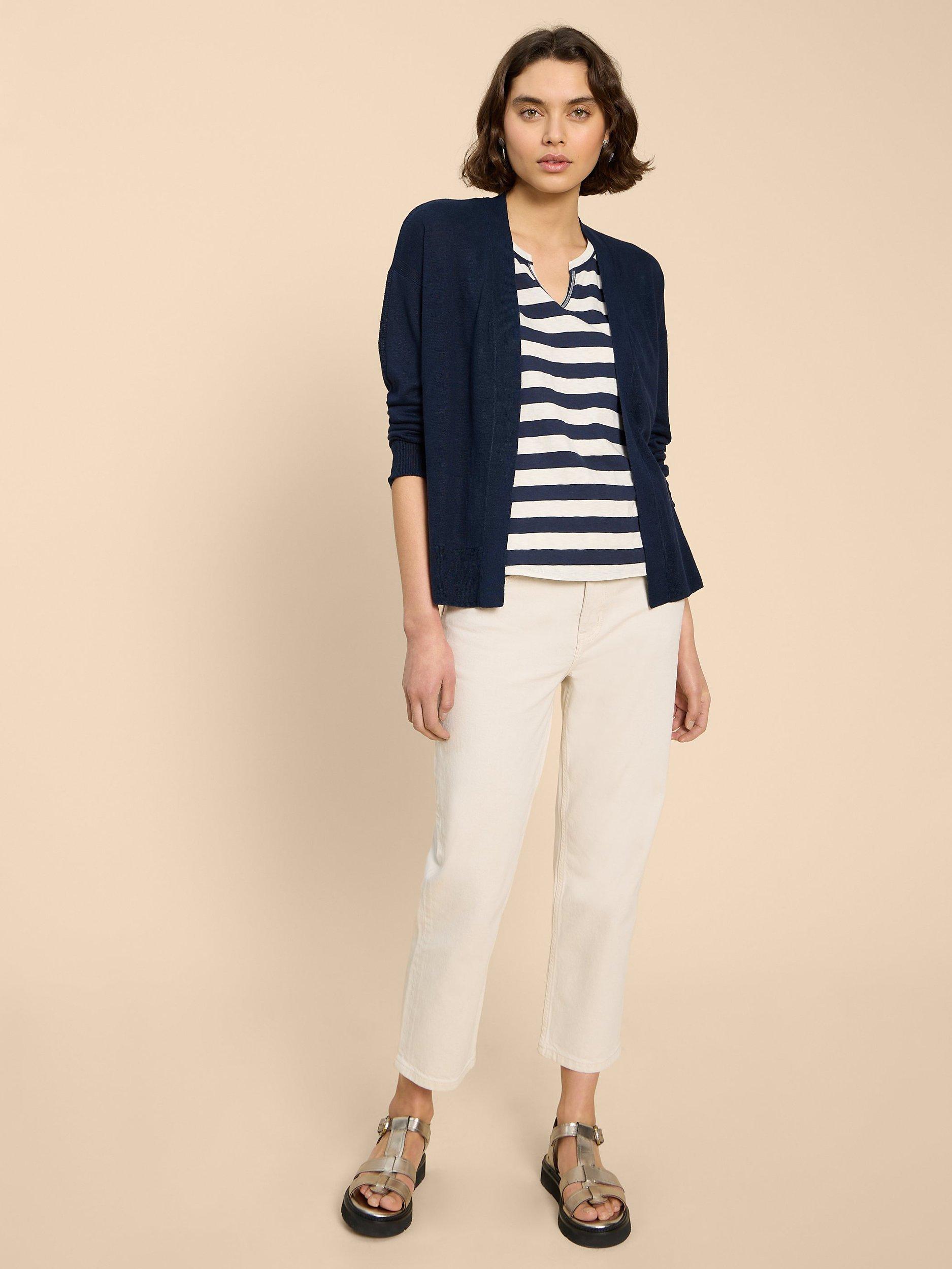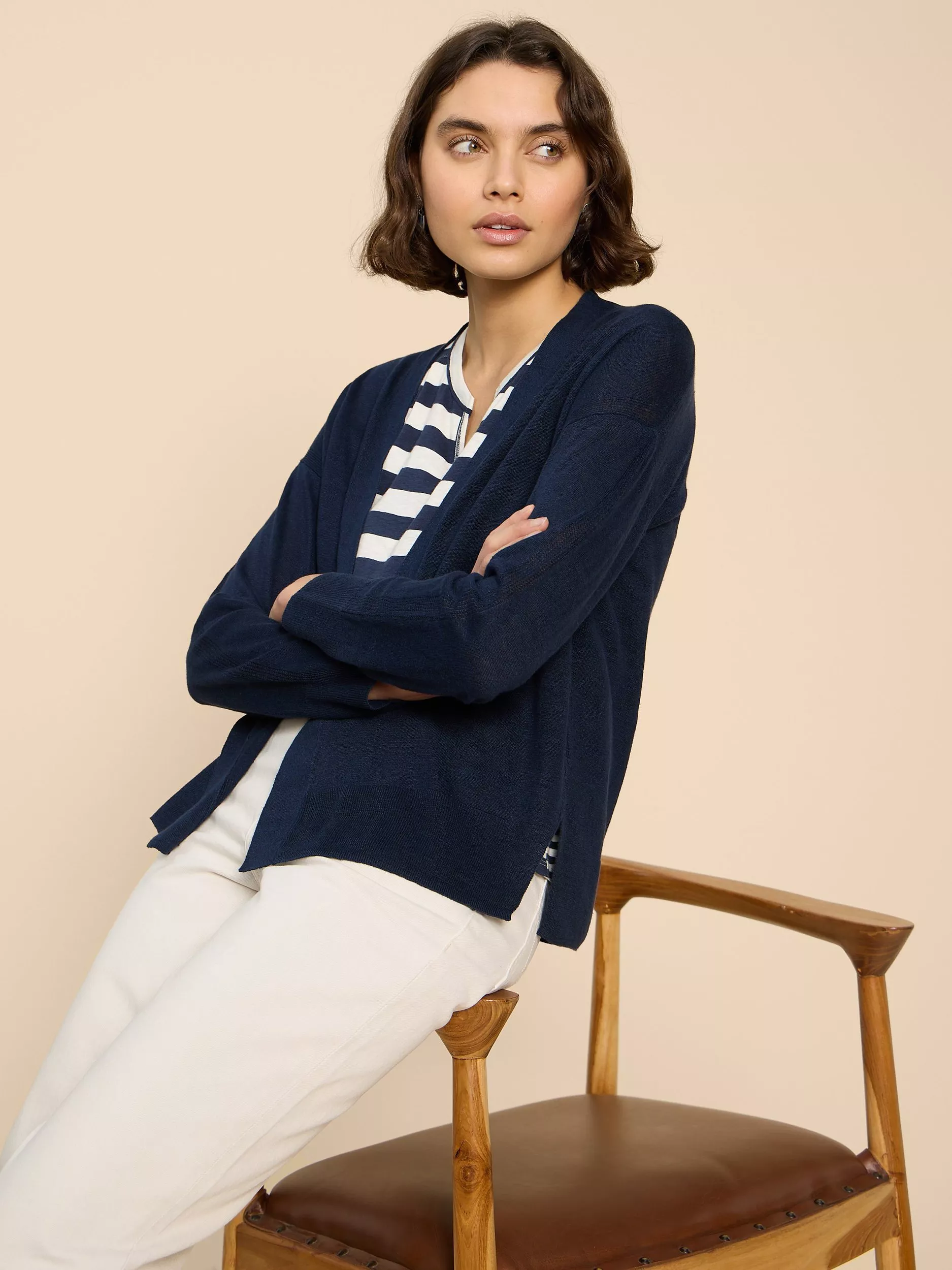 A handy layering piece for when the temperature cools, this cardigan from White Stuff sports classic stripes throughout and is made from a linen blend for comfort and durability.