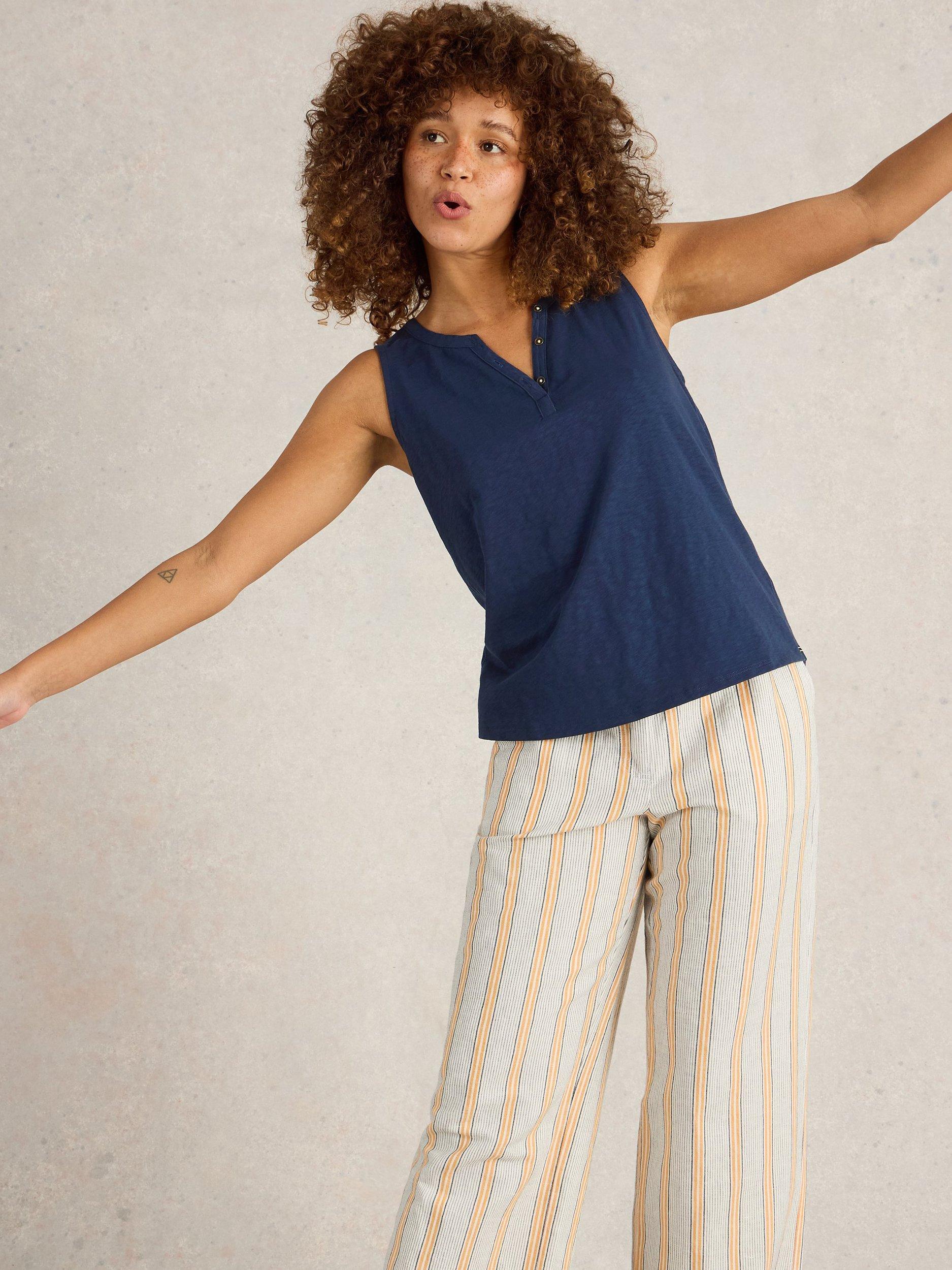 Made from soft cotton, this sleeveless vest top from White Stuff features a snap fastening detail on the front. Perfect for casual days.