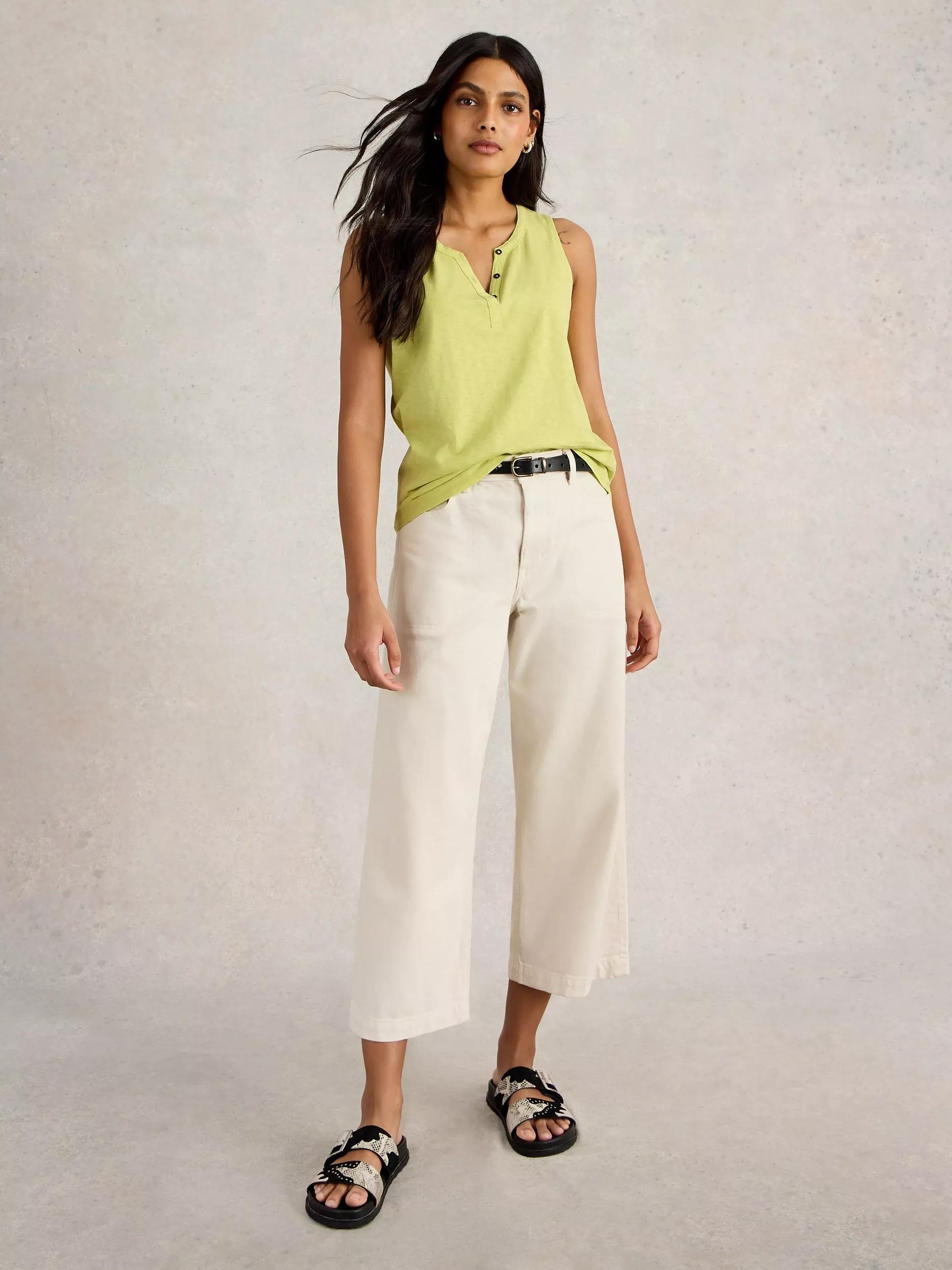 Made from soft cotton, this sleeveless vest top from White Stuff features a snap fastening detail on the front. Perfect for casual days.