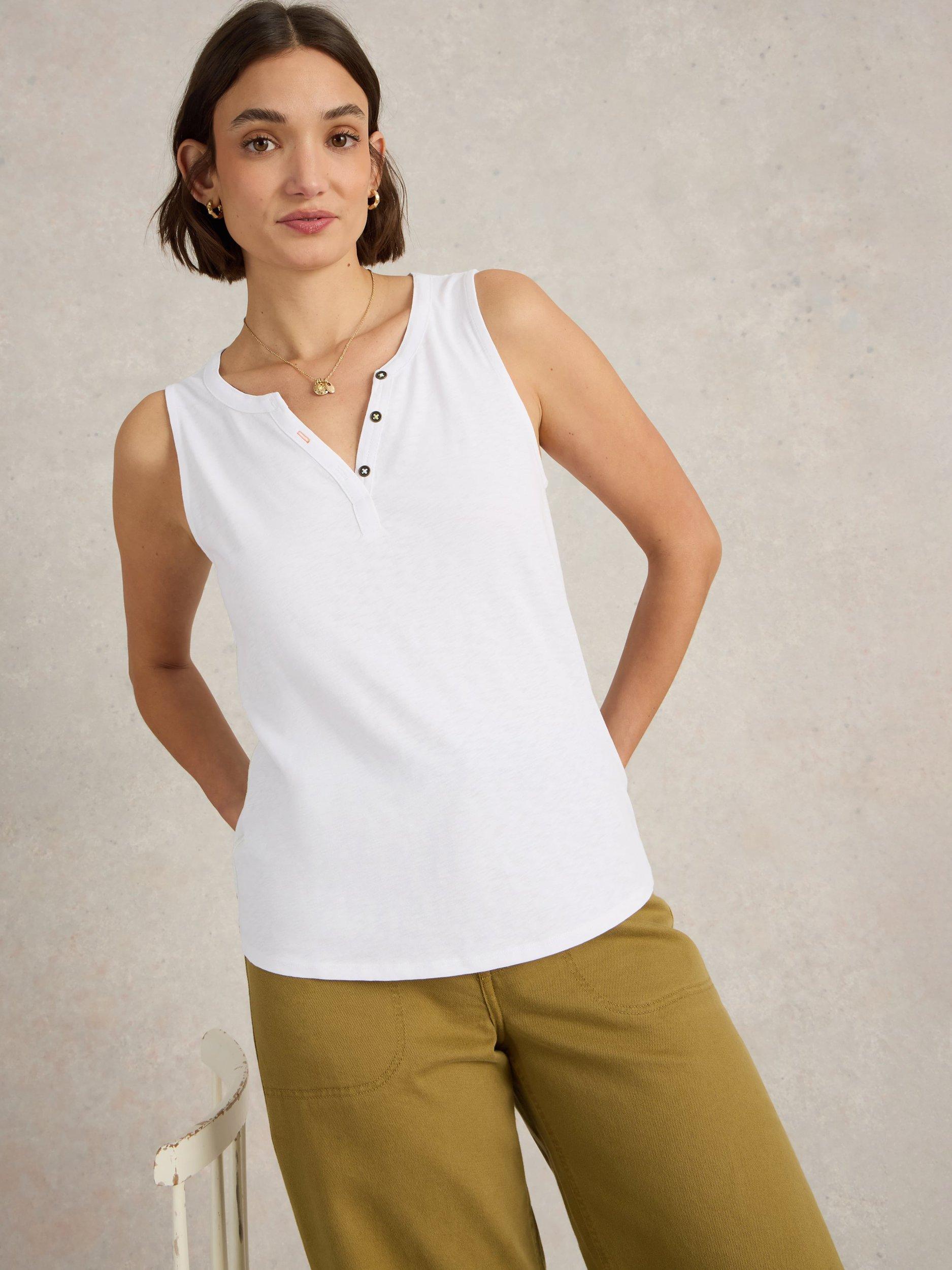 Made from soft cotton, this sleeveless vest top from White Stuff features a snap fastening detail on the front. Perfect for casual days.