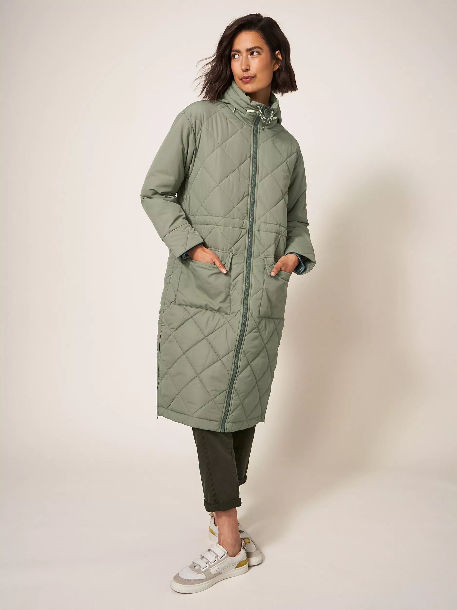 Equipped for the great outdoors, this quilted jacket by White Stuff streamlines the profile with its longline cut and drawcords at the waist to adjust the fit.