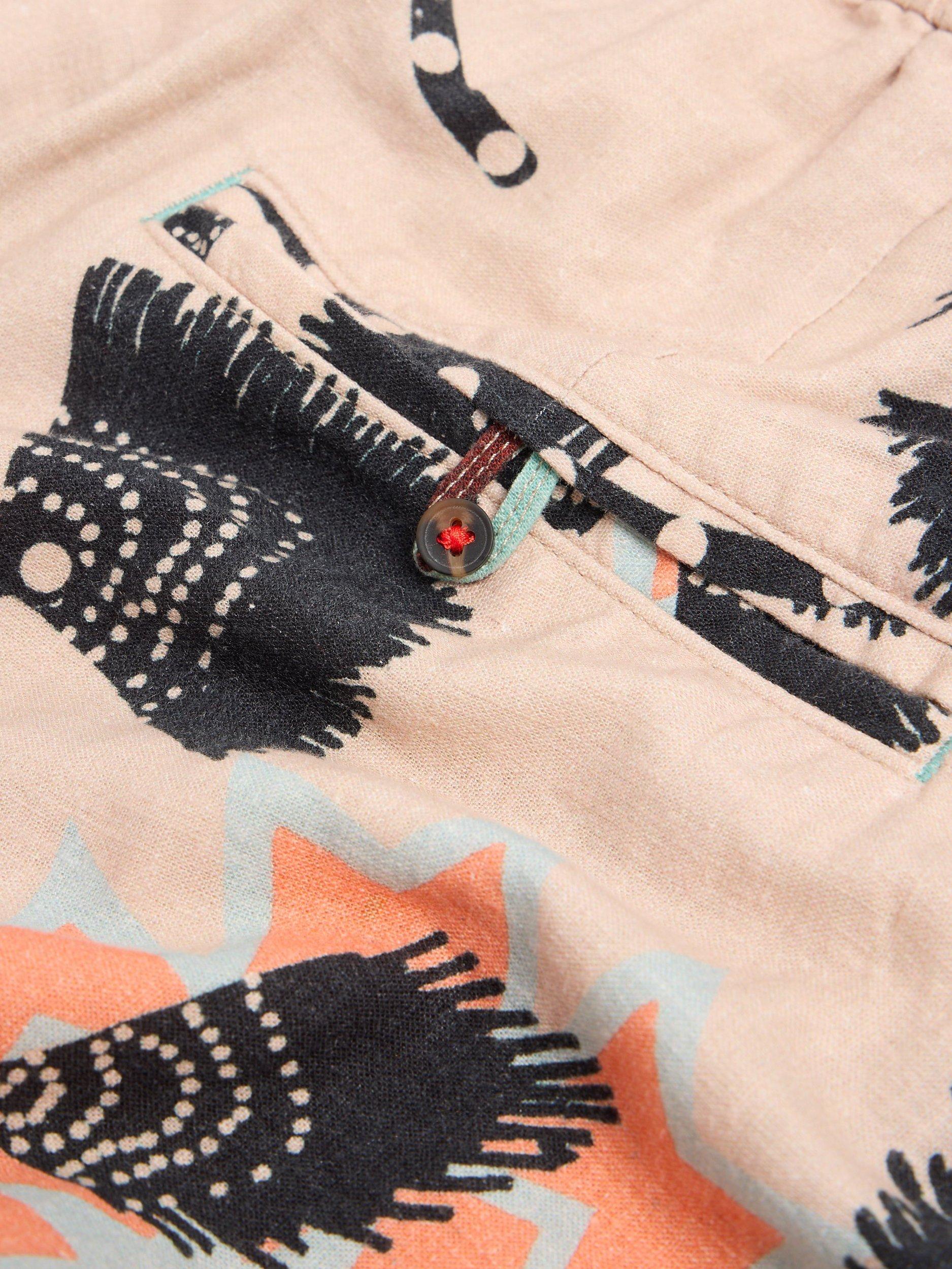 Whipped together with a lightweight linen blend, they abide by no rules with an abstract print.