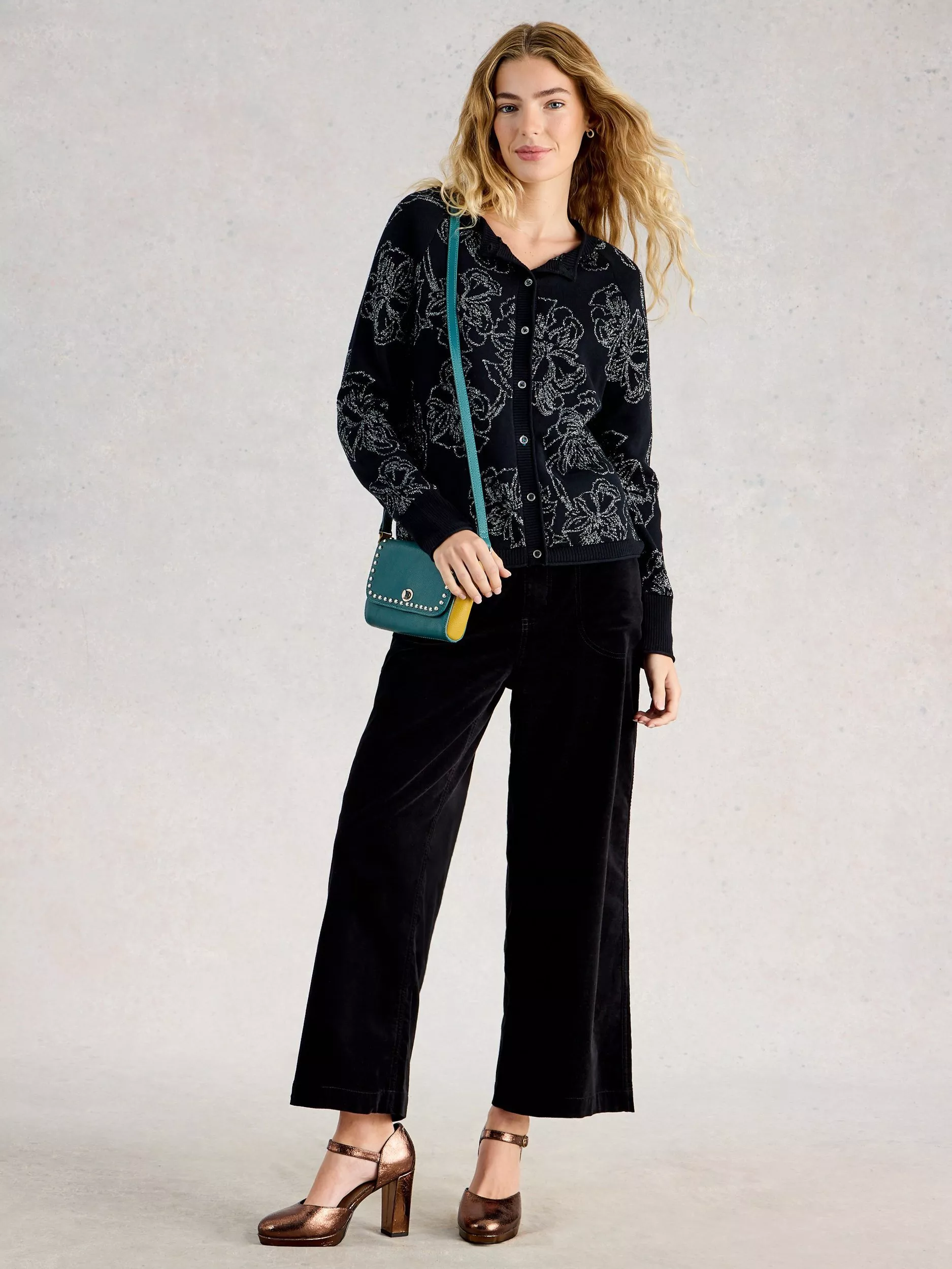 This fine-knit cardigan blends subtle metallic flowers with soft cotton. The crew neck and button fastening make layering effortless, while long sleeves keep you comfortable for work or weekends. An easy mood-lift for your everyday routine.