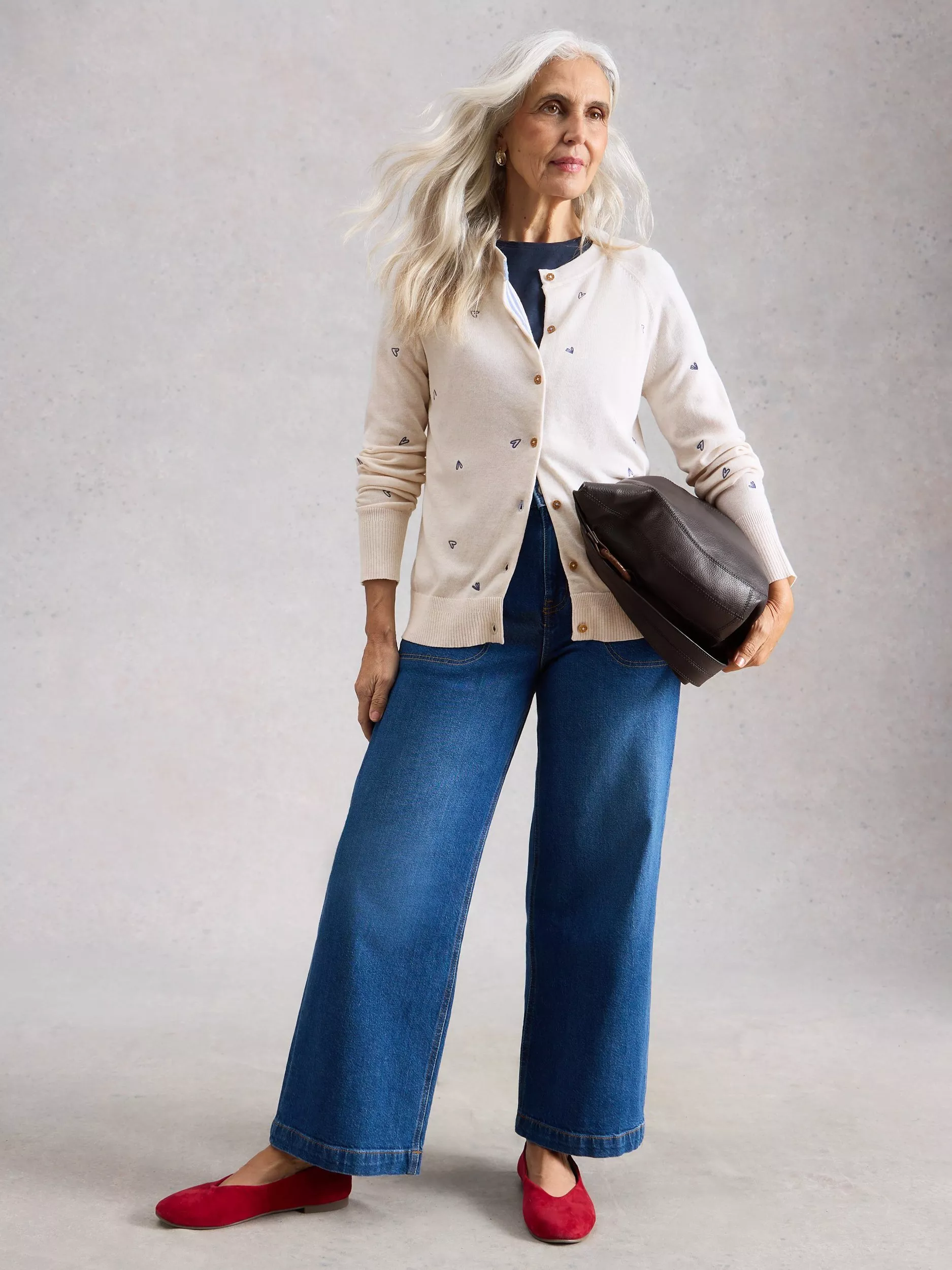 White StuffLulu Hearts Wool Blend Cardigan, White