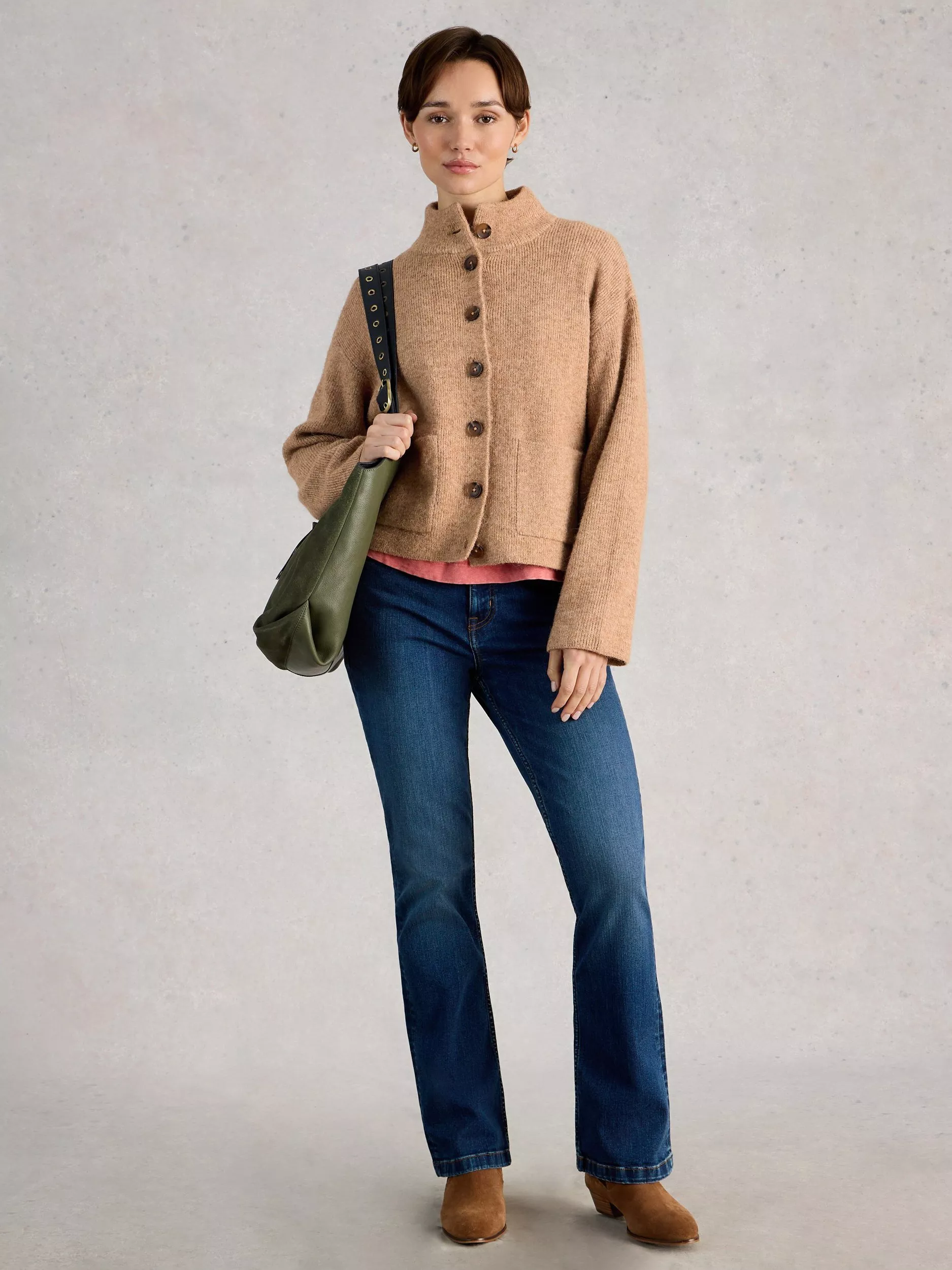 White StuffMargot High Neck Cardigan, Brown