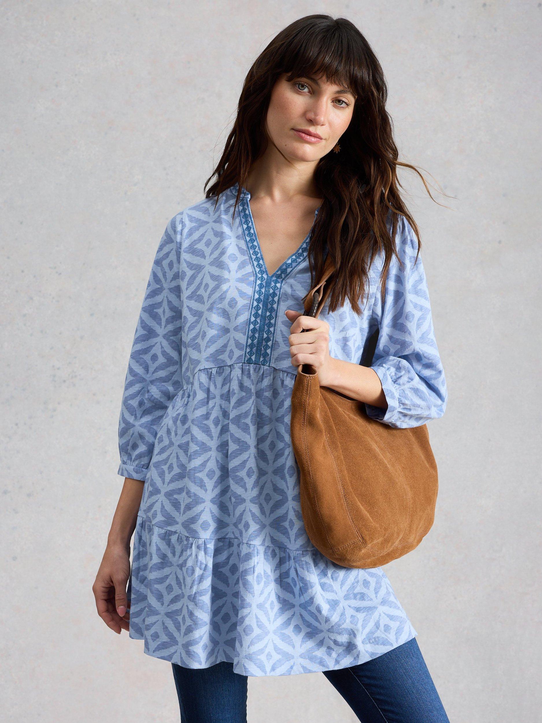 White StuffMarta Geometric Tunic Top, Pale Blue
