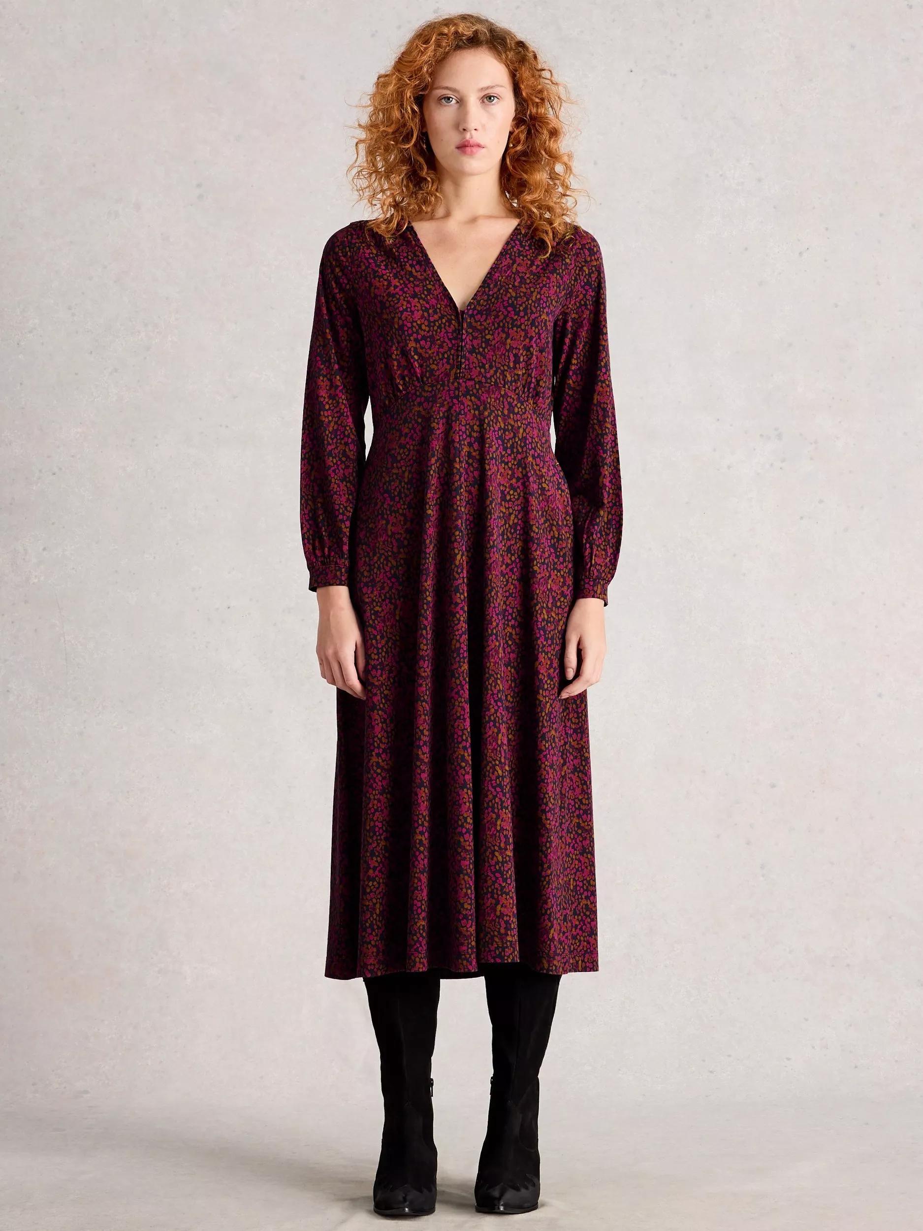 A spot-patterned midi dress. Its V-neck and relaxed A-line fit bring ease to your day, while lightweight fabric ensures comfort. Smart details make it ideal for wherever your plans take you.