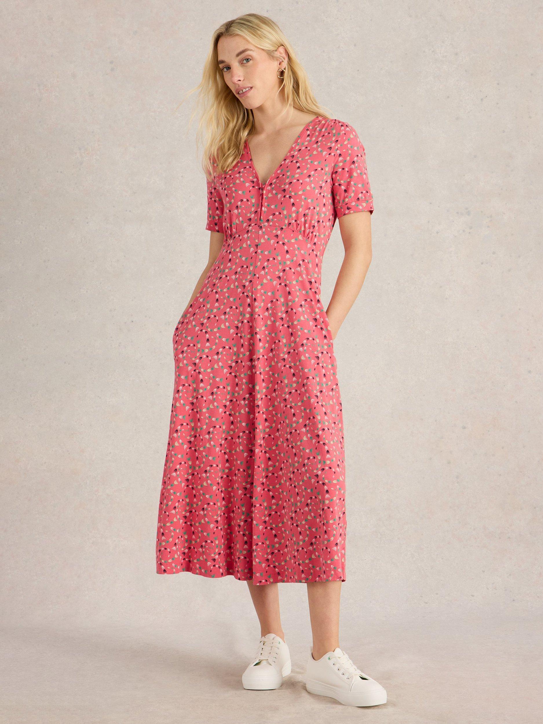 A tried-and-tested classic, this floor-length dress from White Stuff is blended with cotton. Effortlessly flattering thanks to a fuss-free v-neckline and short sleeves, this style receives a vibrant update with the help of an abstract print.