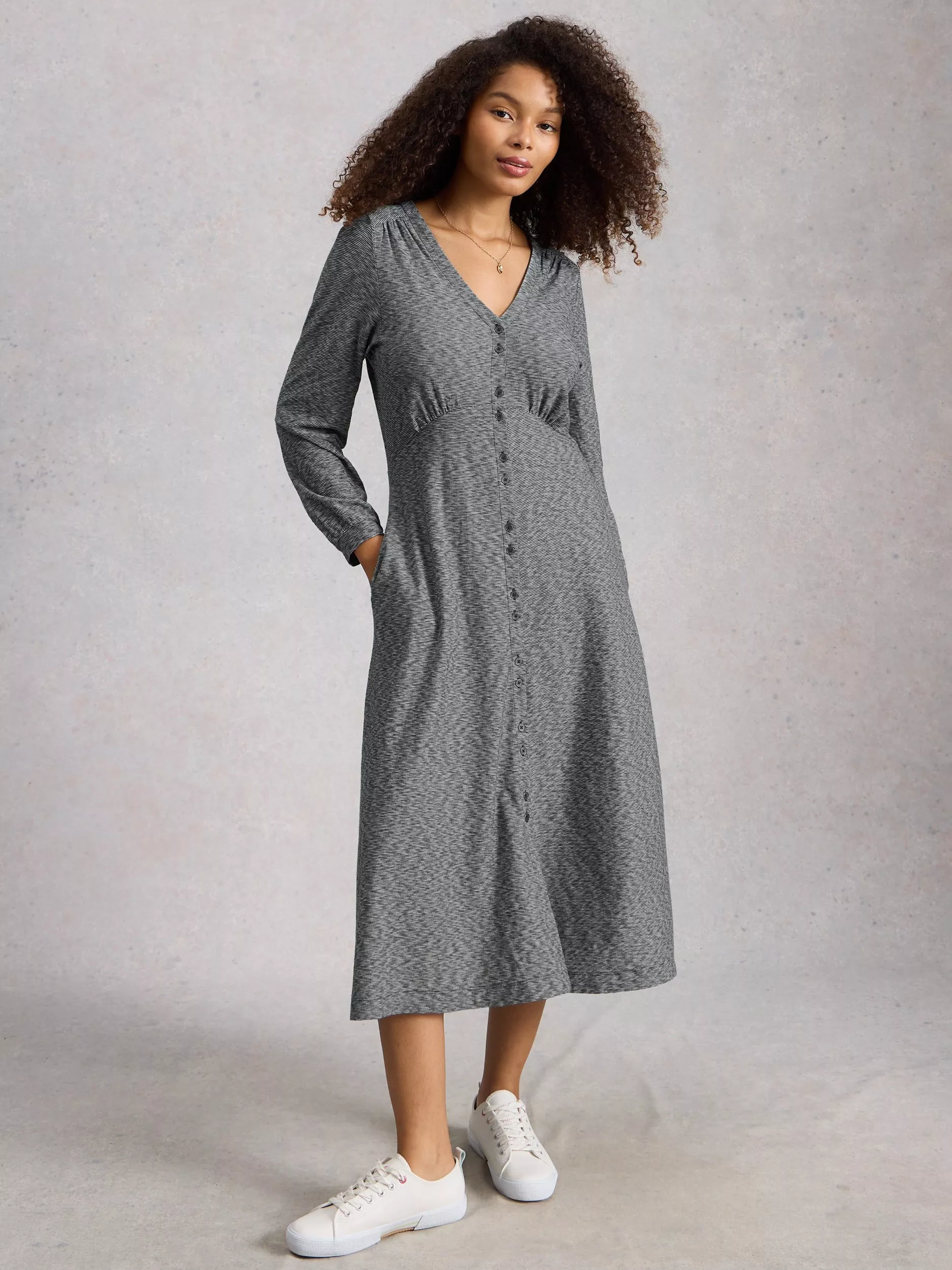 Designed with buttons all the way through the front, this comfy dress can be styled multiple ways. The v-neckline and empire line flatter your shape while side pockets add that all-important practical touch.