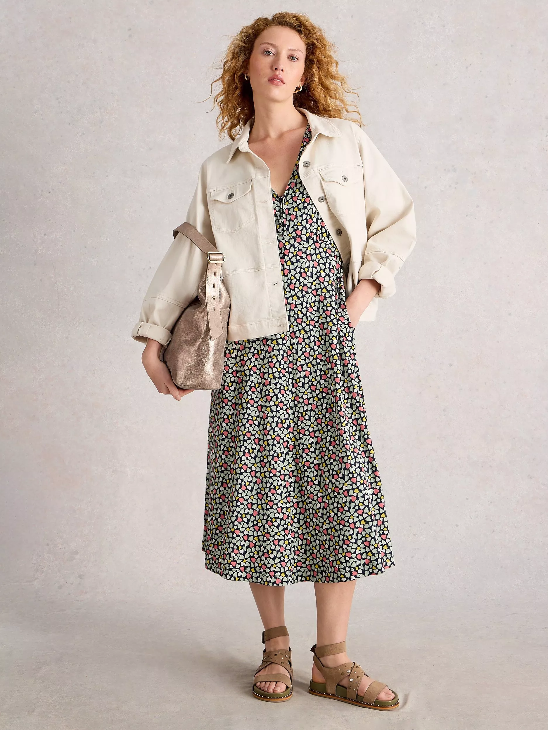 Flattering in all the right places, this mid-length dress from White Stuff is crafted from a breathable cotton blend. With a universally flattering v-neckline and short sleeves, this style is offered with a sweet heart pattern all-over.