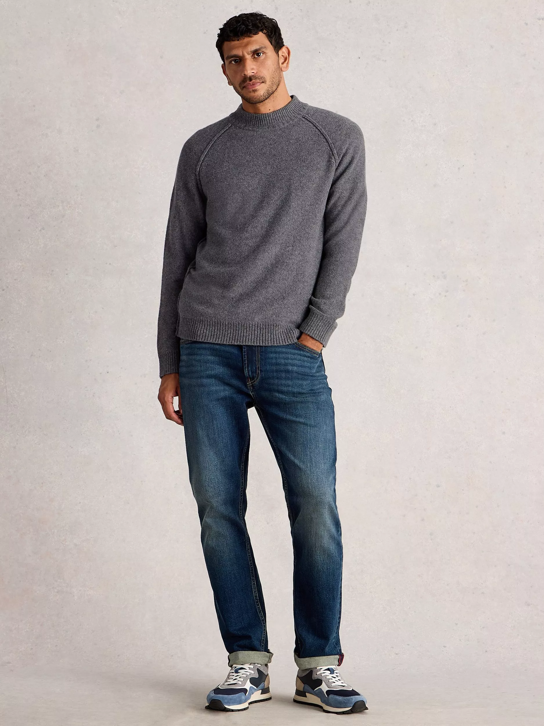 This regular-cut lambswool blend jumper keeps you warm without weighing you down. Its crew neck and plain design suit any mood, whether you’re layering for work or relaxing with friends. Designed for everyday comfort and lasting value.
