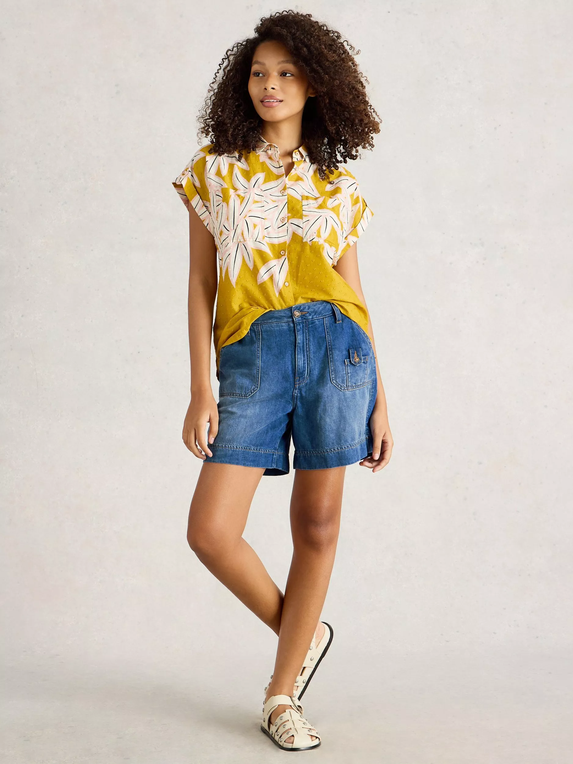 White StuffMollie Combat Denim Shorts, Dark Blue