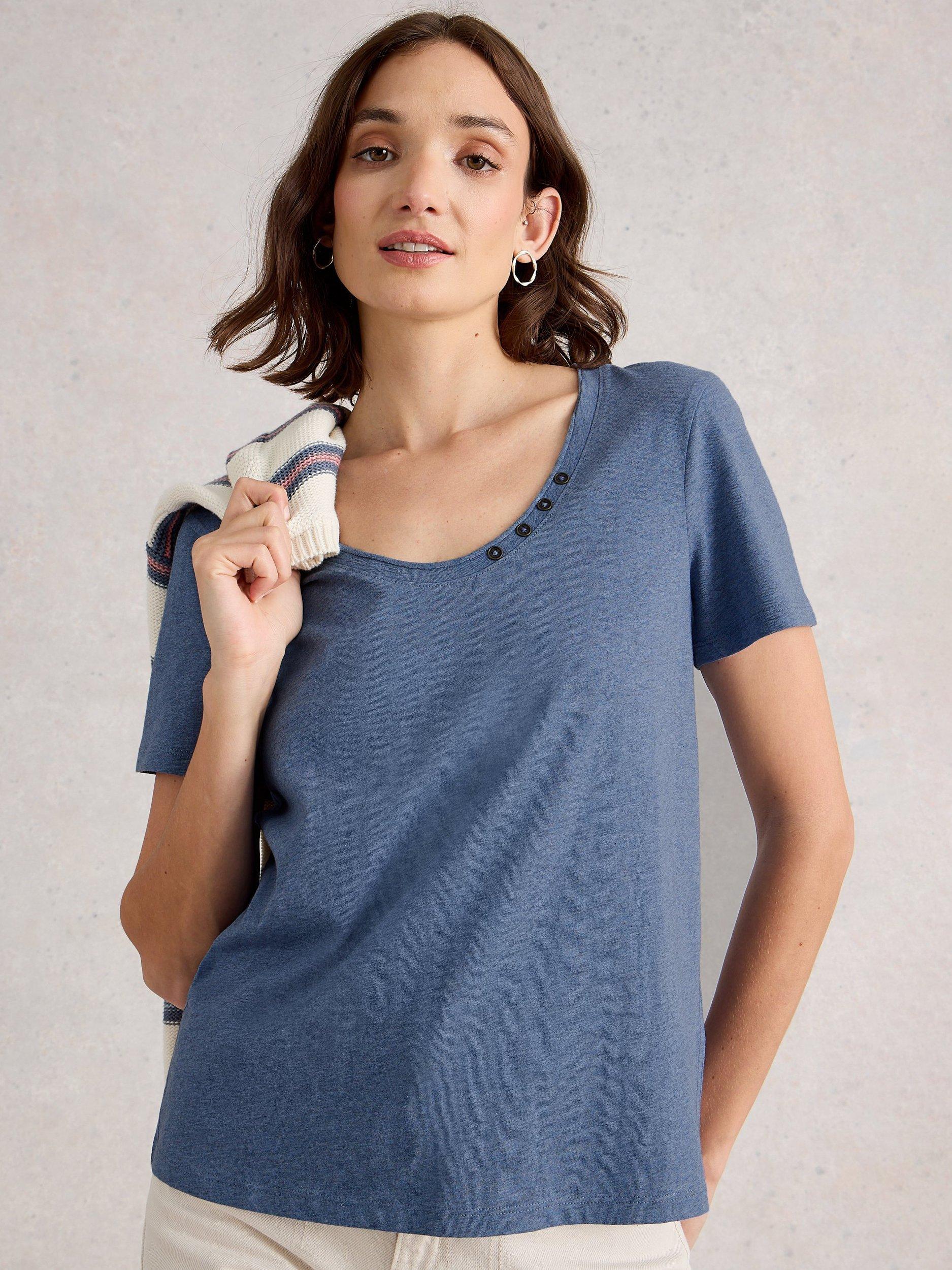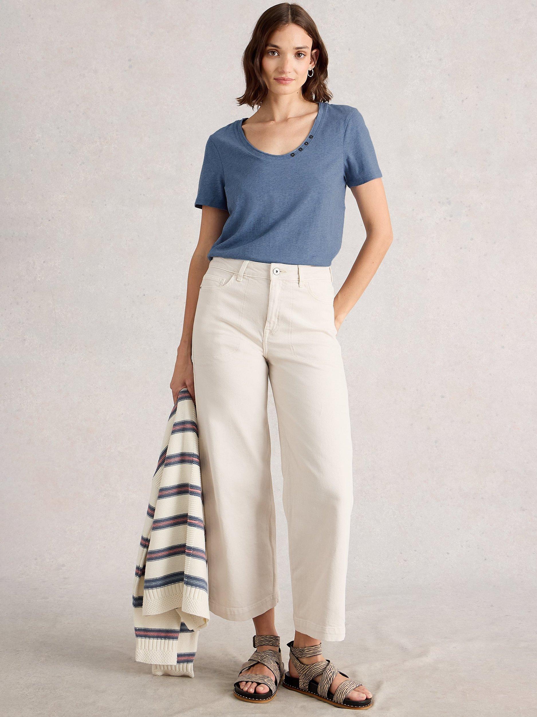 The White Stuff organic cotton T-shirt brings everyday ease, with a soft scoop neck and relaxed short sleeves for all-day comfort. Pairs effortlessly with your favourite jeans or skirt, offering simple style with a touch of personality.