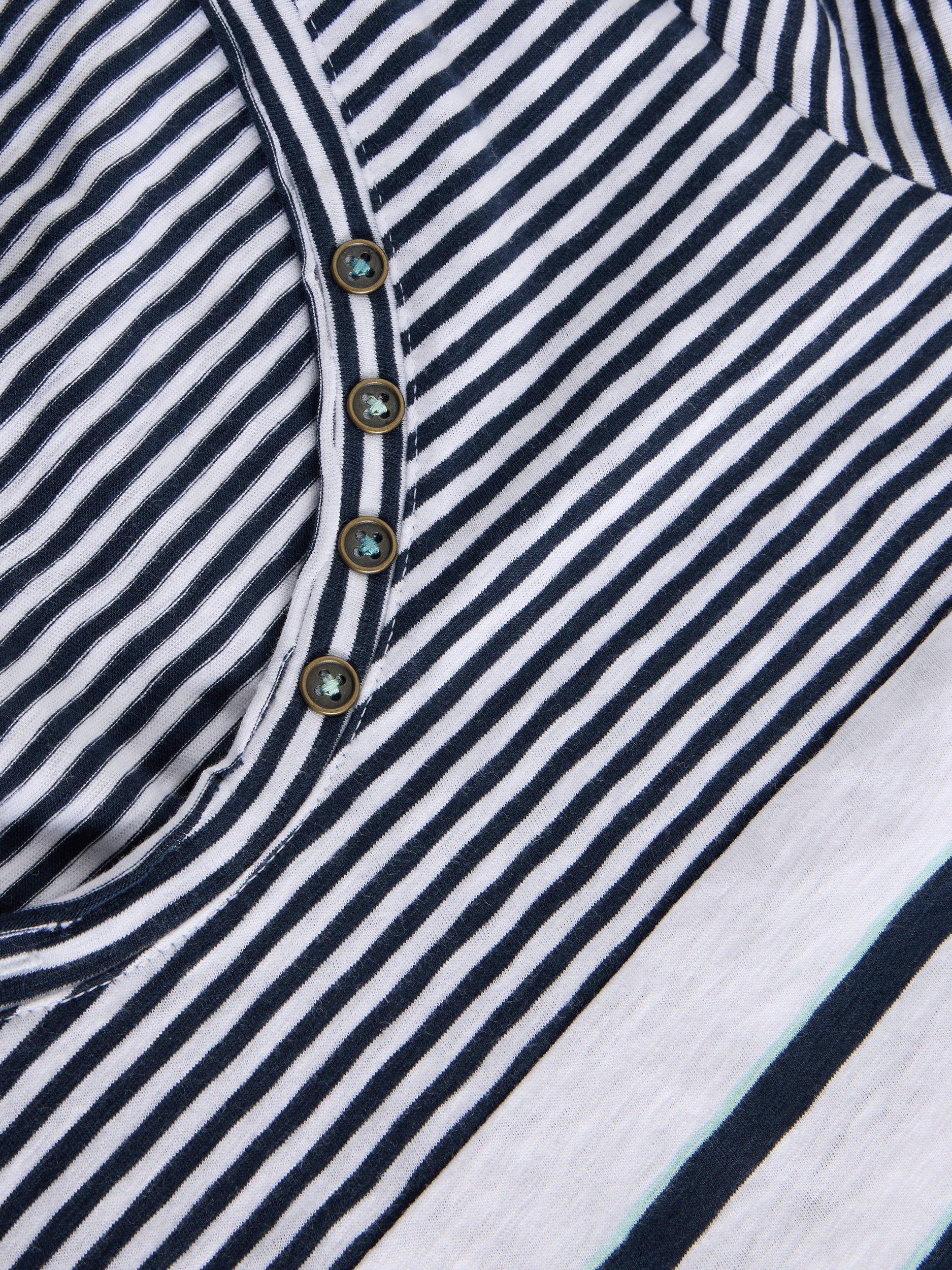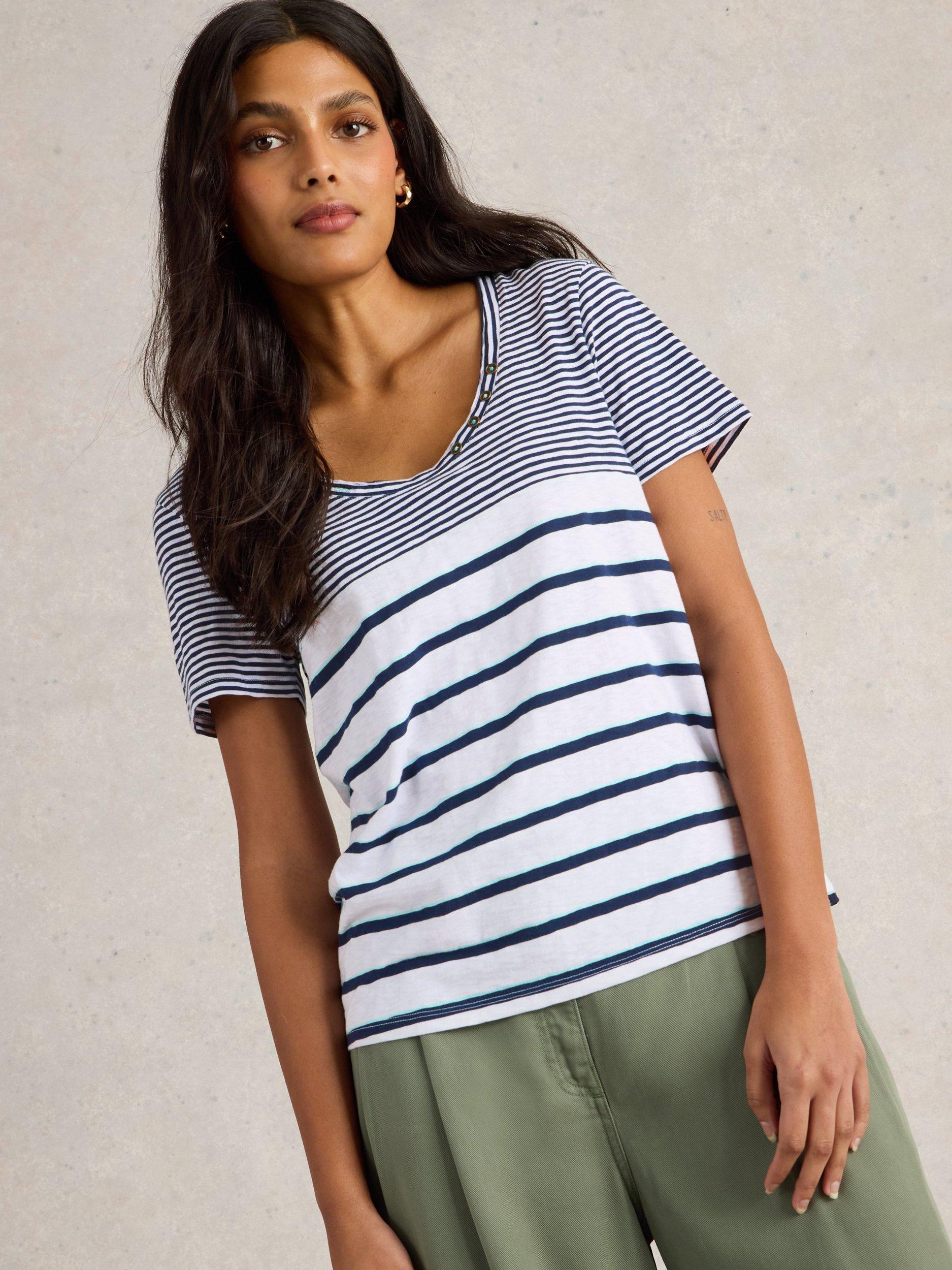 A short sleeve tee with snap fastening detail on the neckline.