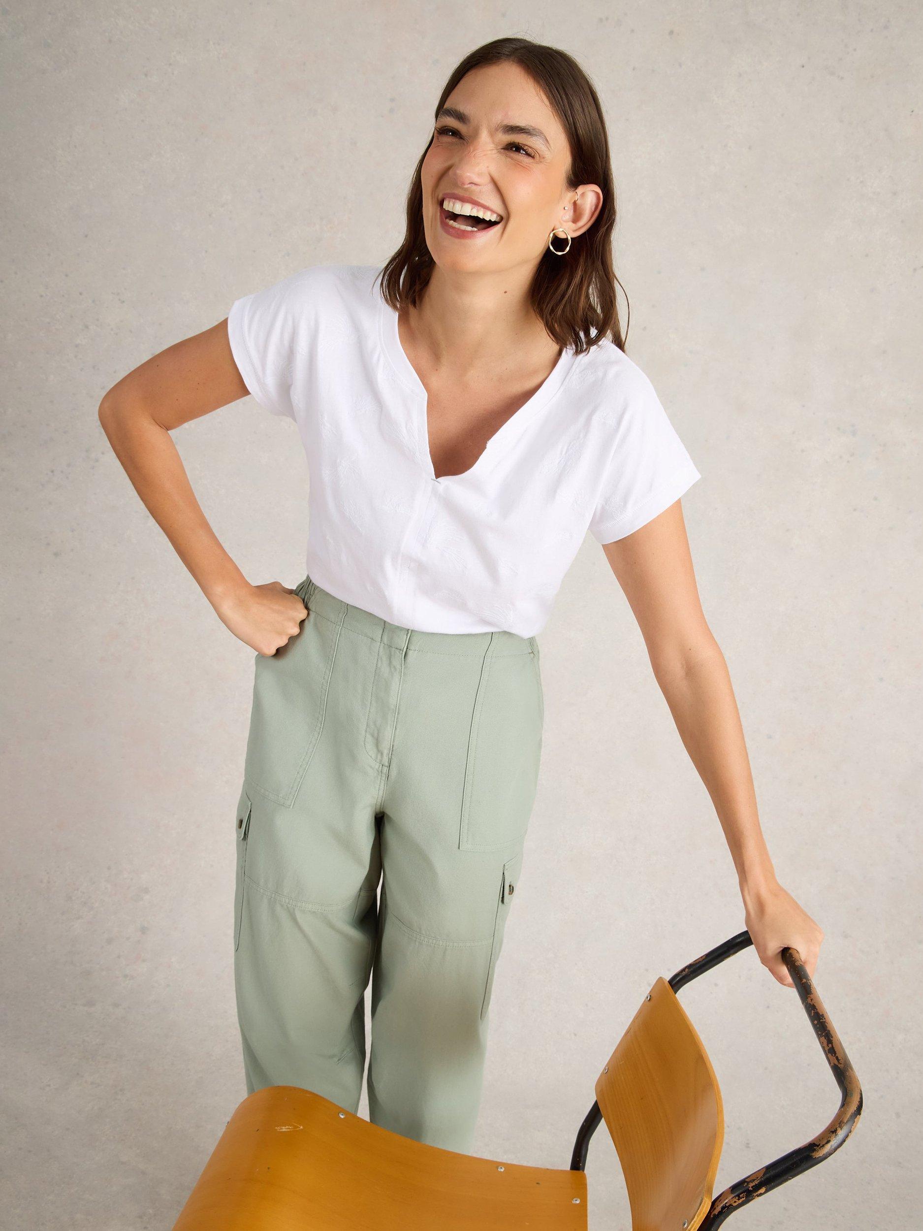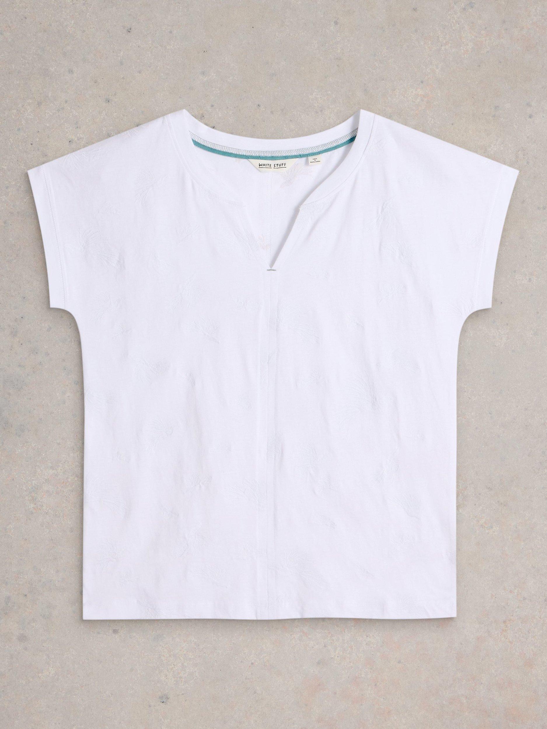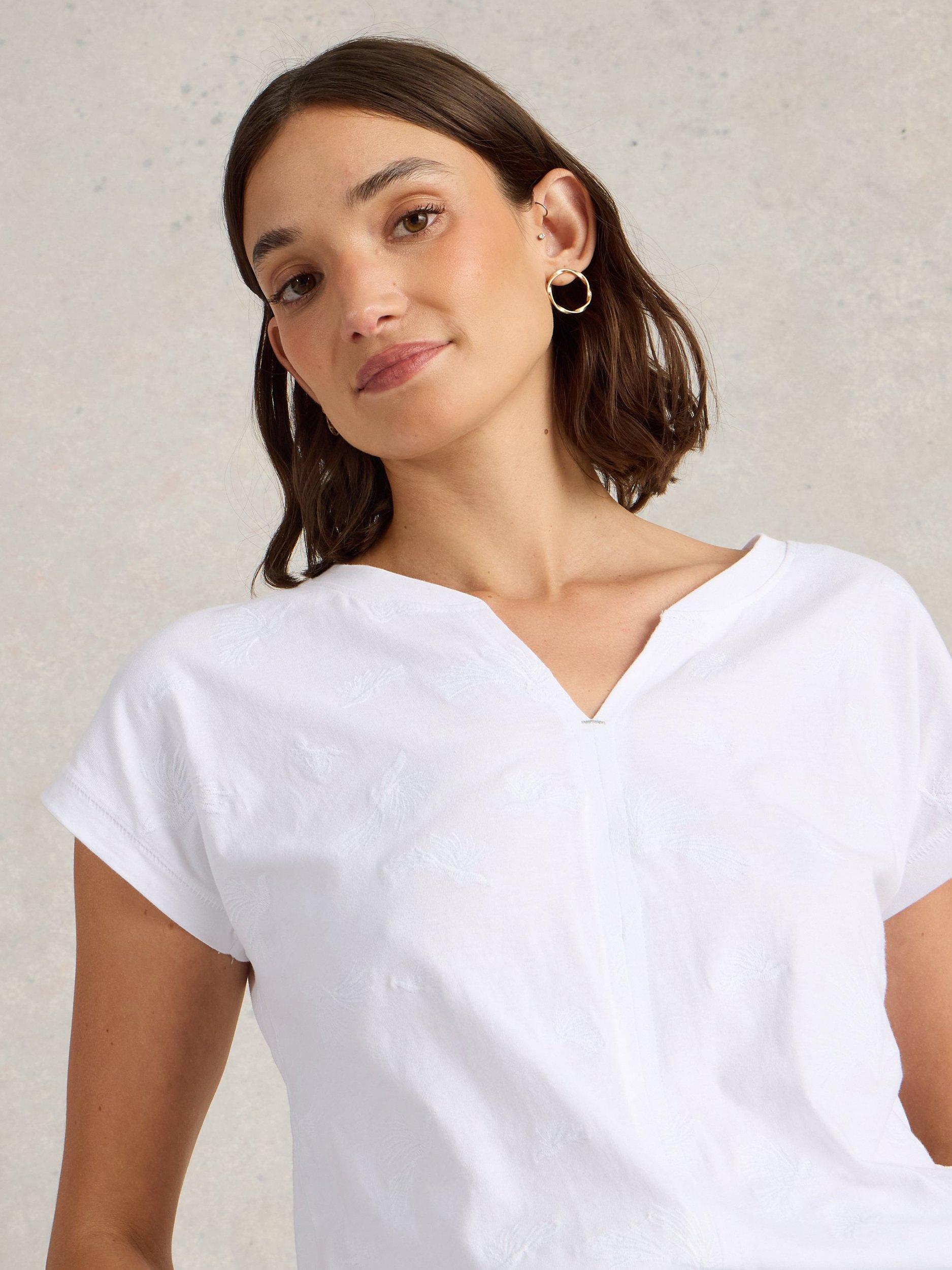 A casual short-sleeve t-shirt, crafted from breezy embroidered cotton with a notch neckline.