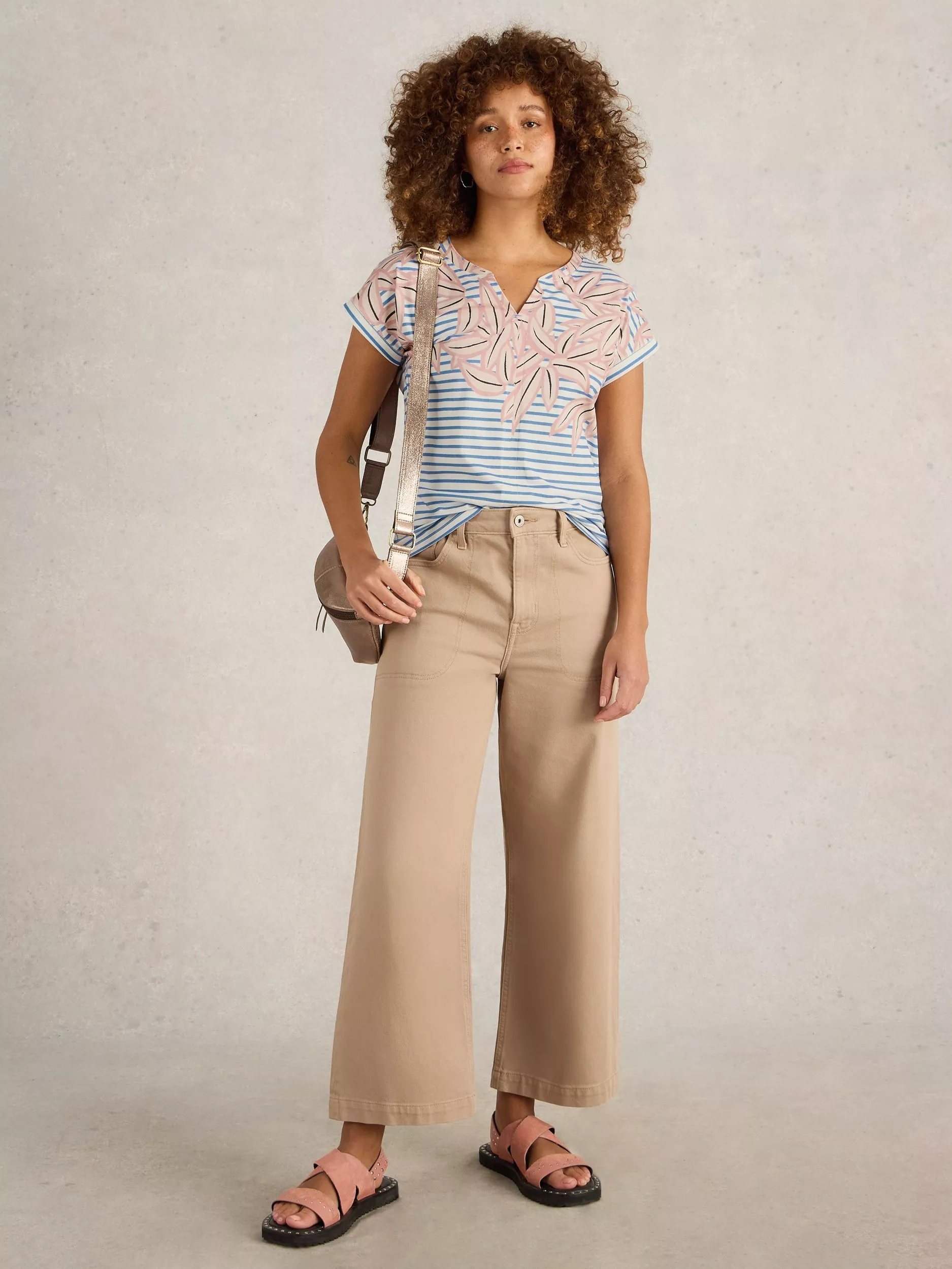 Bolstering your daytime collection, this t-shirt by White Stuff combines leaves and stripes for a unique print. Cut with a notch v-neck and short sleeves, it offers a soft feel thanks to its cotton blend and is an easy daytime option.