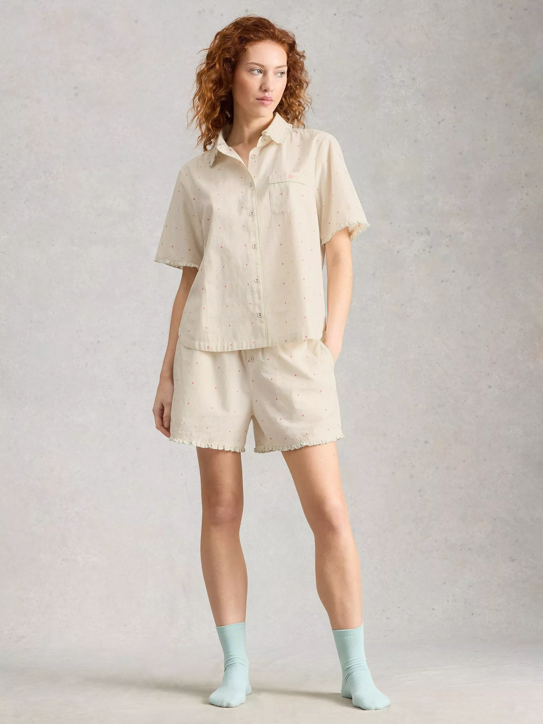 Drift into comfort with these spotty pyjama shorts, crafted from soft cotton. The relaxed fit and gentle fabric keep you cosy while you unwind, making bedtime your favourite part of the day.