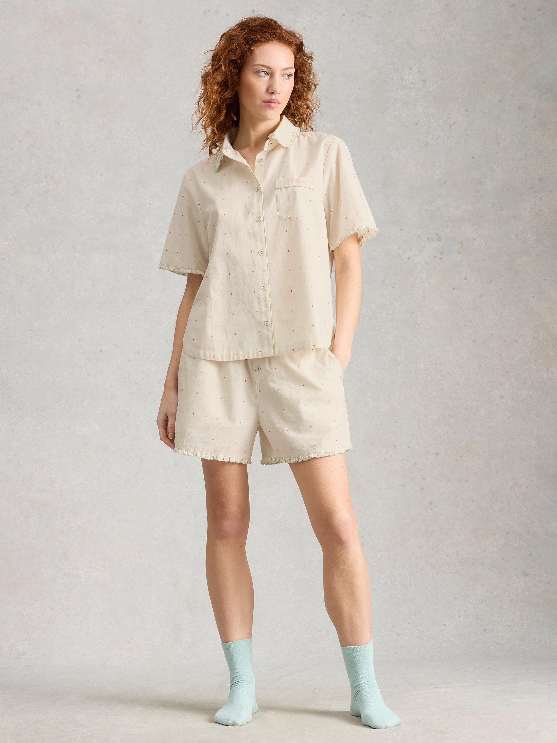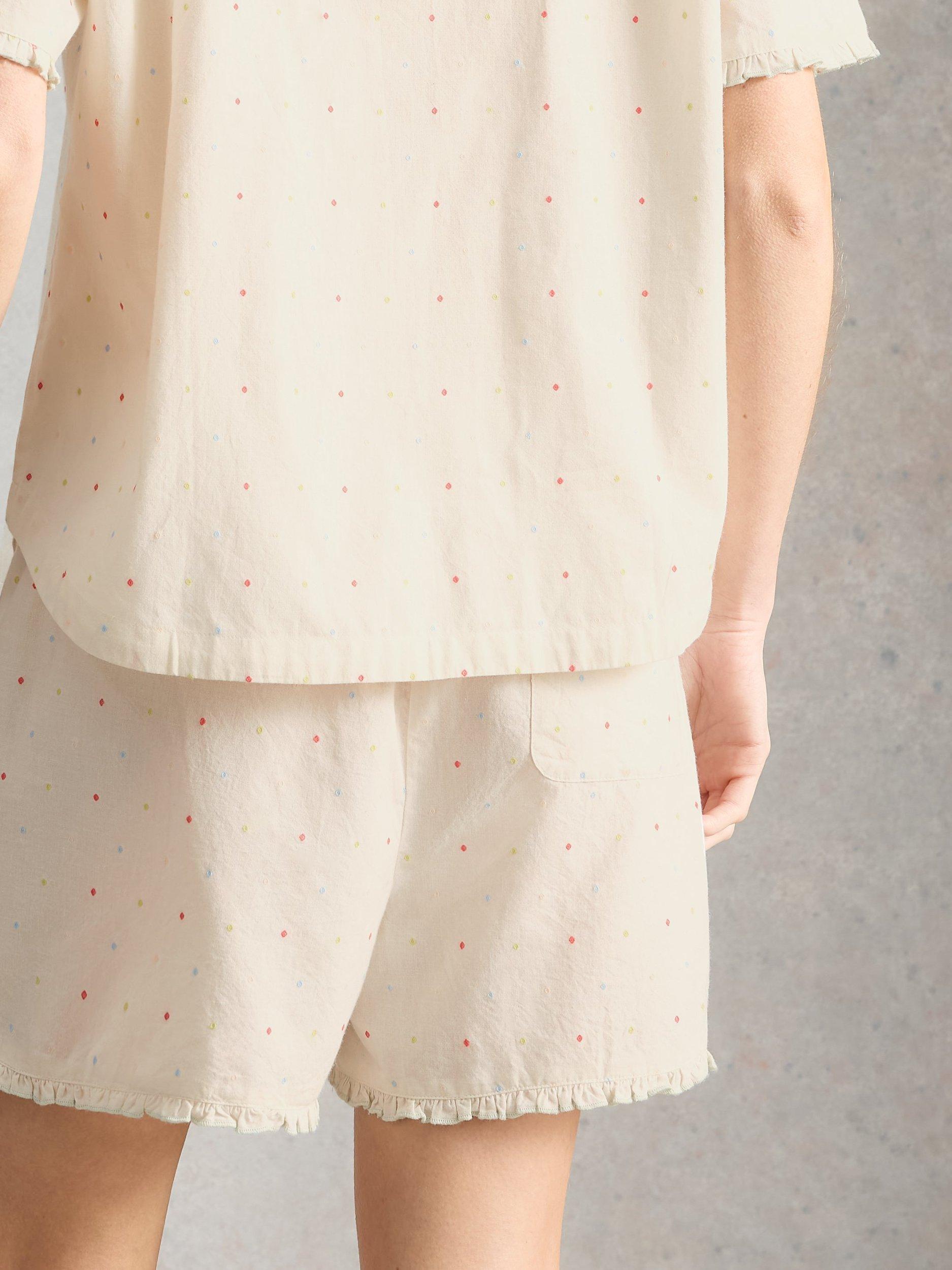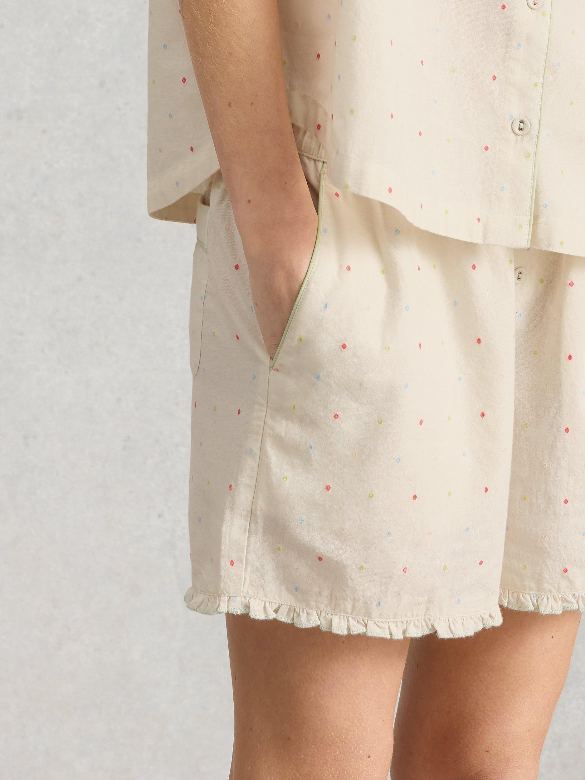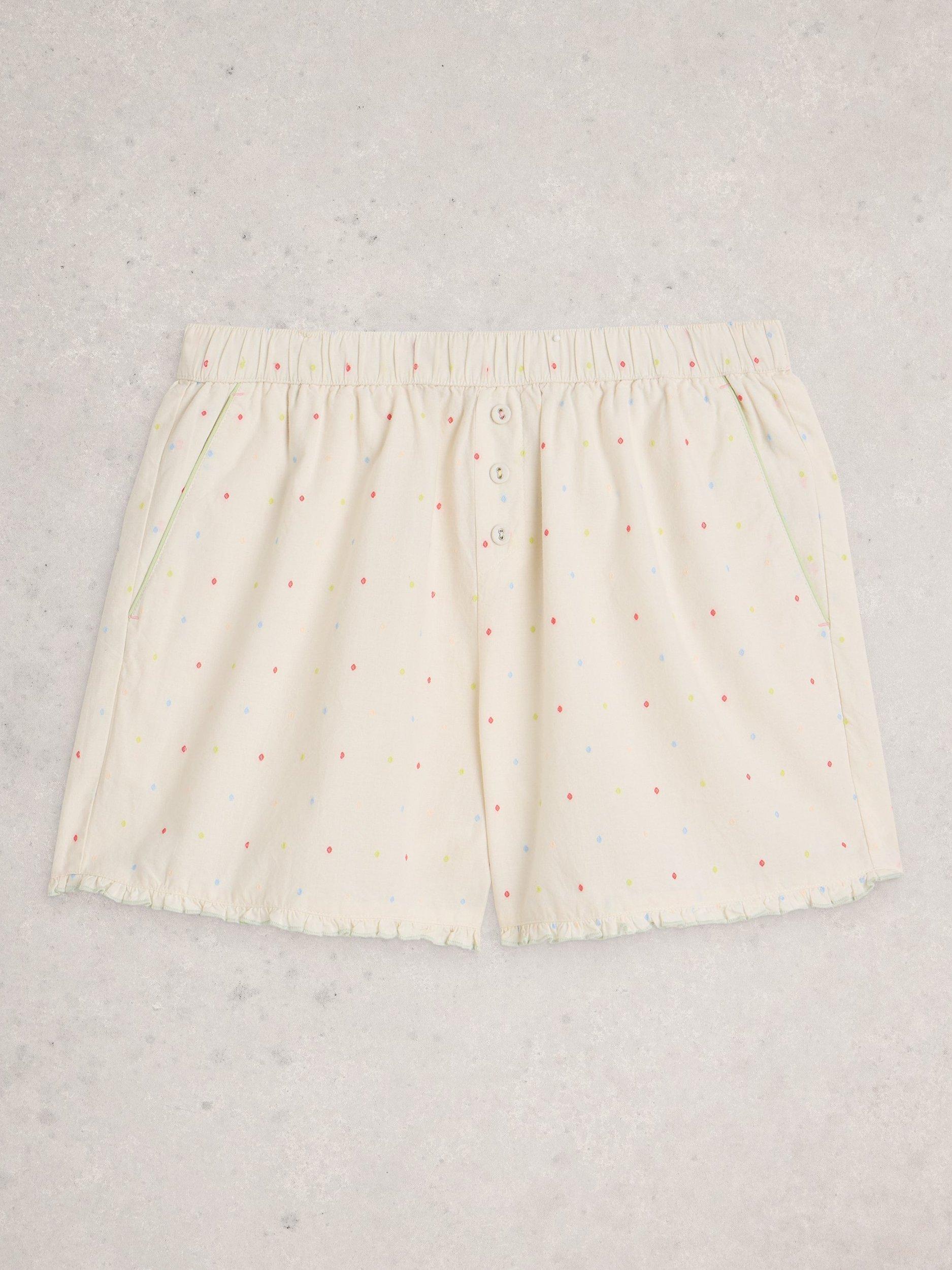 White StuffNelly Mini Polka Dot Pyjama Shorts, White Ivory