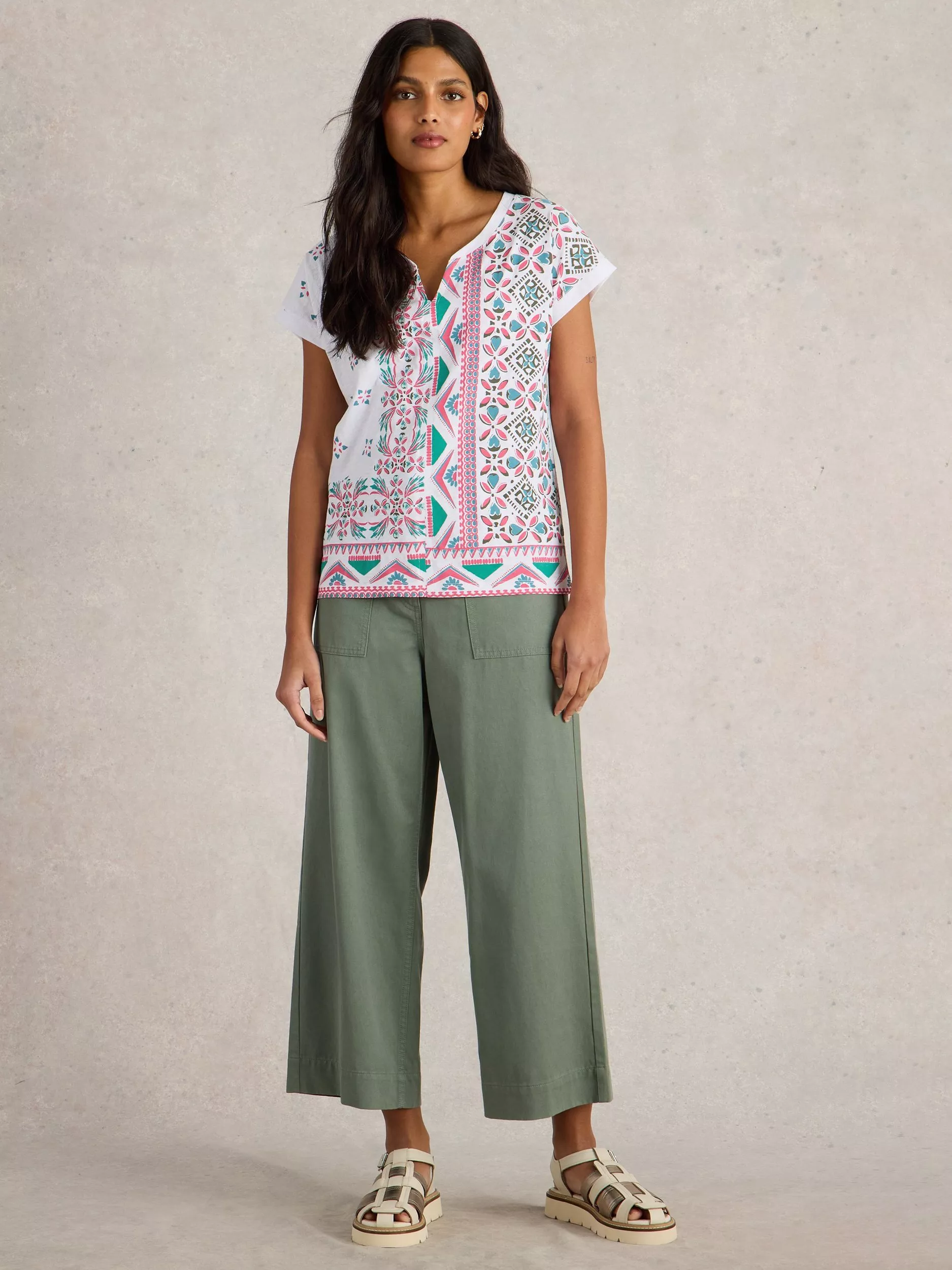 White StuffNelly Mixed Print Notch Neck T-Shirt, White Pr