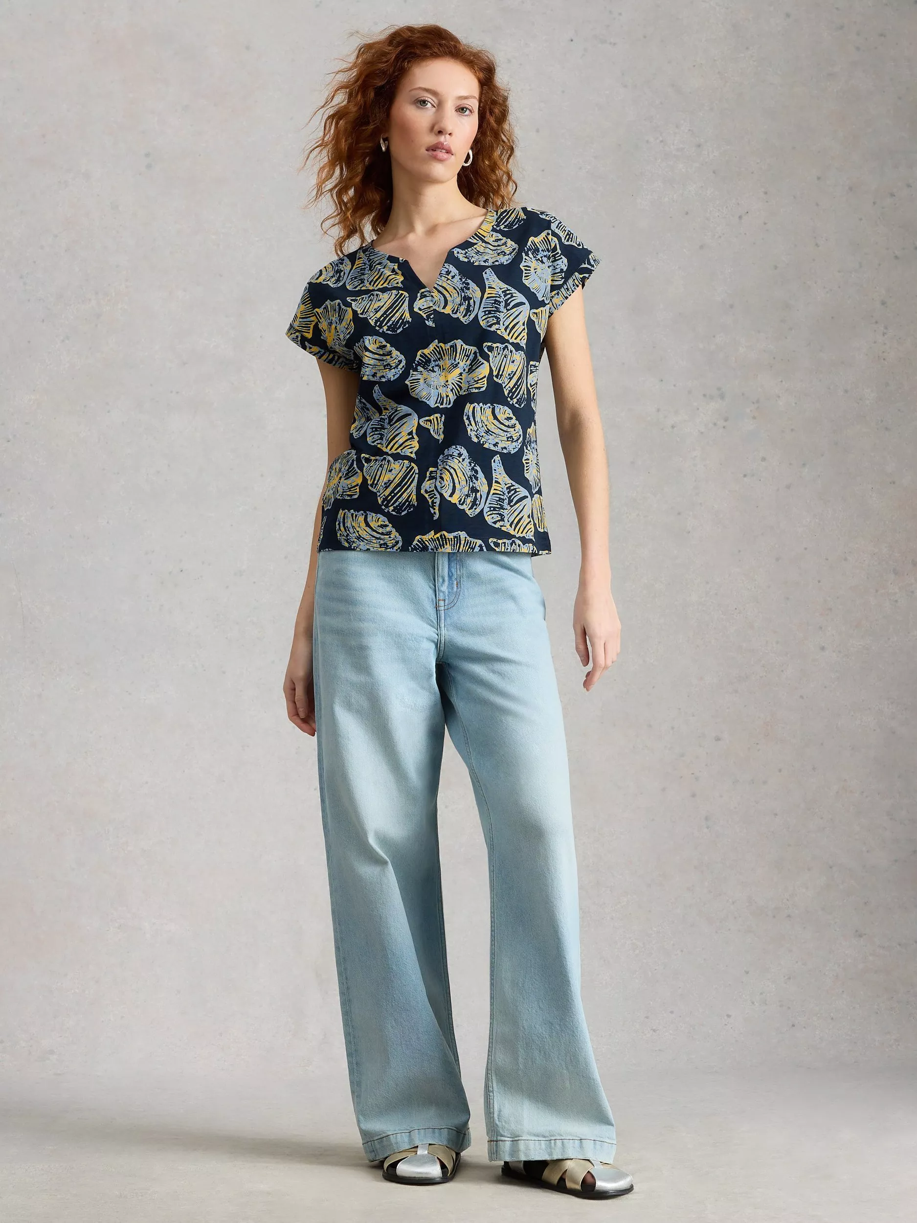 A T-shirt from White Stuff that's light and breathable in cotton. Featuring a notch V-neck and short sleeves, it's designed with an abstract print. Effortless style for daily dressing.