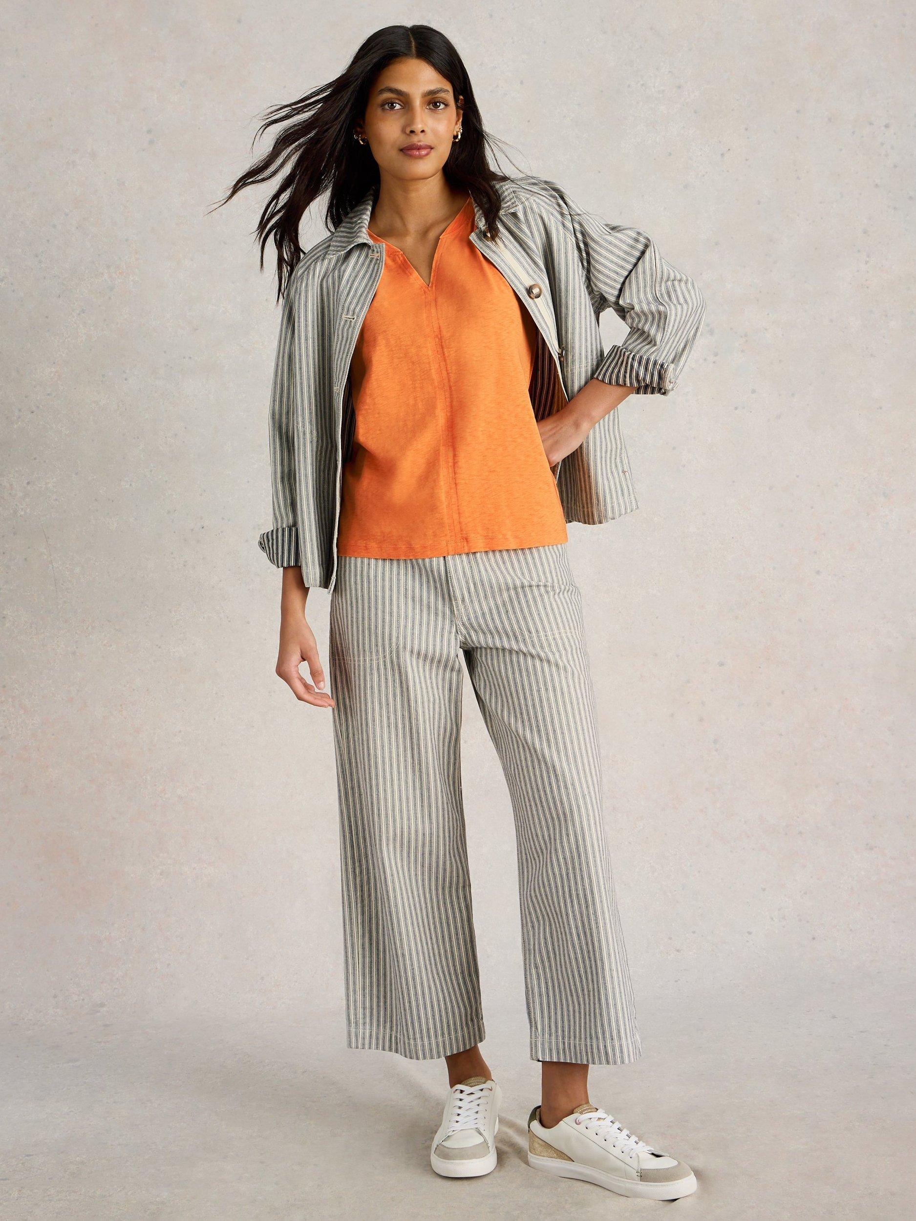 White StuffNelly Notch Neck T-Shirt, Mid Orange
