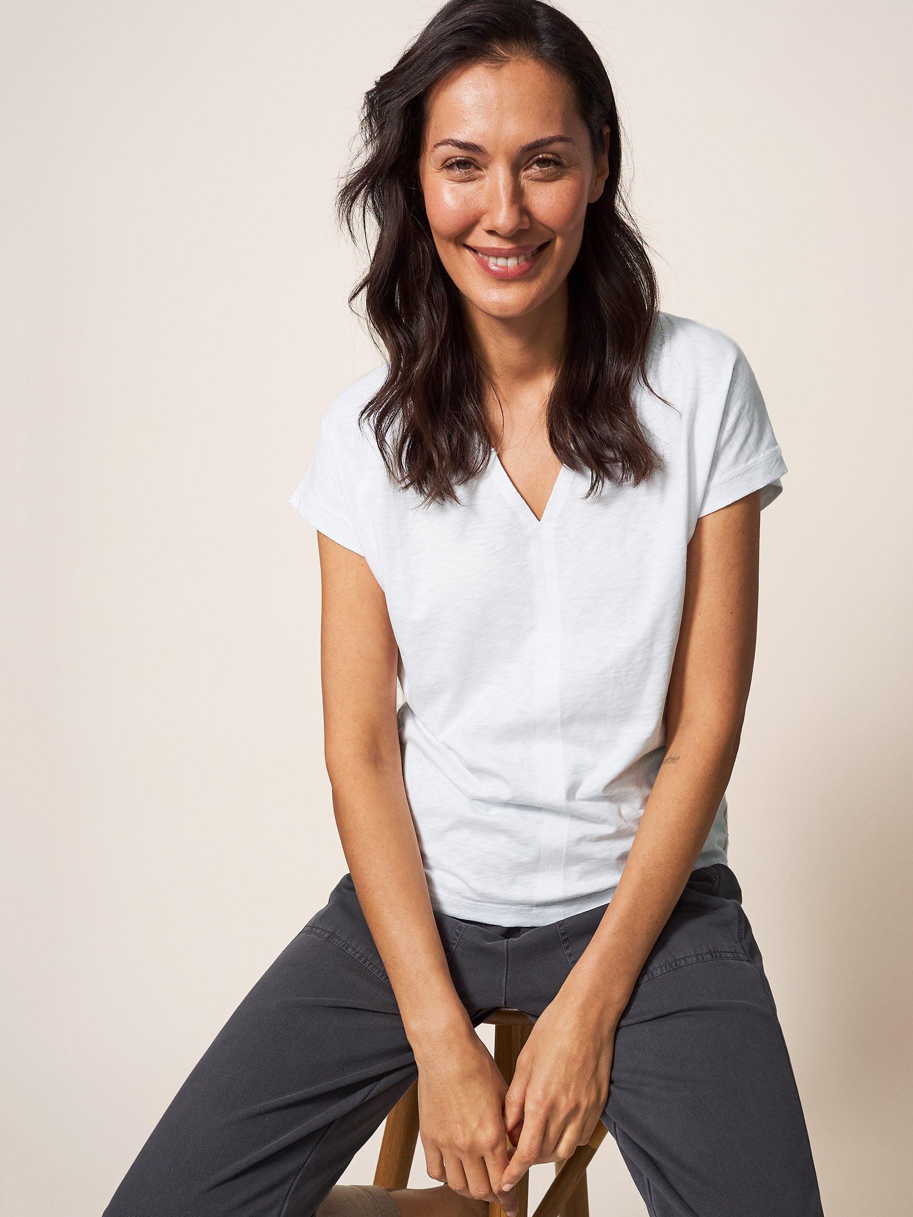 With a flattering v-neckline and cap sleeves, it's made from organic cotton making it naturally soft and breathable and will slot seamlessly into your everyday staples.