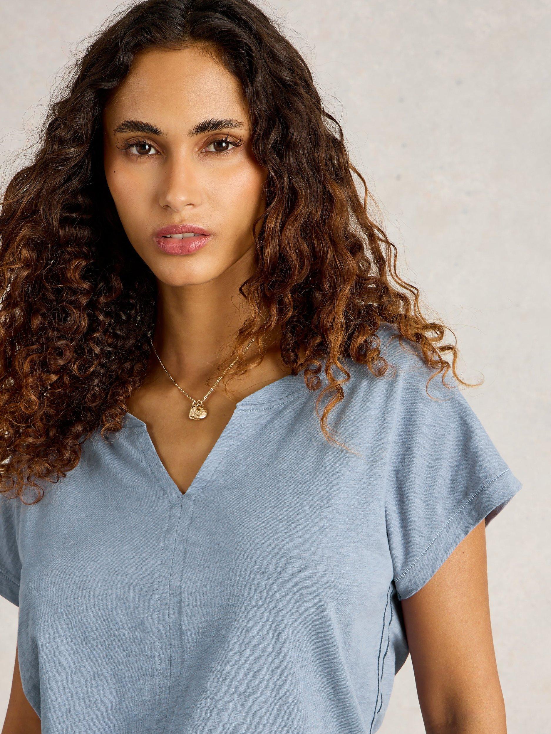 A solo piece or layering staple, this t-shirt by White Stuff is plain for easy mixing and matching. Framed with a notch v-neckline and short sleeves, it is made from a soft cotton blend.