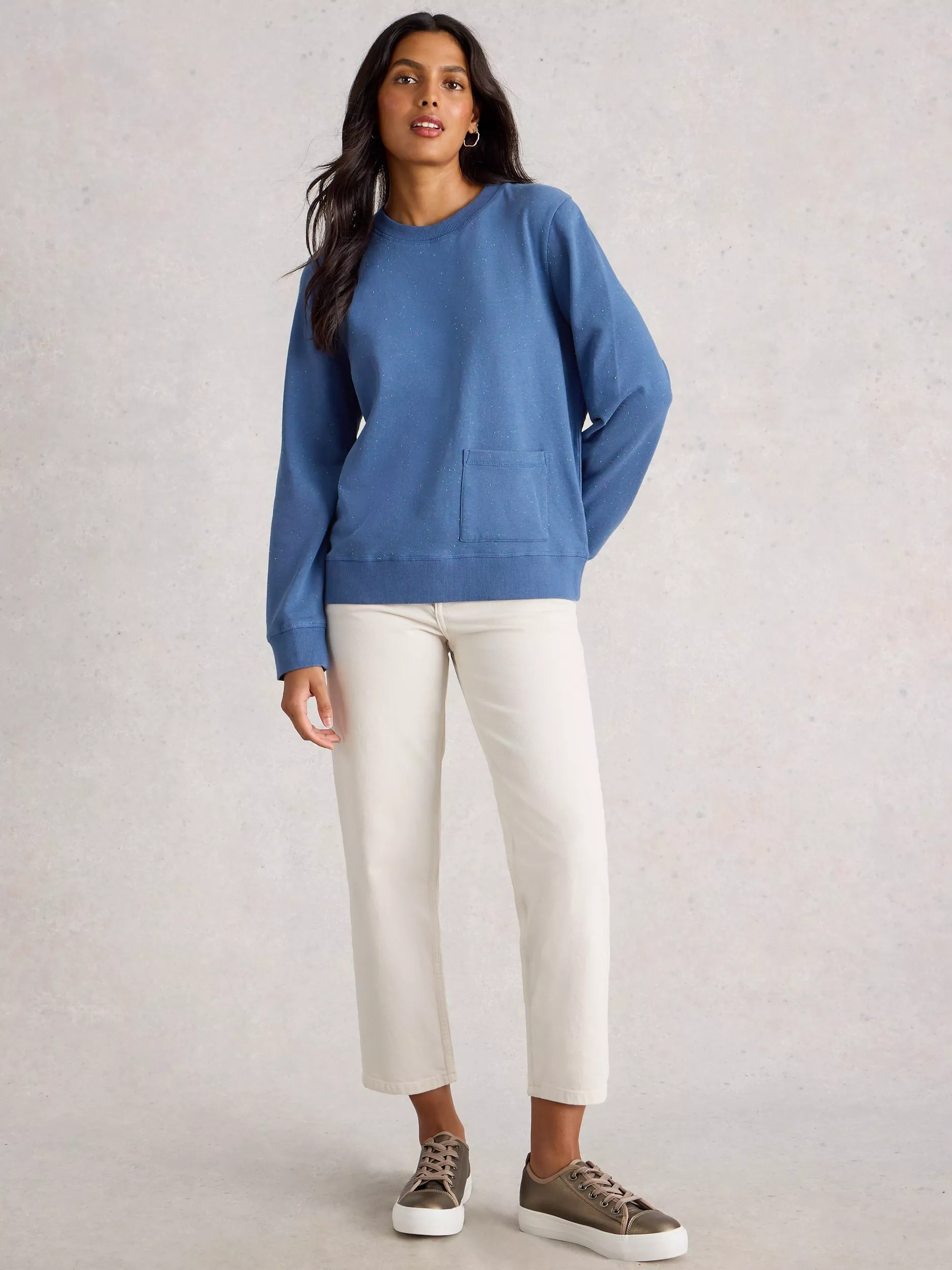 Smooth and lightweight with a classic crew neck, this cotton blend sweatshirt keeps you comfortable as you move through your day. The fine knit offers just the right warmth for all seasons, making it an easy go-to layer.