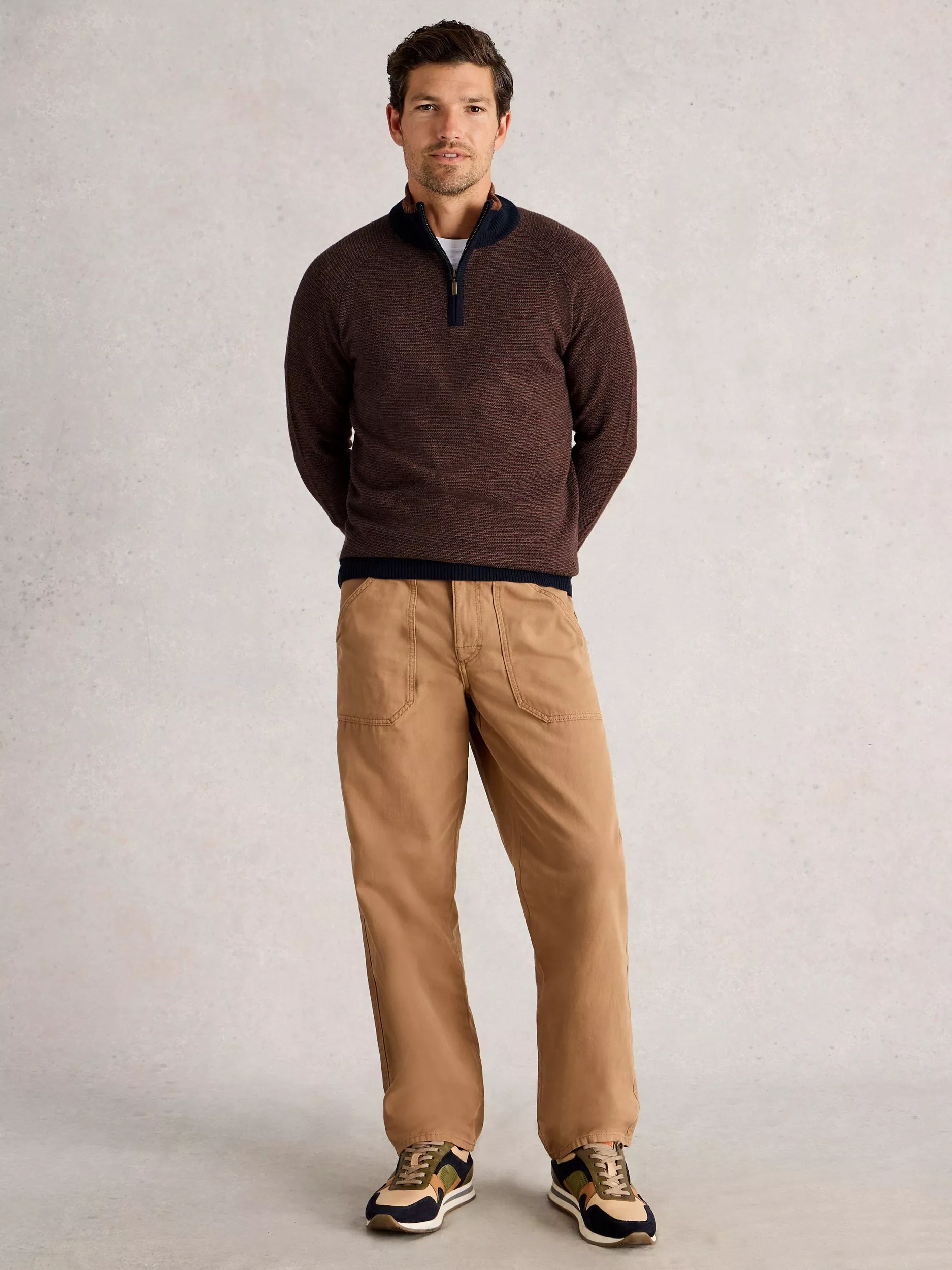 This medium-weight merino blend jumper keeps you comfortable whatever the day brings. The zip neck lets you adapt your style, while the regular fit ensures easy layering.