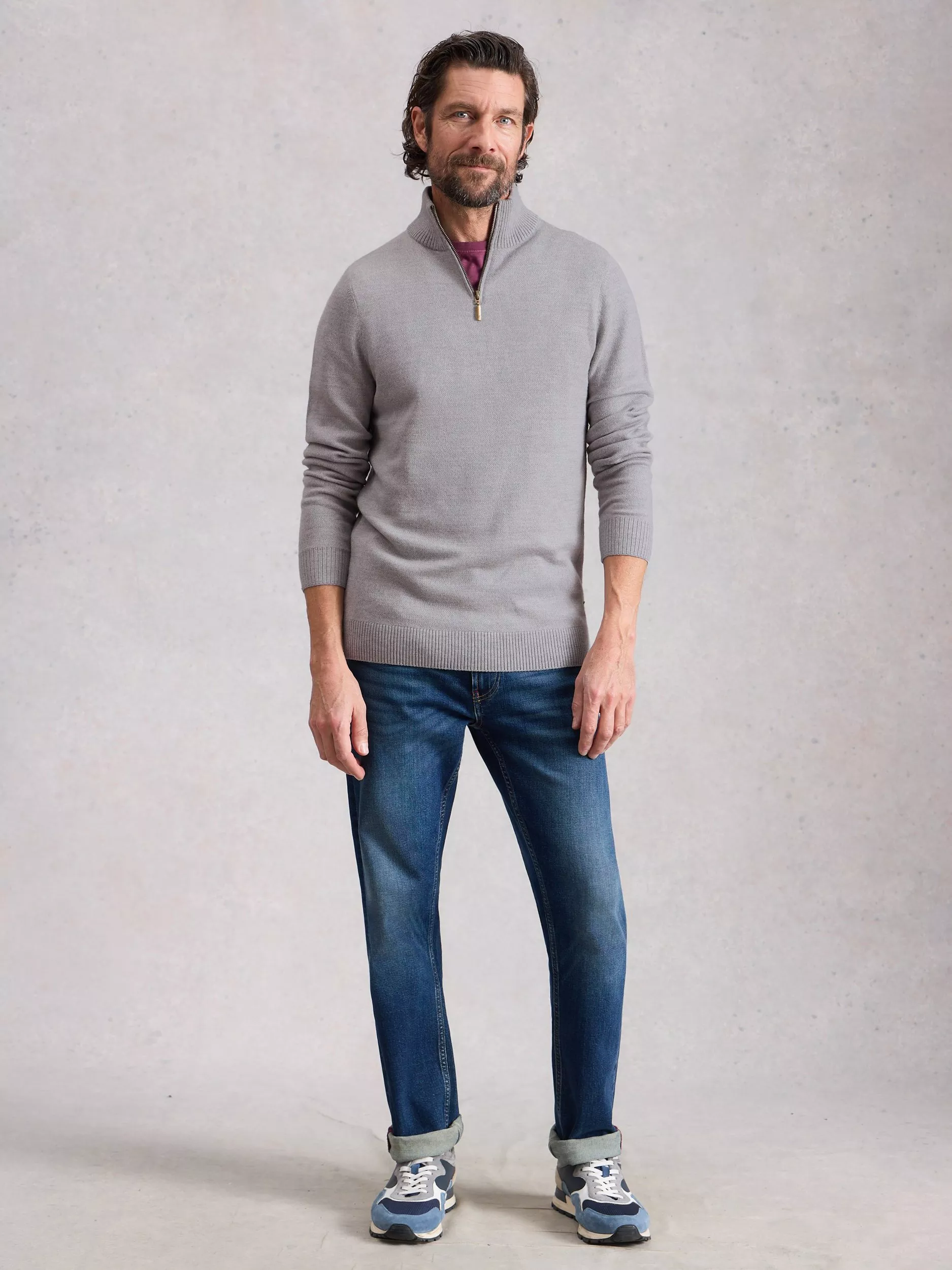 This medium knit merino jumper keeps you comfortable in changeable weather. The quarter-zip neck offers flexible styling, while the plain finish makes it easy to pair with anything in your wardrobe.