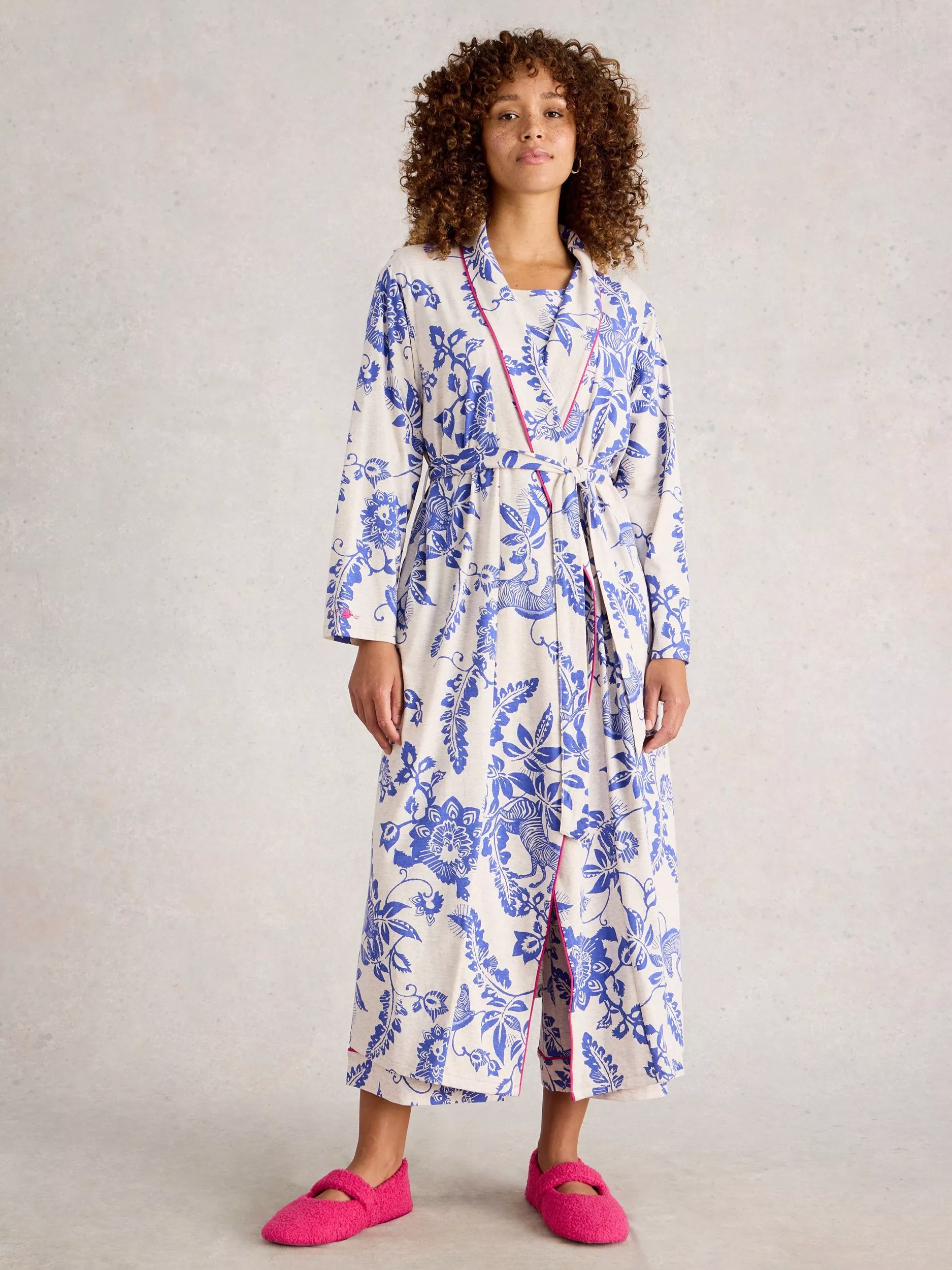 White StuffNina Floral Jersey Dressing Gown, Natural/Multi