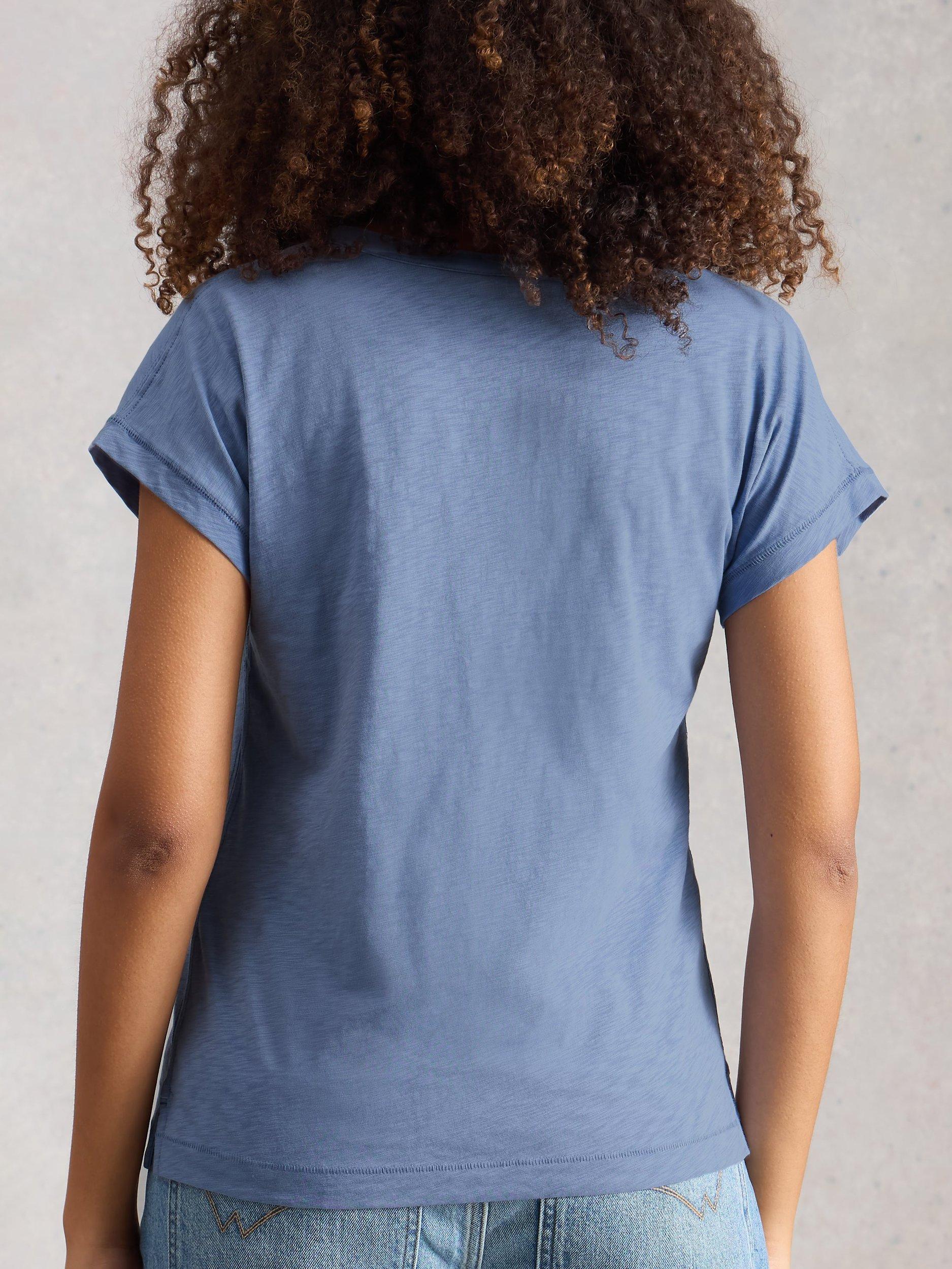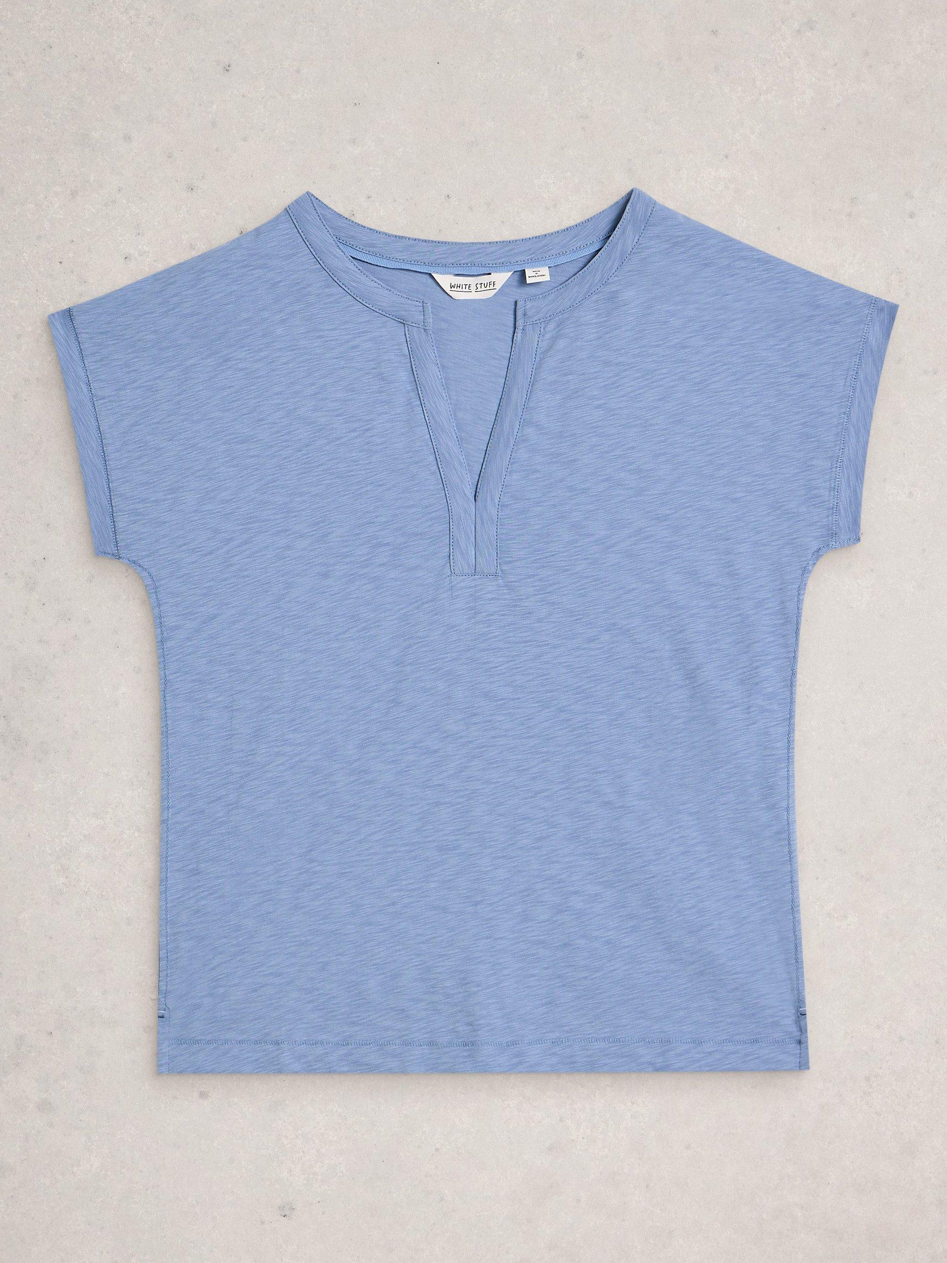 White StuffNina Notch Neck T-Shirt, Mid Blue